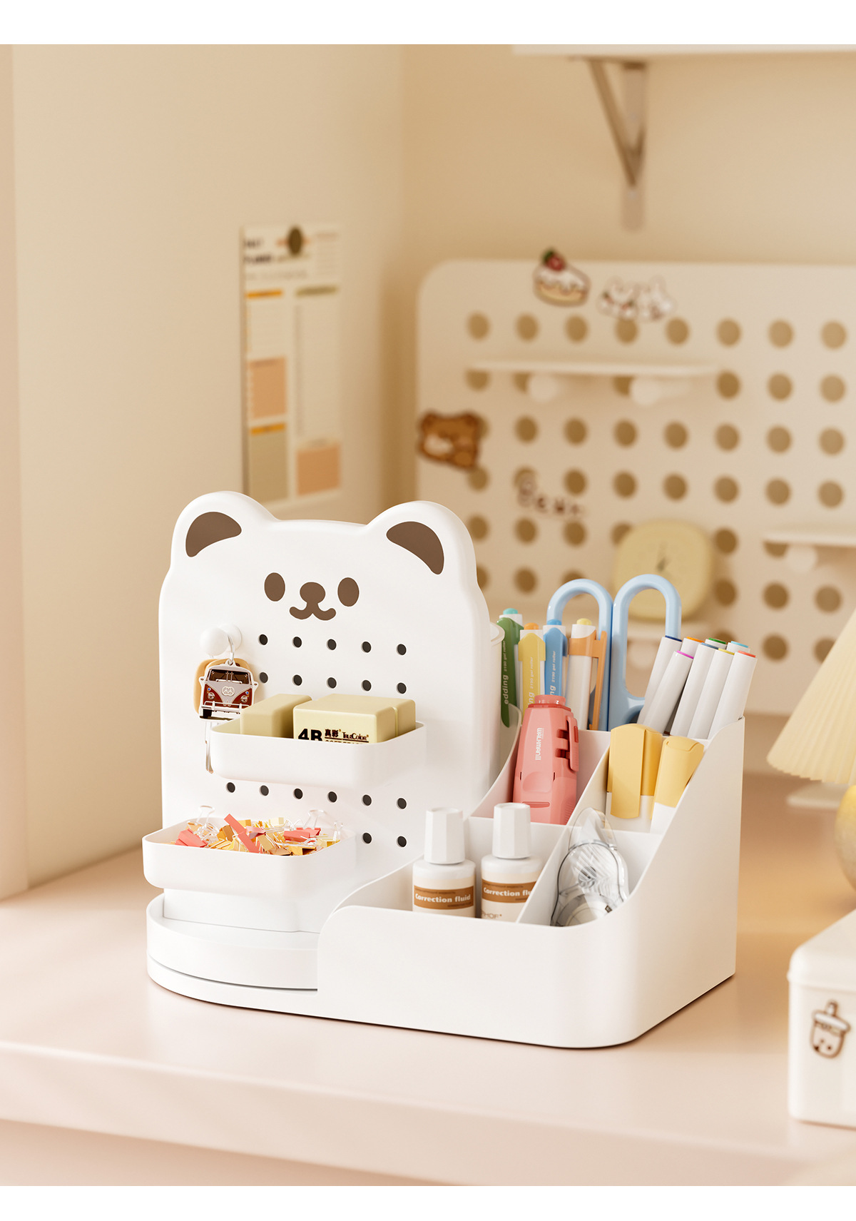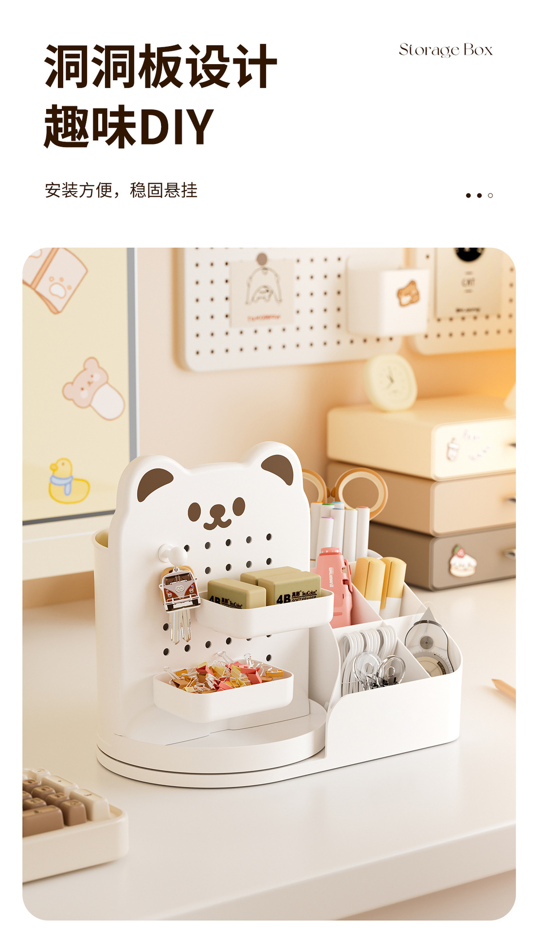 회전 만화 곰 구멍 보드 데스크탑 스토리지 박스 학생 사무실 다기능 책상 문구 정리 상자