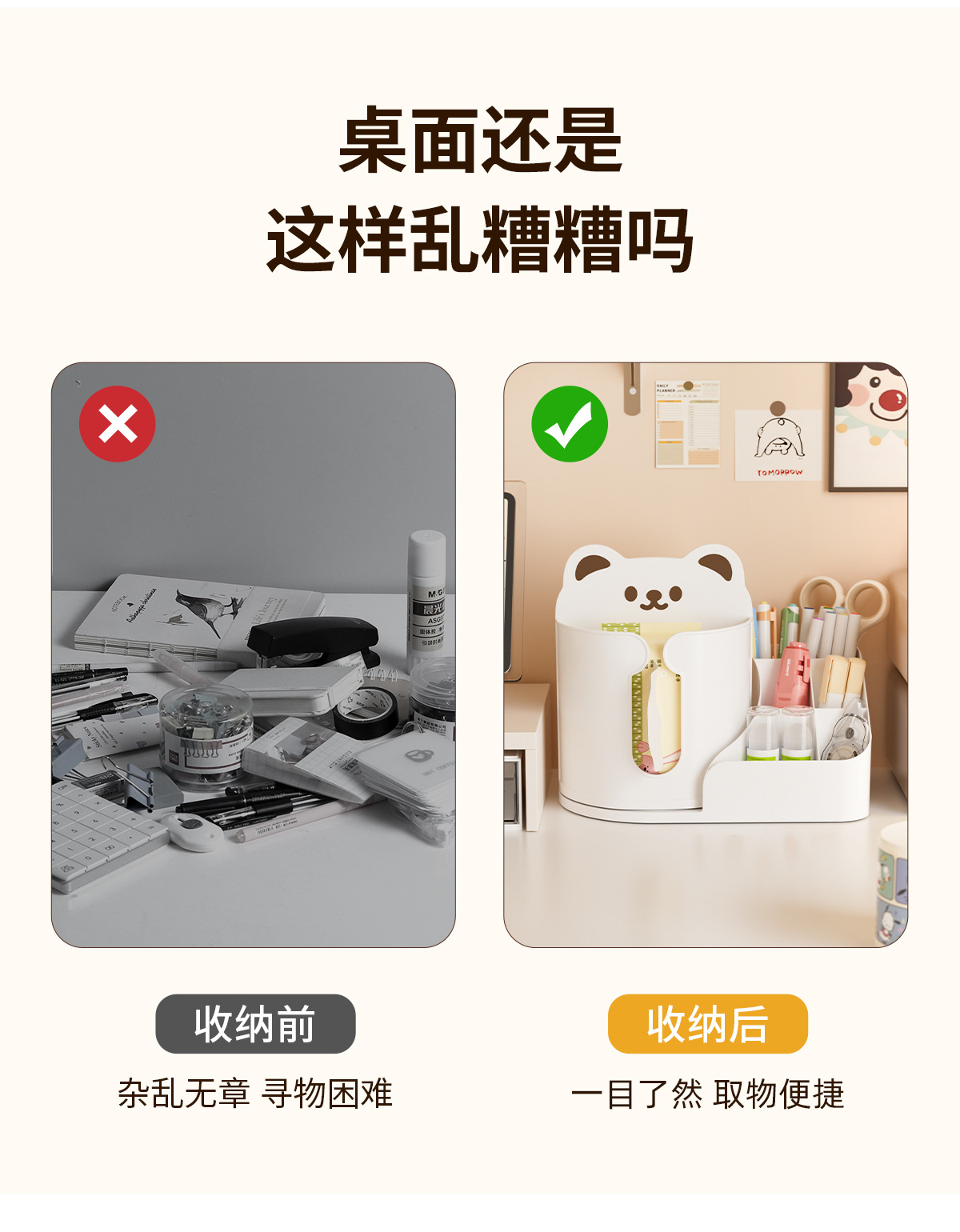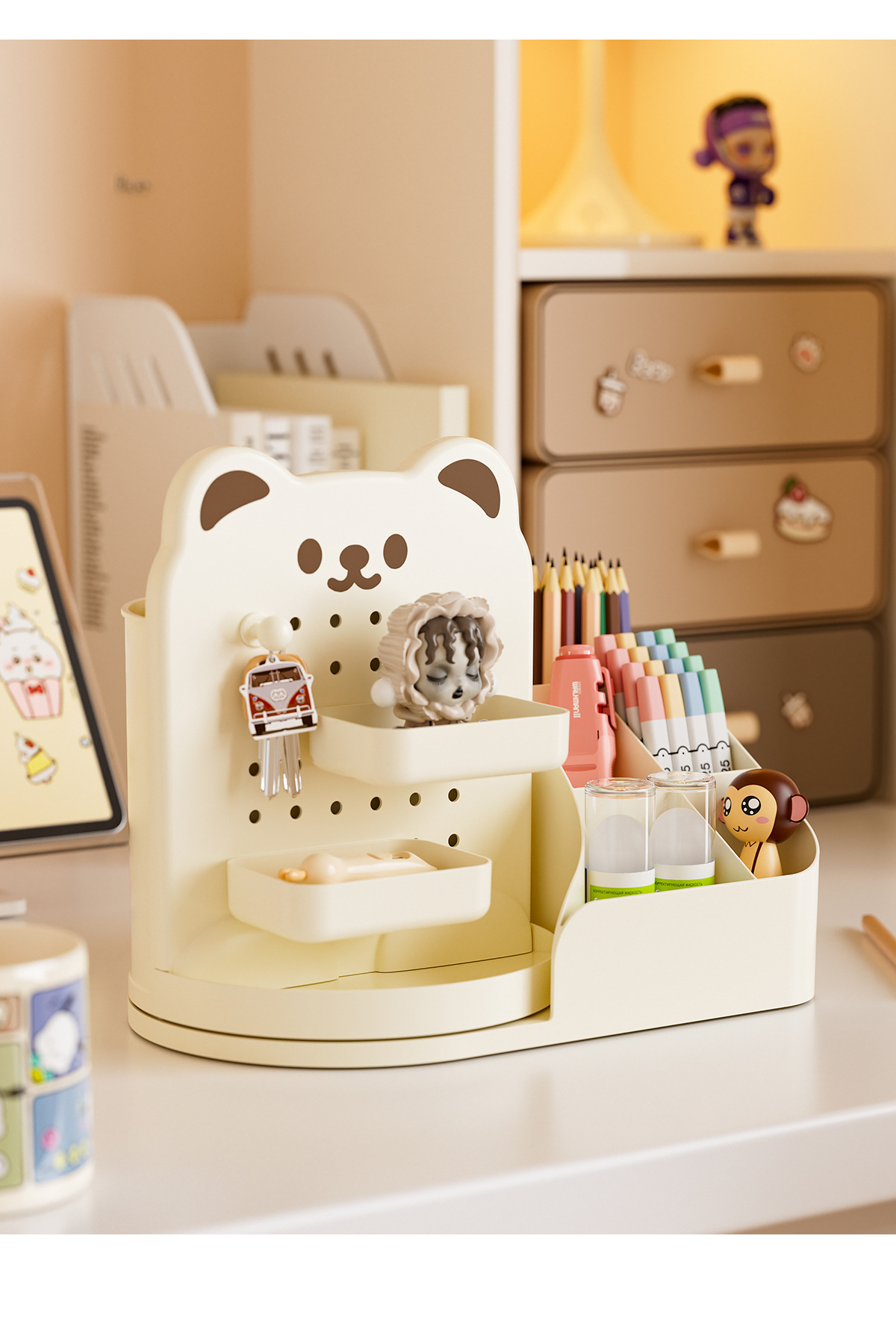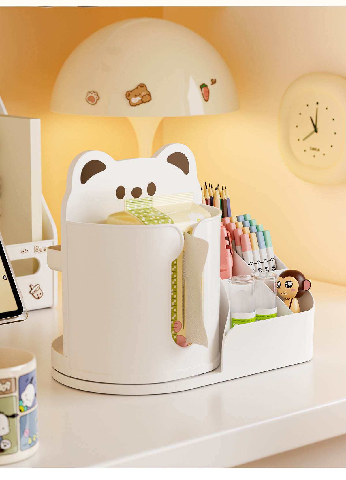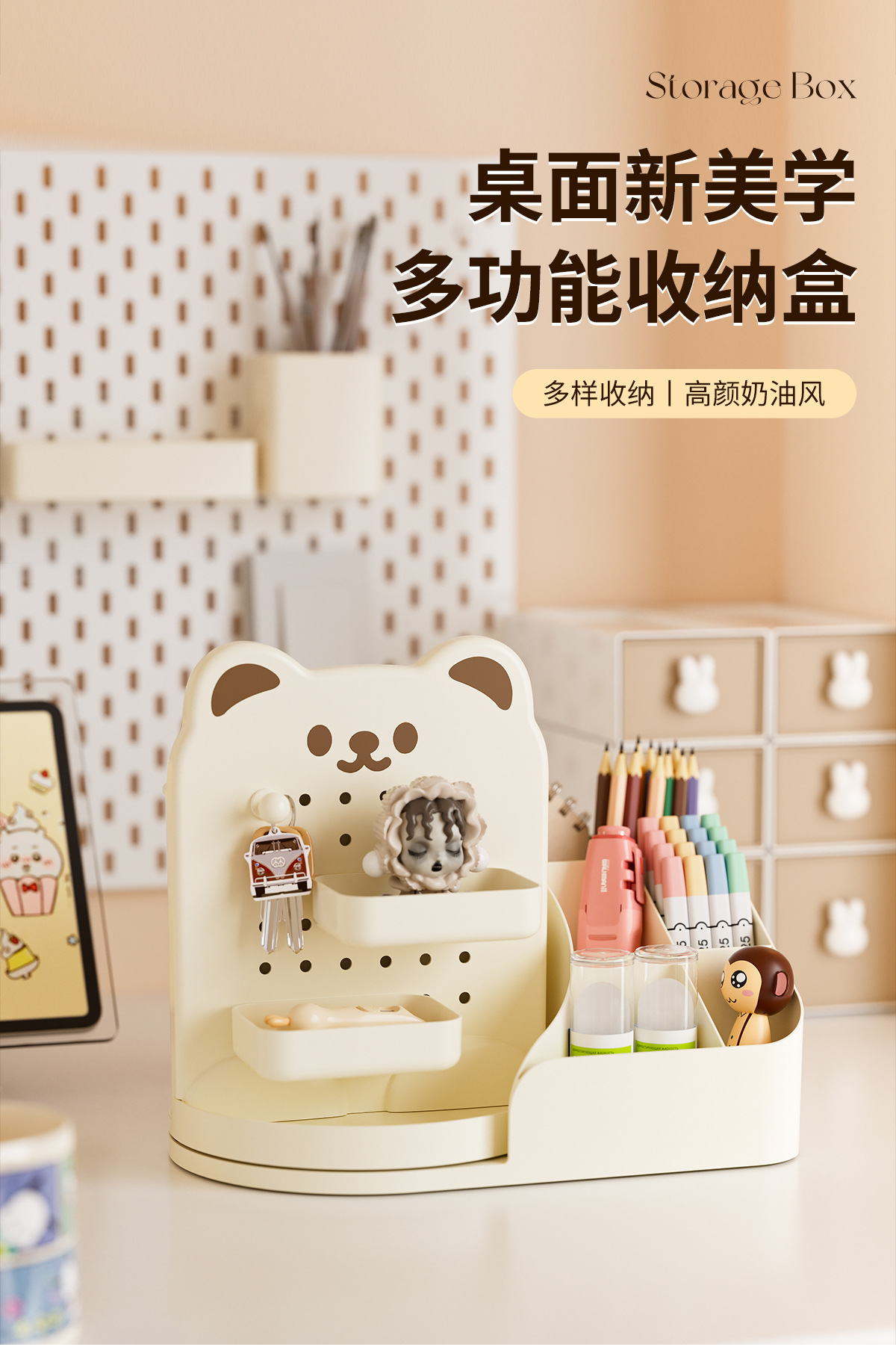 회전 만화 곰 구멍 보드 데스크탑 스토리지 박스 학생 사무실 다기능 책상 문구 정리 상자스토어 가기