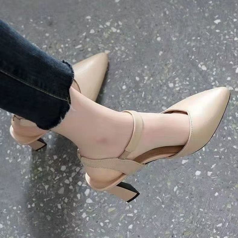 2025년 여름 여성을 위한 우아한 샌들 새로운 두꺼운 굽 중간 굽 부드러운 가죽 원라인 밴드 발가락 패션 여성 신발 하이힐스토어 가기