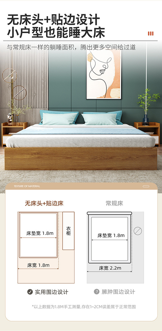 다다미 침대 바닥 침대 프레임 1.8x 2m 빈 프레임 프레임 초두꺼운 호텔 침대 침실 침대 프레임