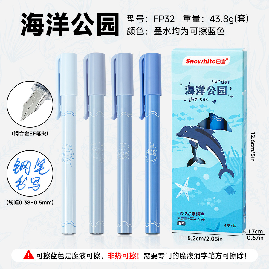 Baixue FP32 직선 액체 속건성 EF 펜촉 대용량 만년필 ins 스타일 고급스러운 학생 지울 수있는 파란색 만년필스토어 가기