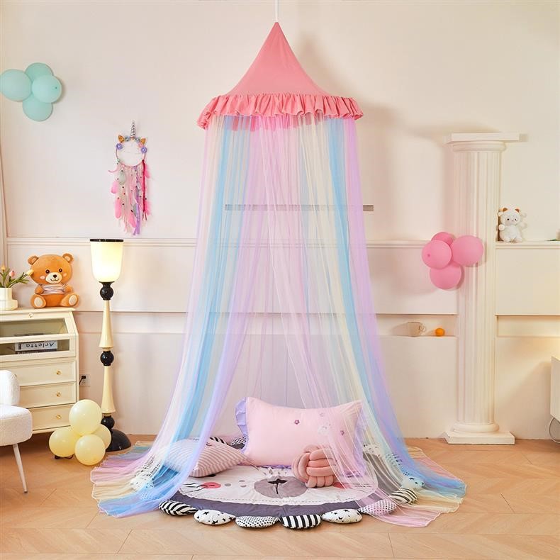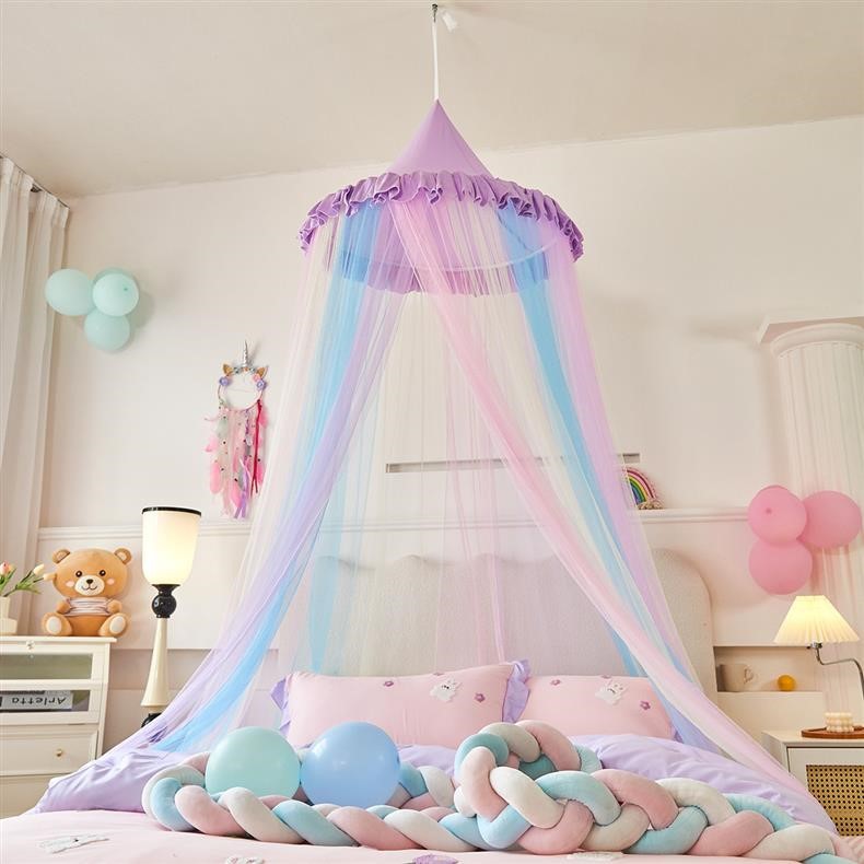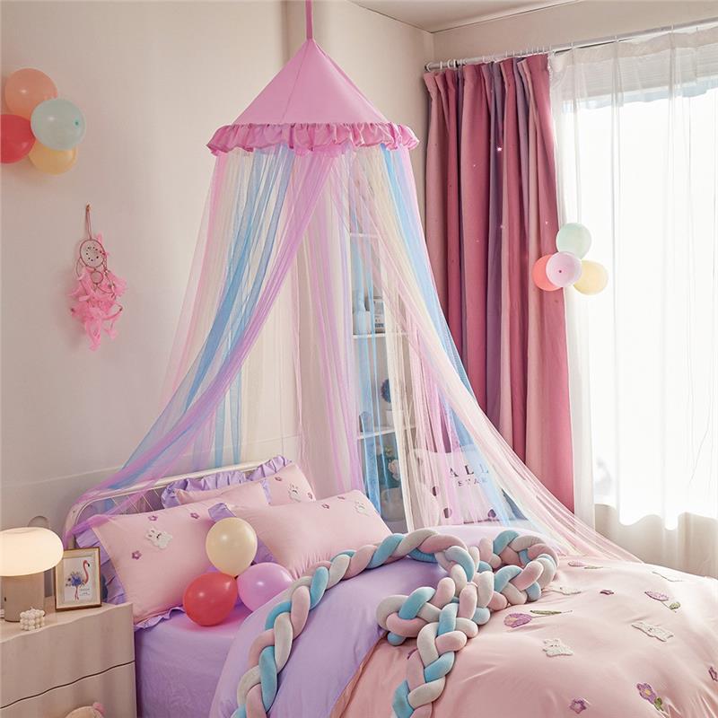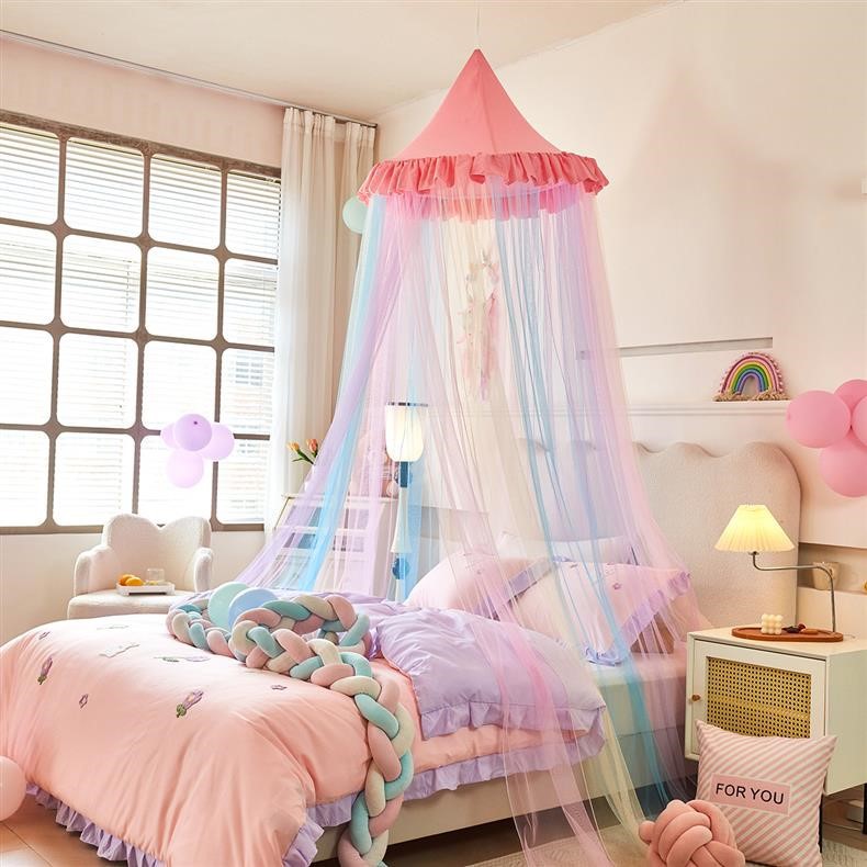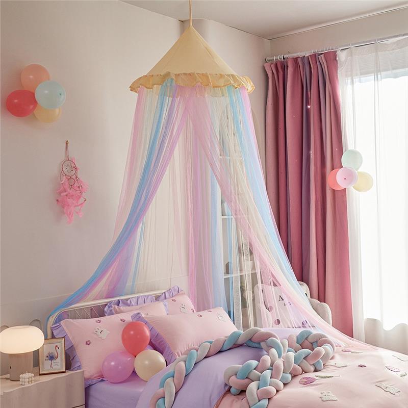 새로운 방진 레인보우 돔 모기장 공주 소녀 침대 커튼 어린이 천장 침대 텐트 설치가 필요 없음