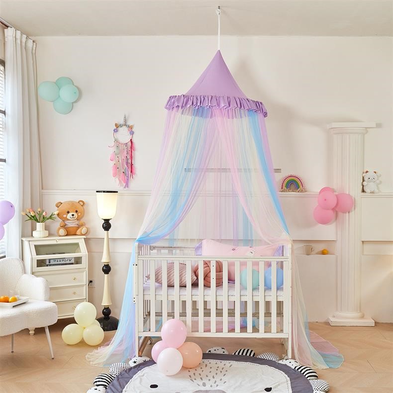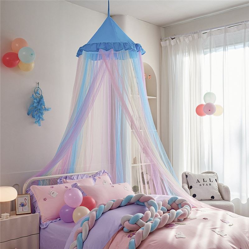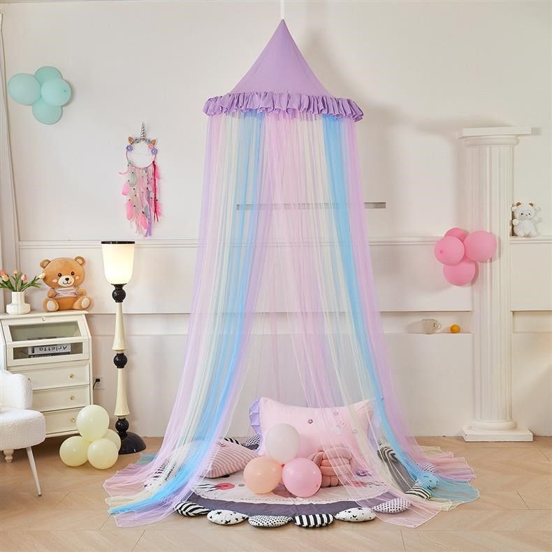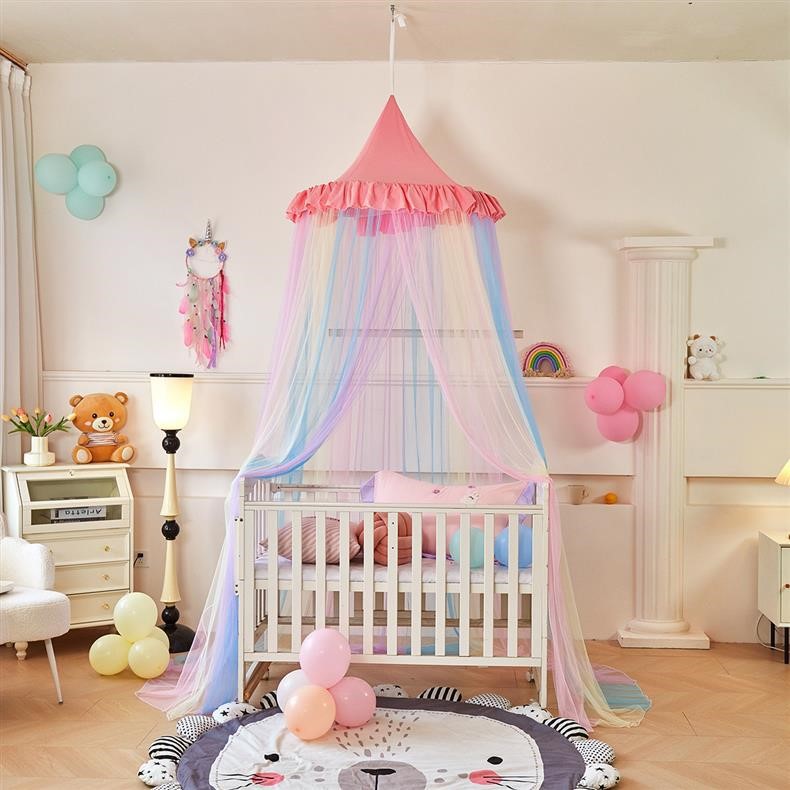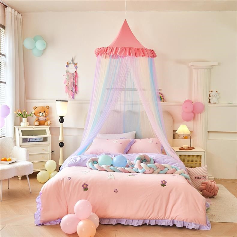 새로운 방진 레인보우 돔 모기장 공주 소녀 침대 커튼 어린이 천장 침대 텐트 설치가 필요 없음