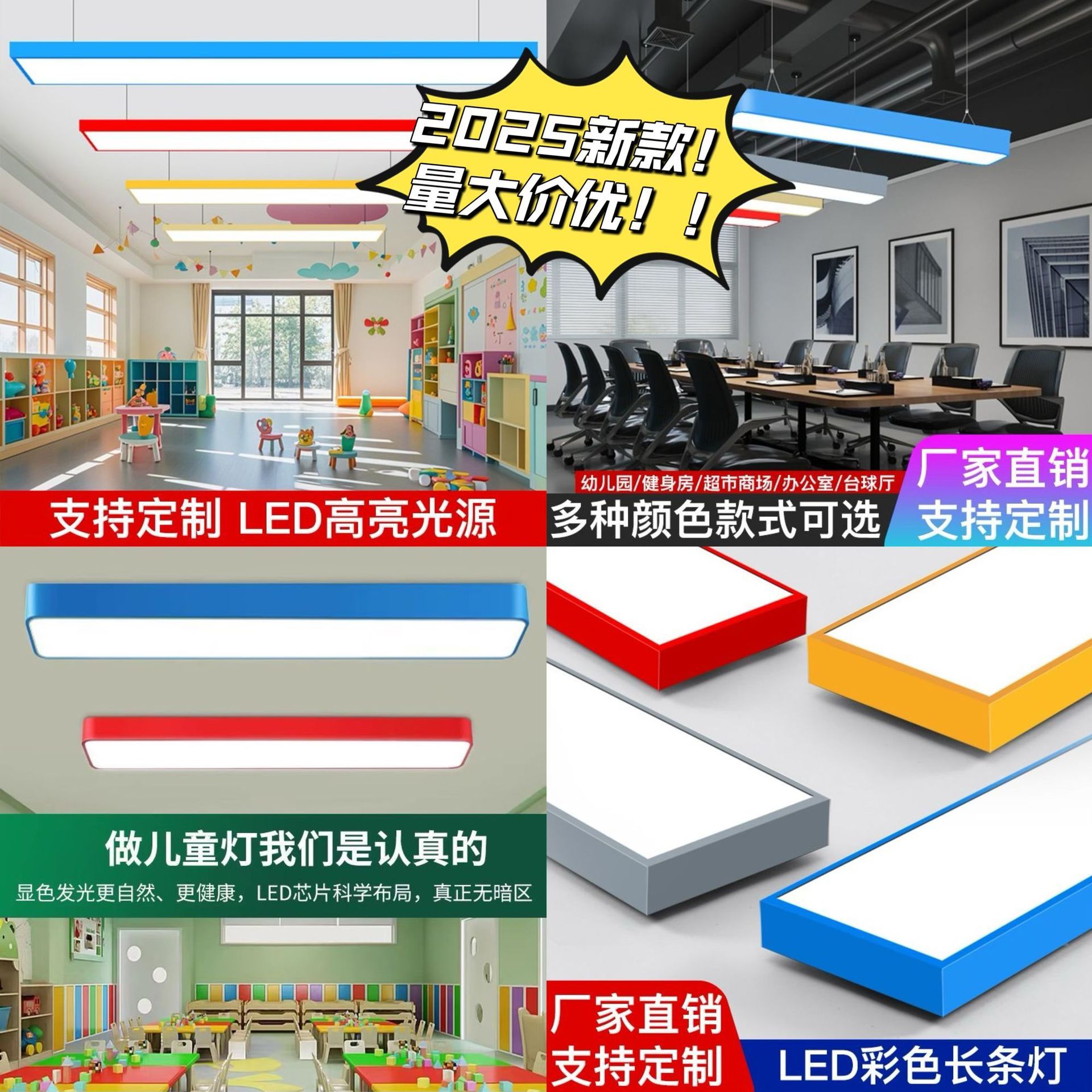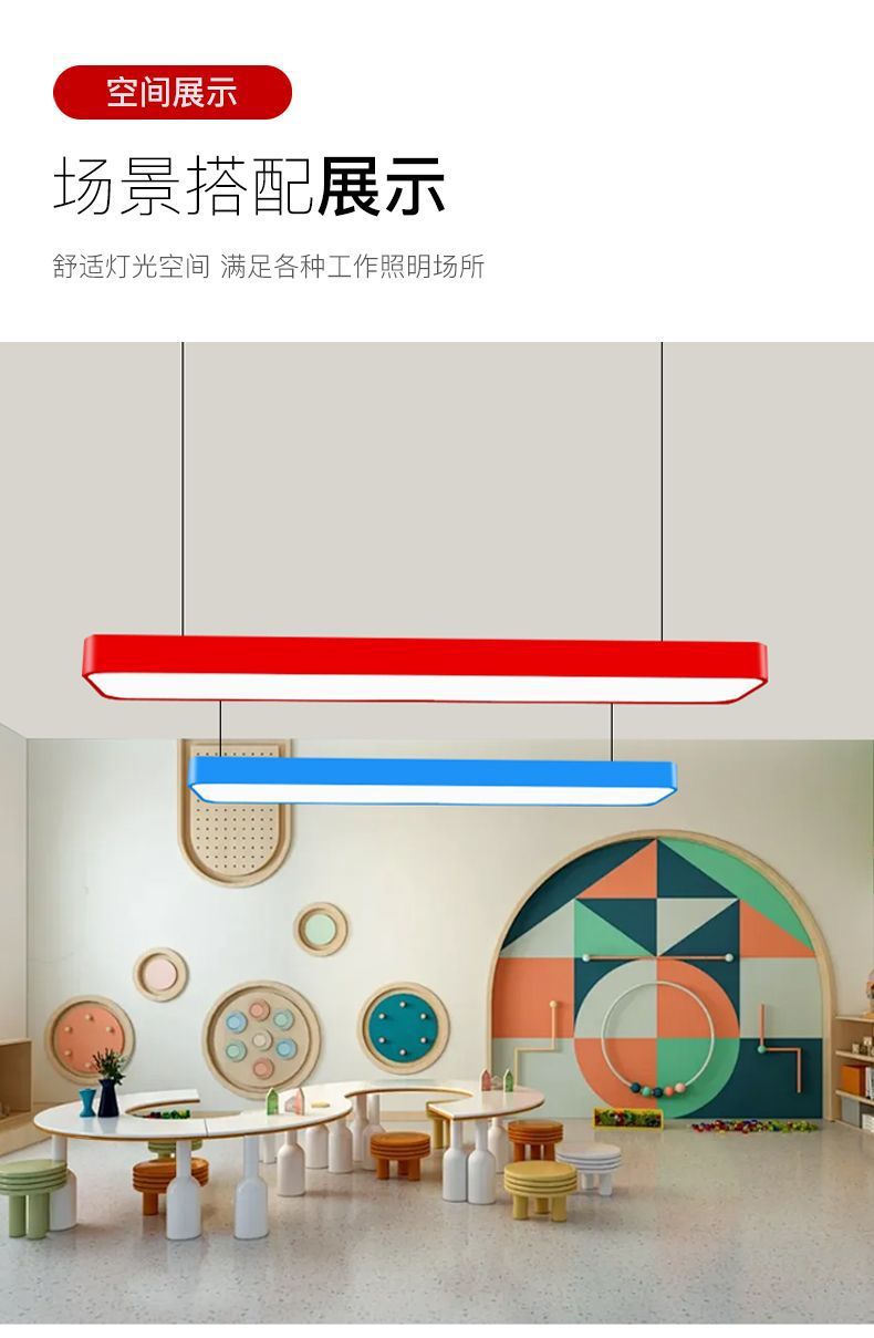 상업용 컬러 LED 사무실 샹들리에 긴 스트립 램프 간단한 유치원 램프 컬러 긴 교실 램프 도매스토어 가기