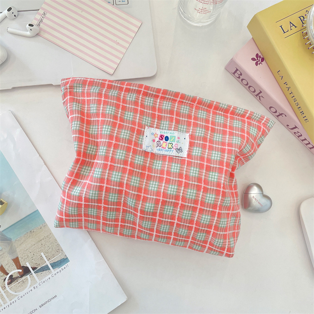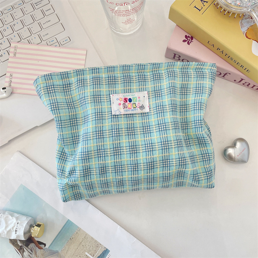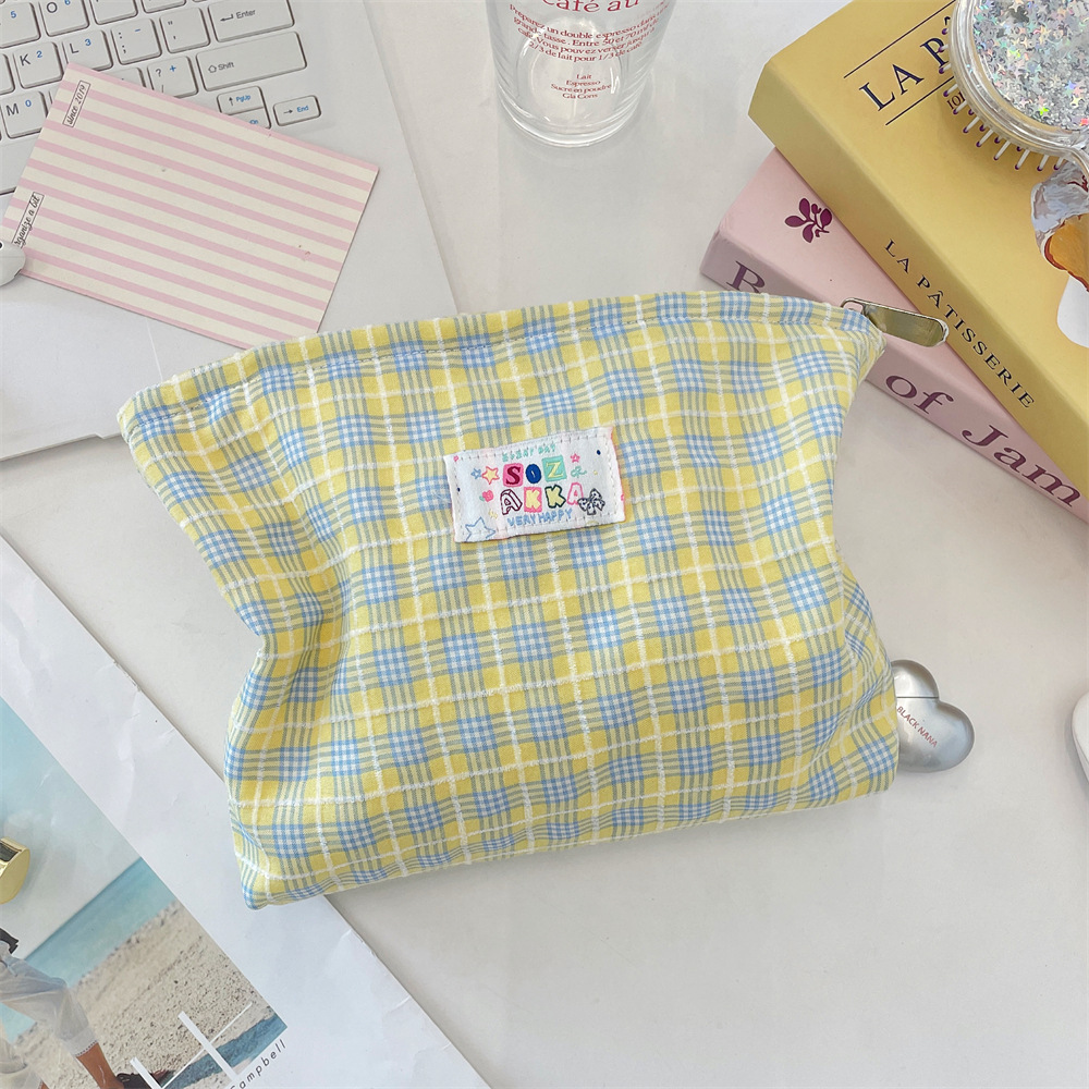 56253 한국 신선한 화장품 가방 격자 무늬 보관 정리 가방 캔버스 화장품 보관 가방 클러치 백