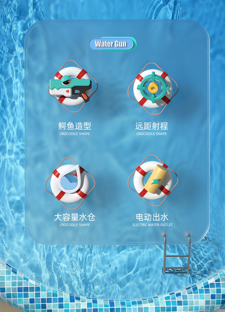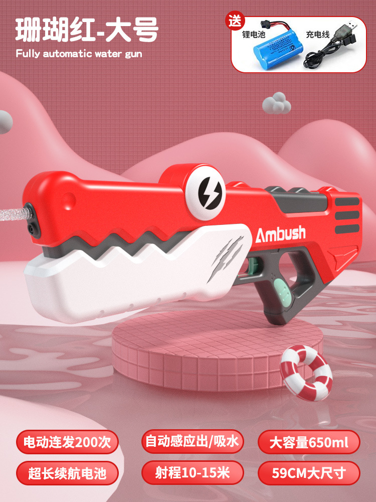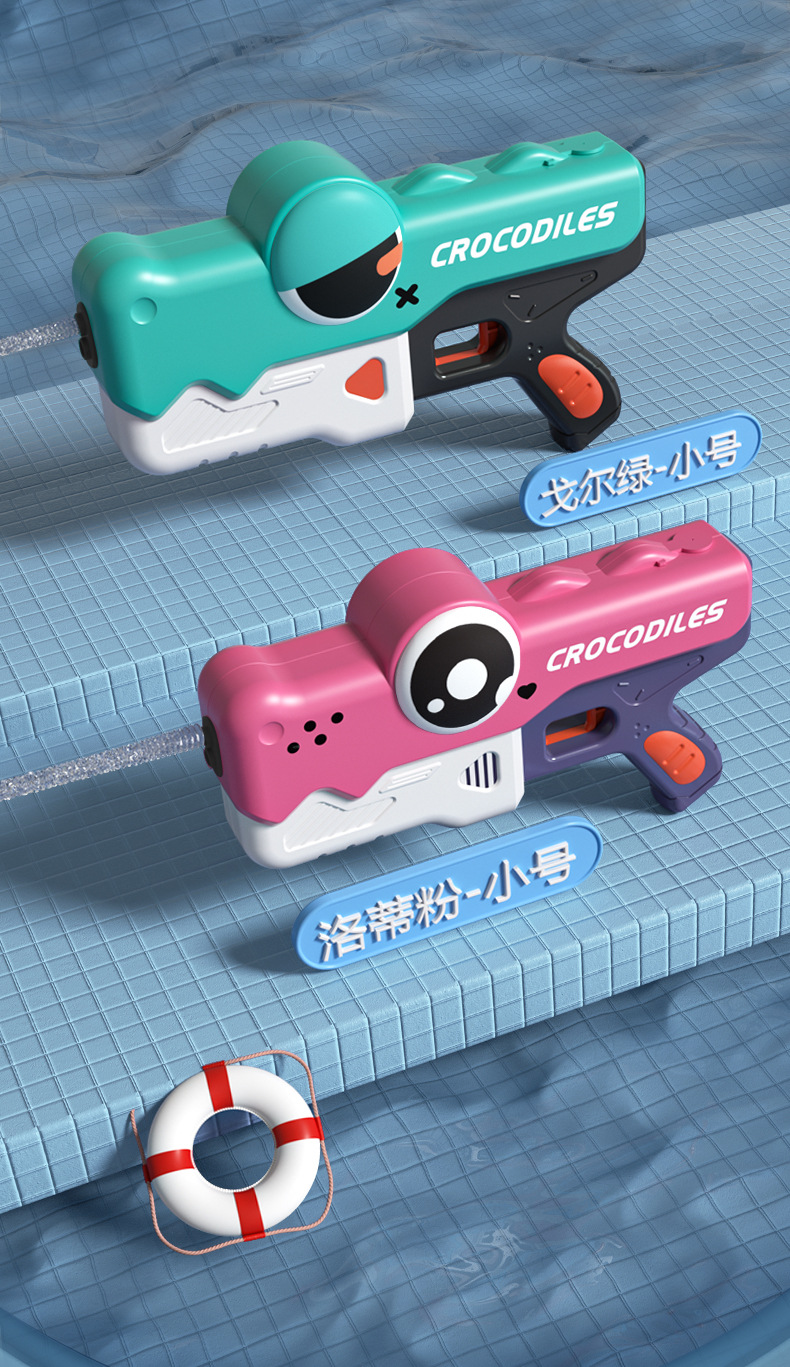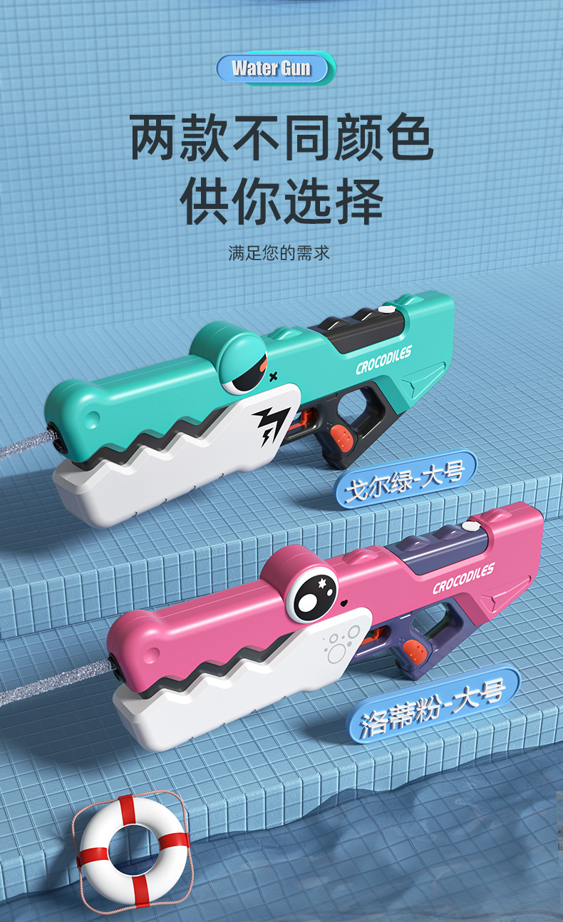 국경 간 새로운 악어 물총 어린이 여름 완전 자동 연속 충전 전기 물총 소년과 소녀 물 장난감스토어 가기