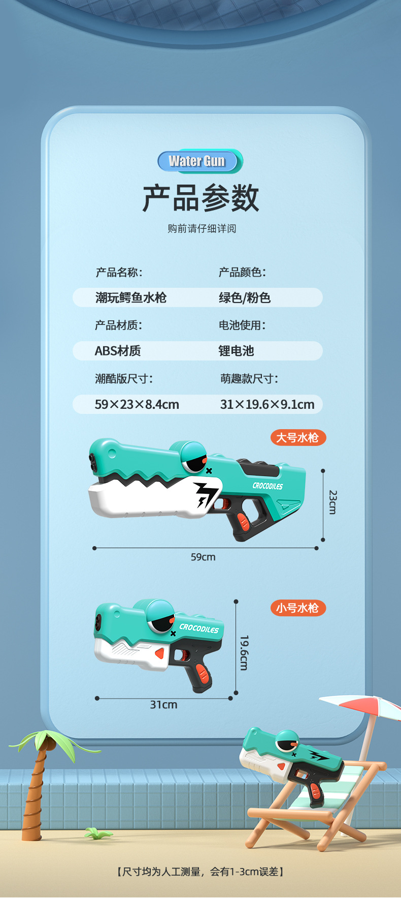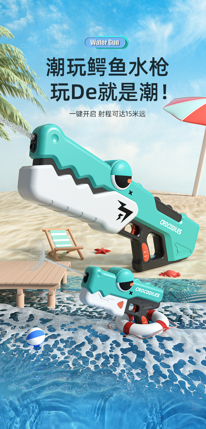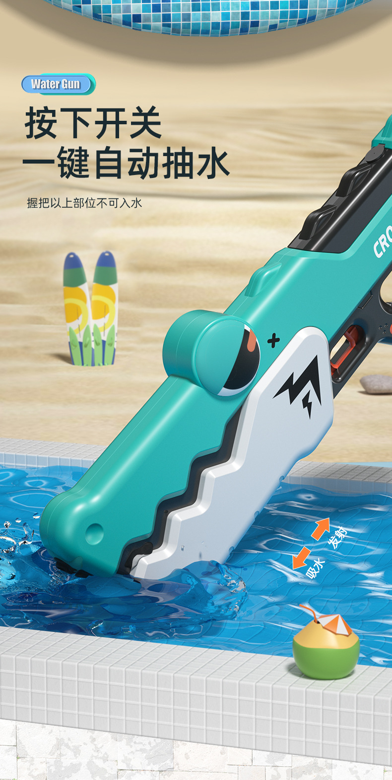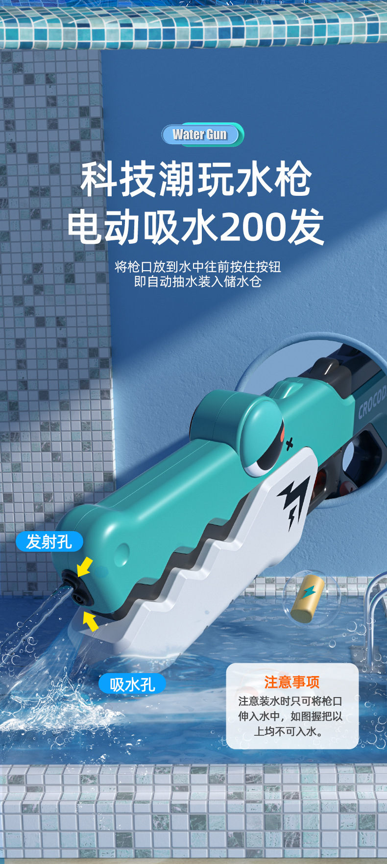 국경 간 새로운 악어 물총 어린이 여름 완전 자동 연속 충전 전기 물총 소년과 소녀 물 장난감스토어 가기