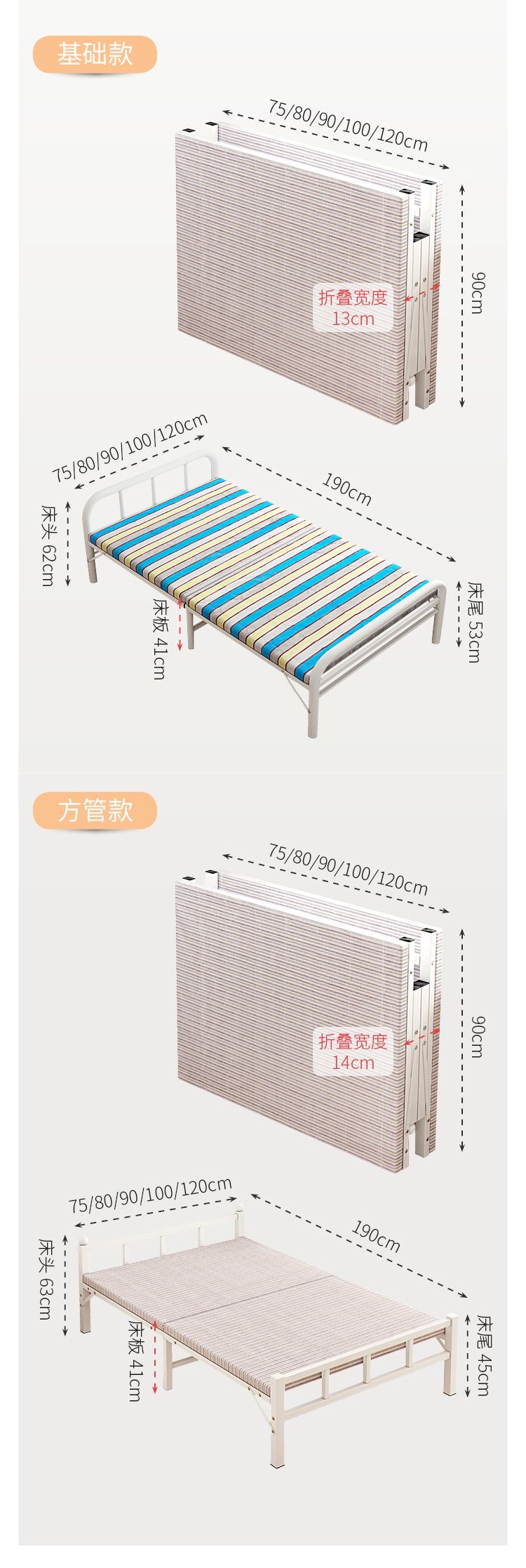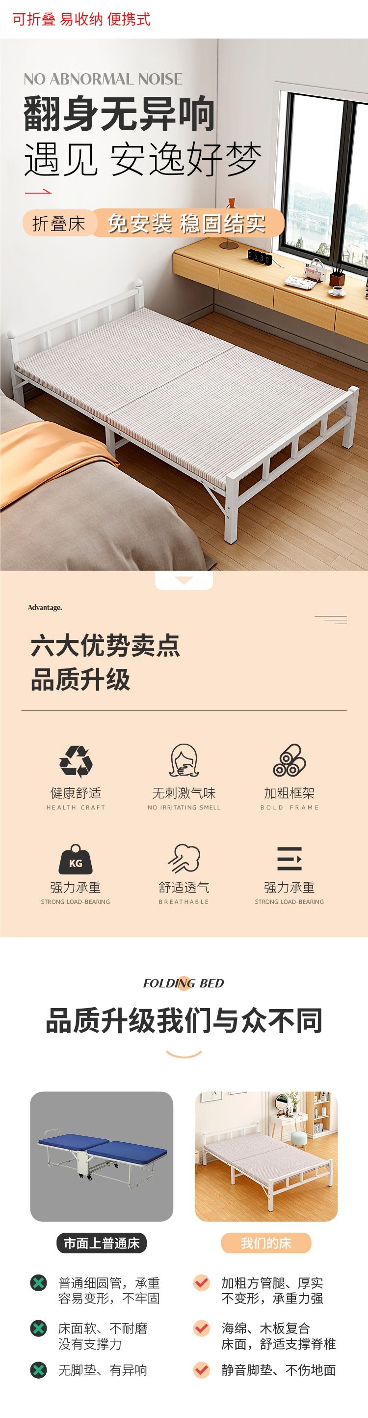 철제 프레임 침대 싱글 침대 접이식 침대 싱글 사무실 점심 시간 간편한 더블 침대 경제적인 휴대용 가정용 하드 침대스토어 가기