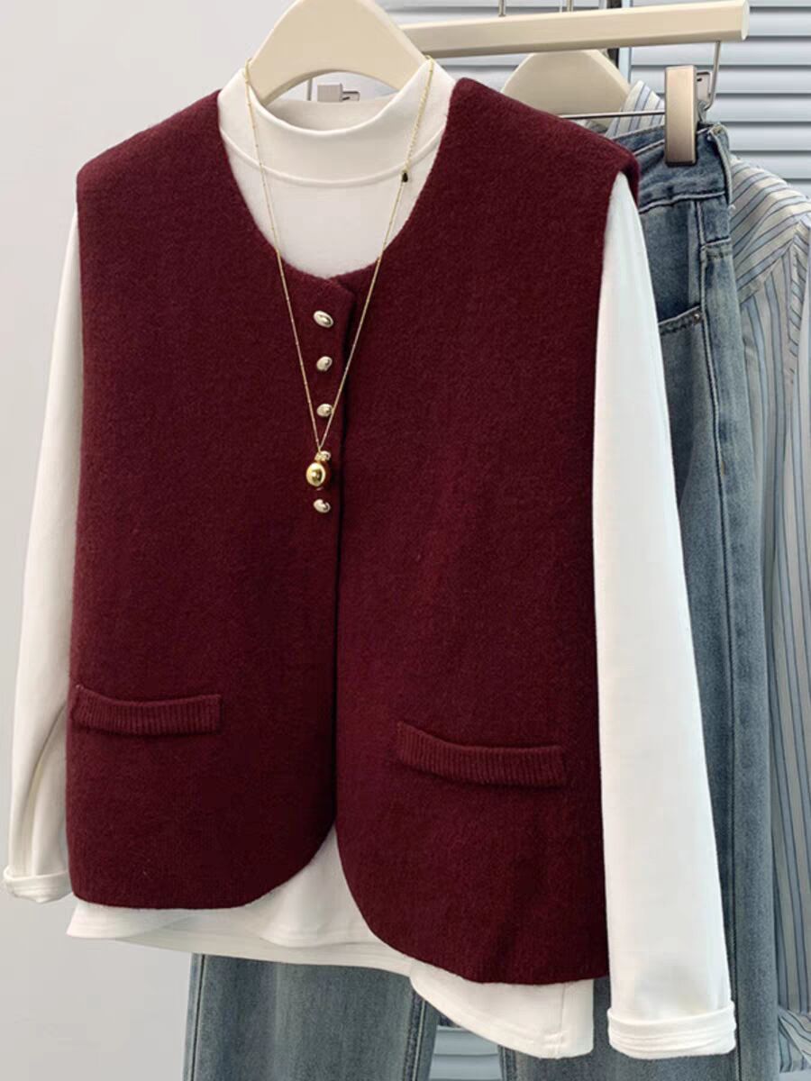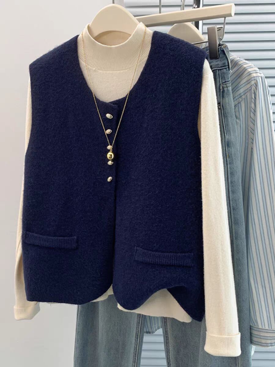 Xiaoxiangfeng 니트 카디건 조끼 여성스러운 조끼 스웨터 양복 조끼 레이어드 민소매 재킷