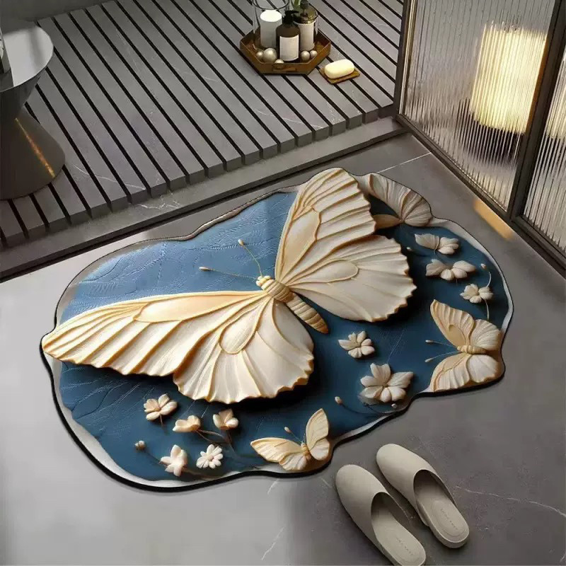 시각적 3D 나비 꽃 바닥 매트 홈 욕실 바닥 매트 특별한 모양의 욕실 흡수성 발 매트 입구 문 매트 도매스토어 가기