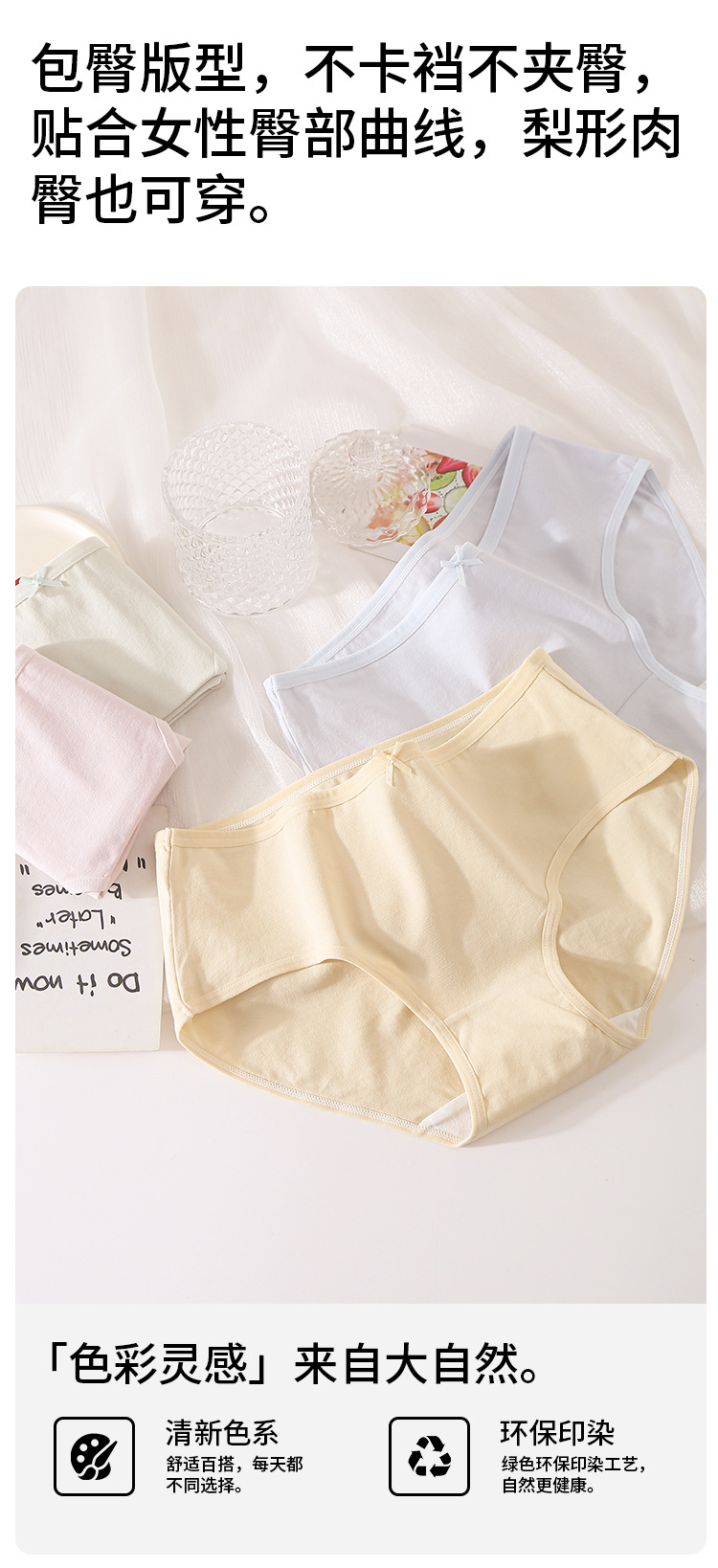 여성 속옷 새로운 스타일 순수 코튼 중간 허리 통기성 엉덩이 커버 코튼 항균 가랑이 사계절 소녀 팬티 도매