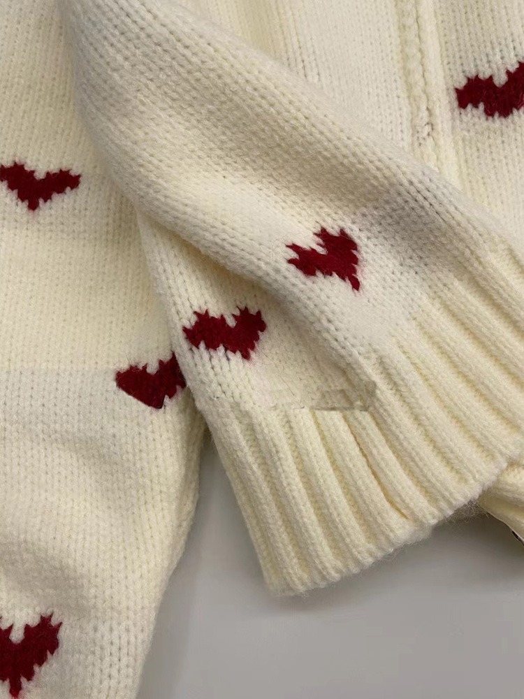 2025 한국 달콤한 사랑 자카드 라운드 넥 더블 지퍼 연령 감소 니트 카디건 가을, 겨울 부드러운 밀랍 스웨터 재킷 여성
