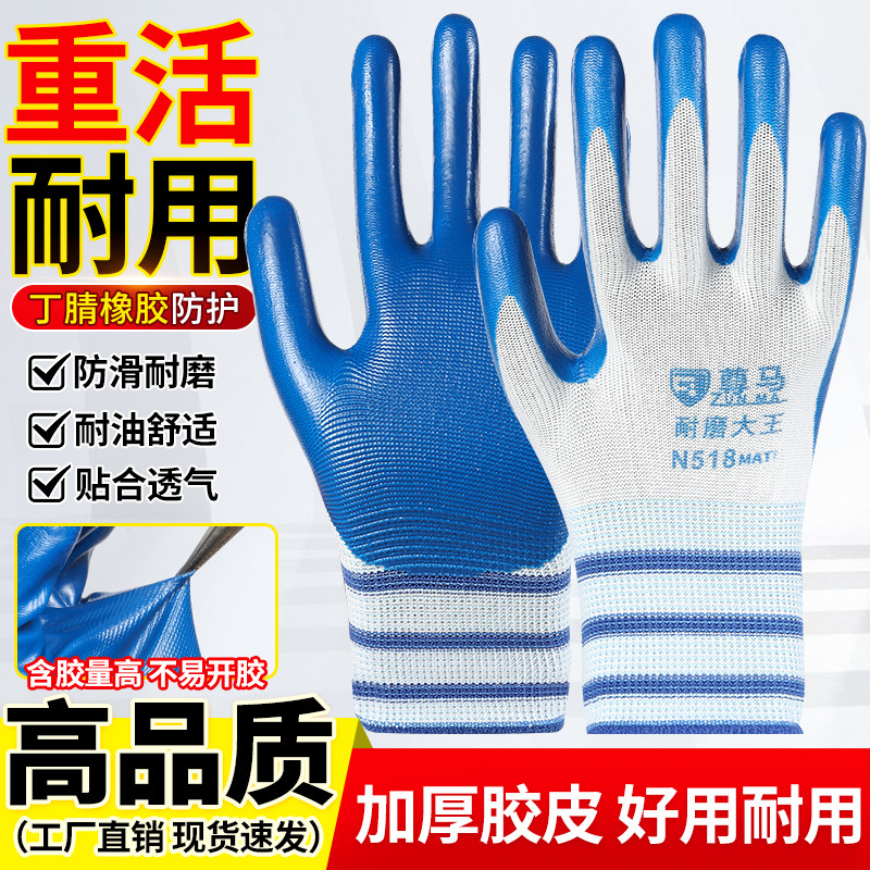 【강화된 내마모성】준마 N518 고무 발포 장갑, 노동 보호, 미끄럼 방지, 통기성, 작업 보호, 다기능