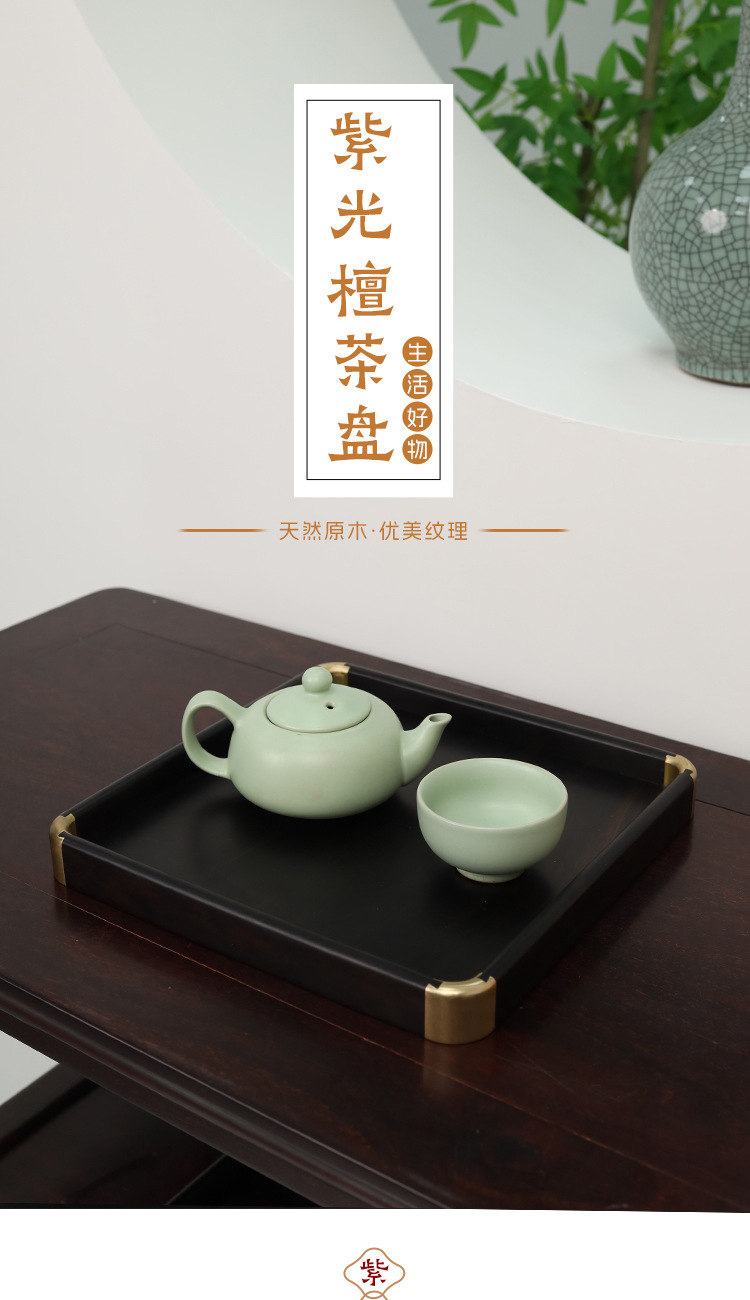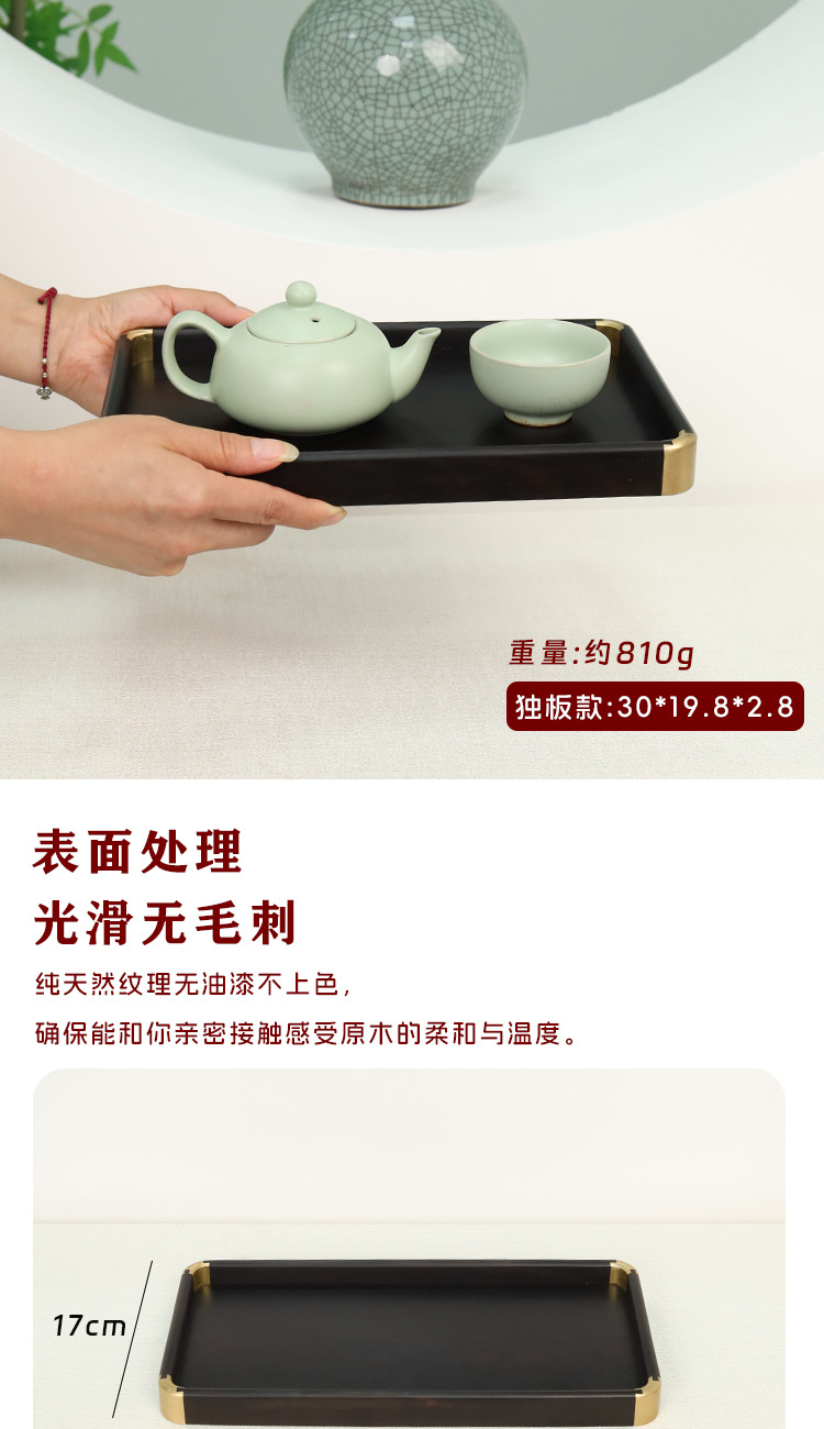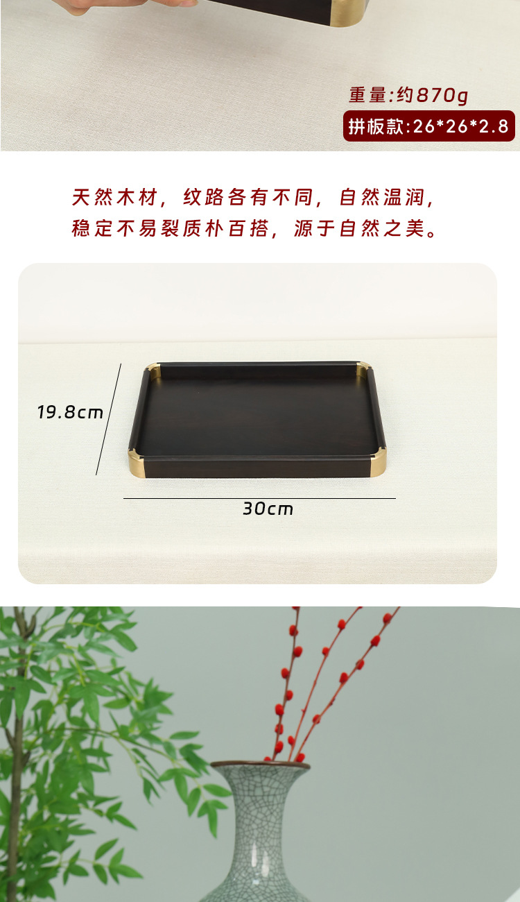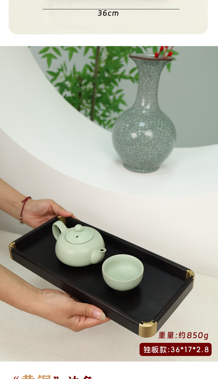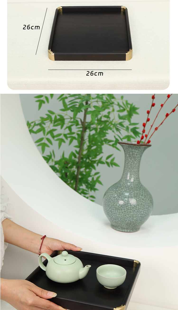 천연 보라색 백단 구리 뿔 차 세트 보관함 가정용 직사각형 사각형 가정용 간단하고 절묘한 차 트레이
