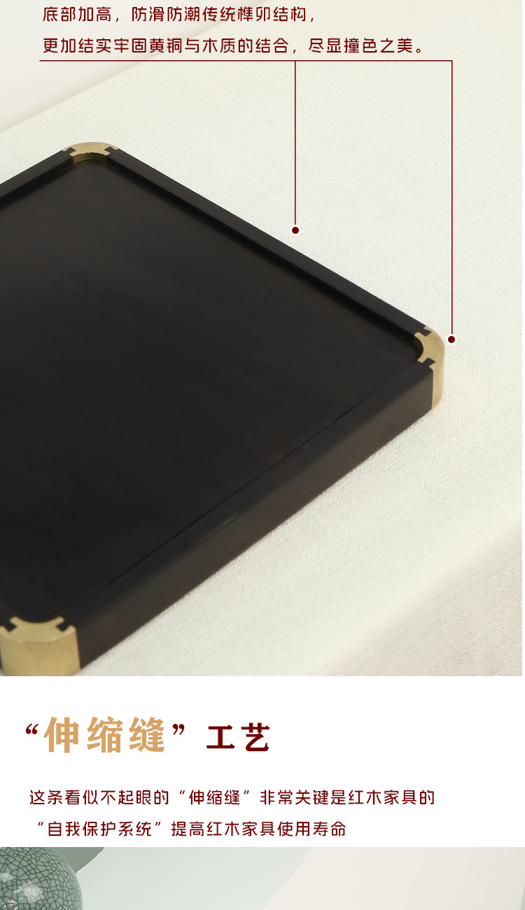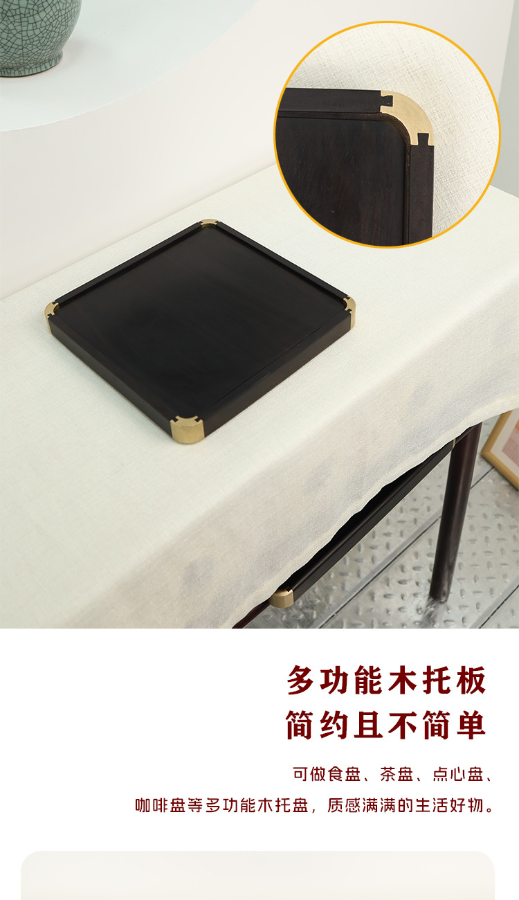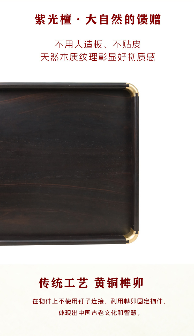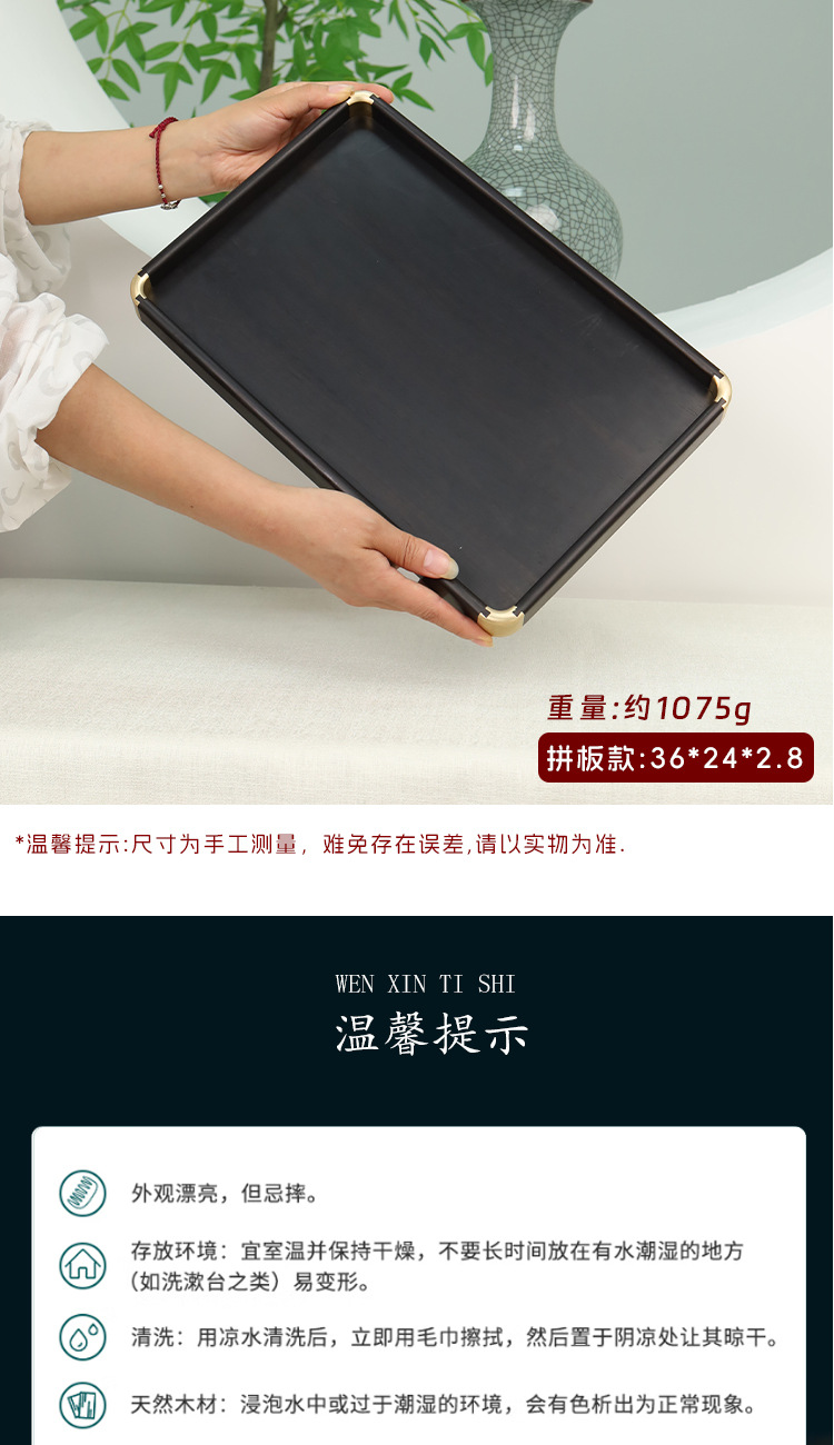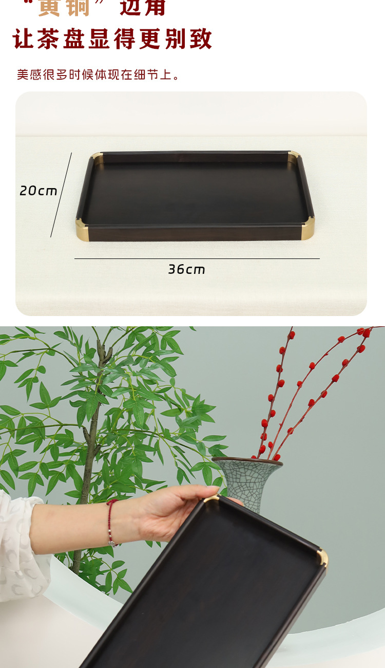 천연 보라색 백단 구리 뿔 차 세트 보관함 가정용 직사각형 사각형 가정용 간단하고 절묘한 차 트레이