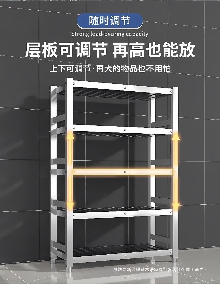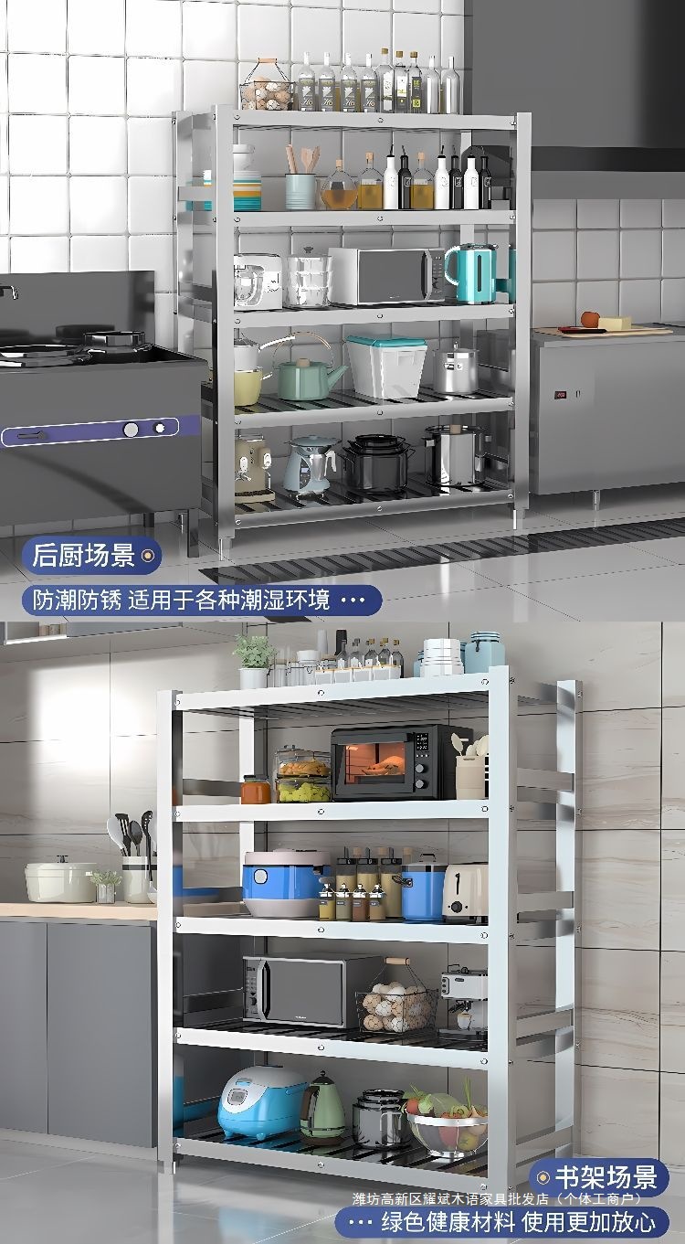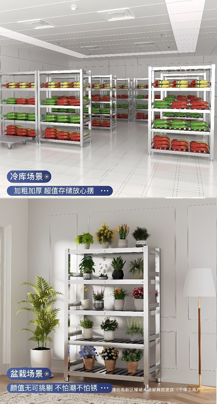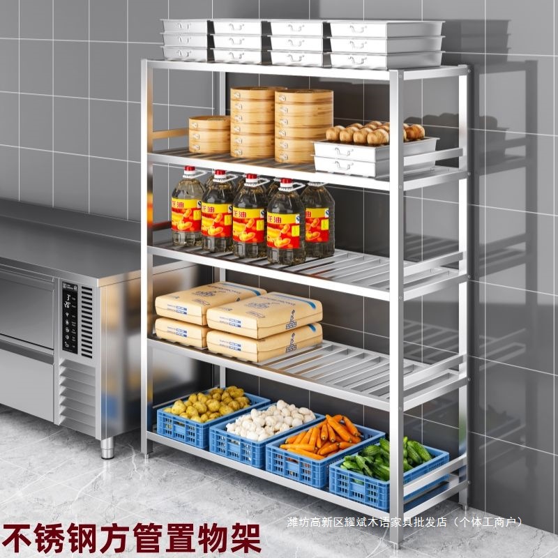 사각 튜브 스테인레스 스틸 선반 가정용 상업용 주방 선반 다기능 선반 중공 꽃 스탠드 배수 야채 선반스토어 가기