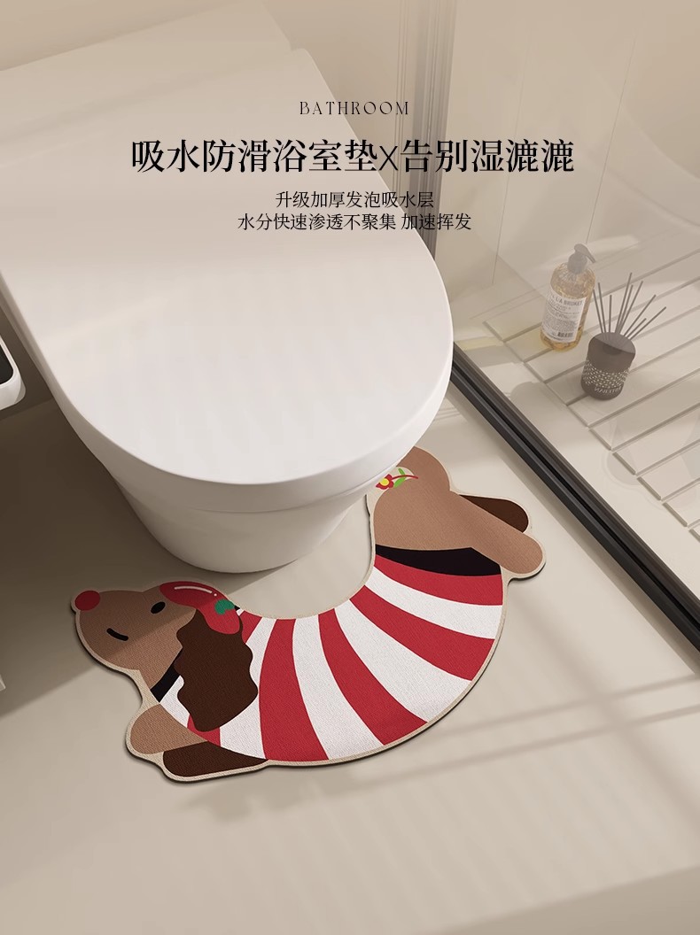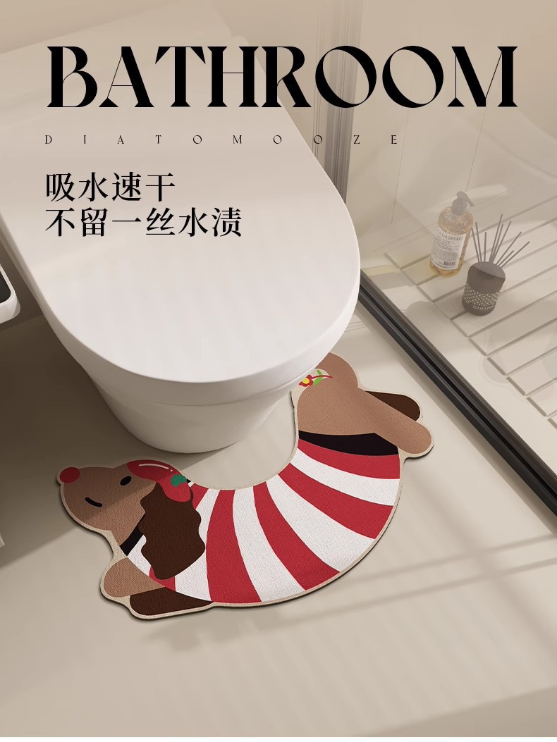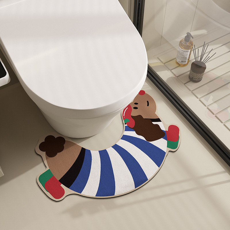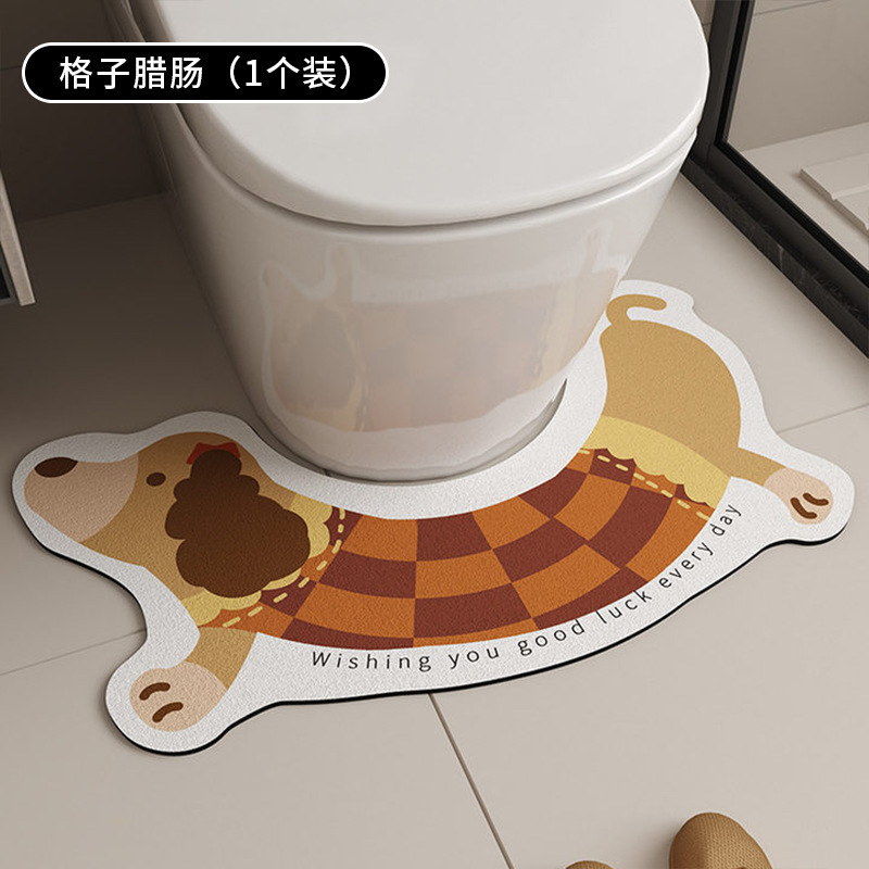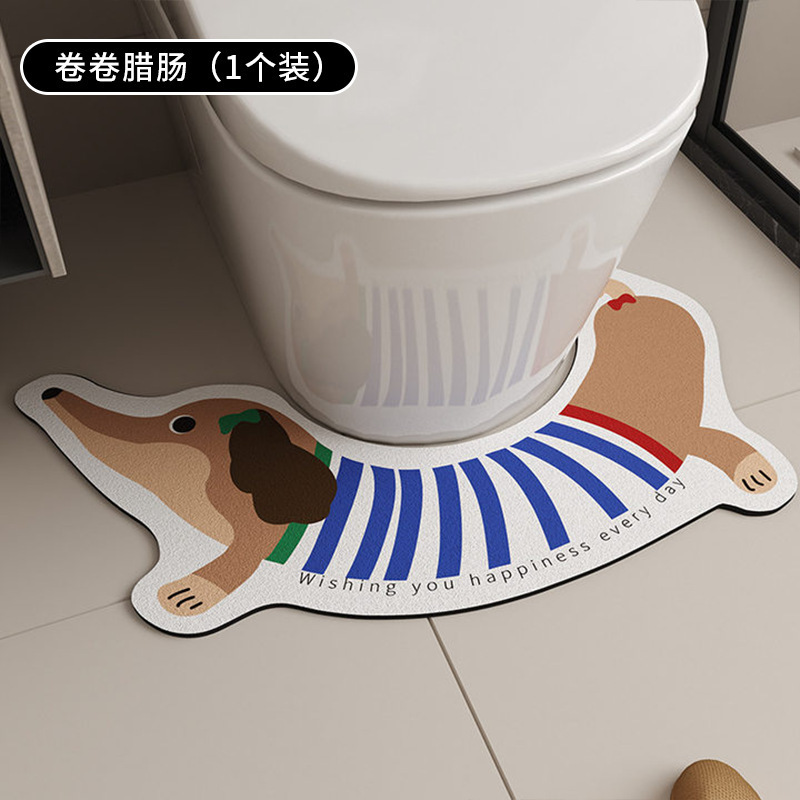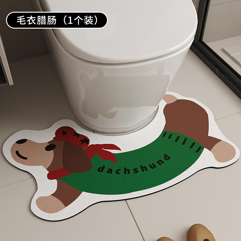 귀여운 닥스훈트 줄무늬 개 규조토 진흙 바닥 매트 욕실 화장실 U 자형 흡수성 미끄럼 방지 간편한 관리 발 매트 재고 있음스토어 가기