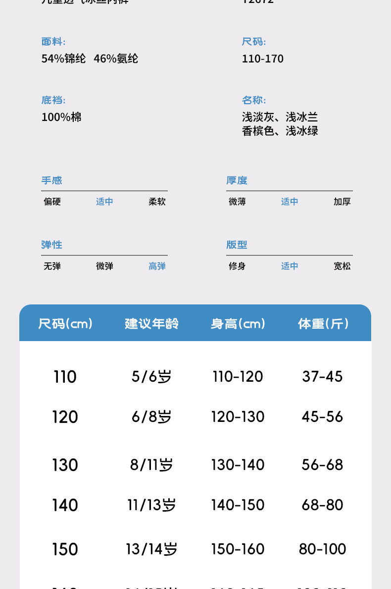 남아용 속옷, 아이스 실크 항균, 중고생 사각팬티, 초등학생 여름용 얇은 7A급 면 가랑이 팬티