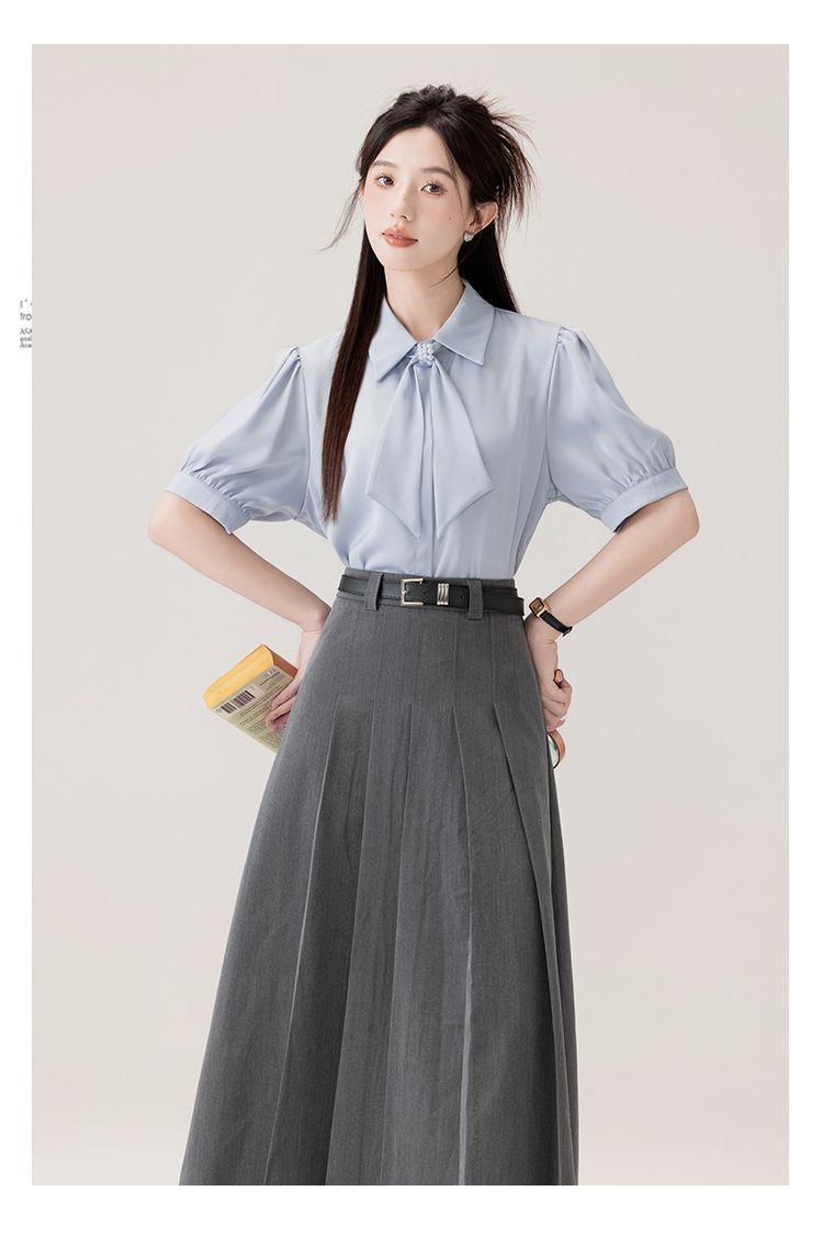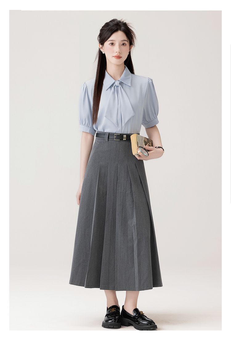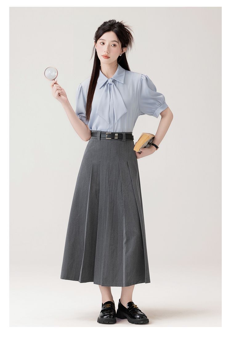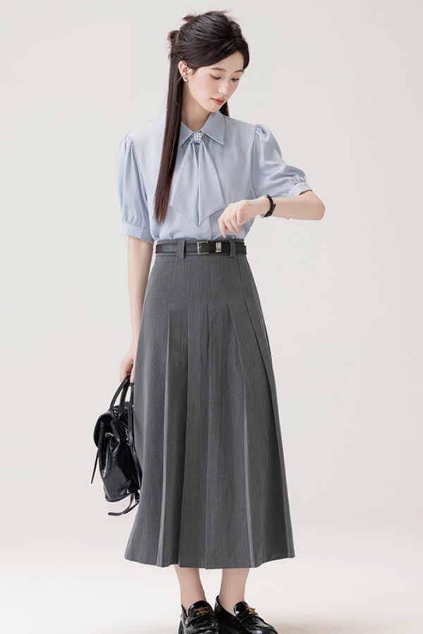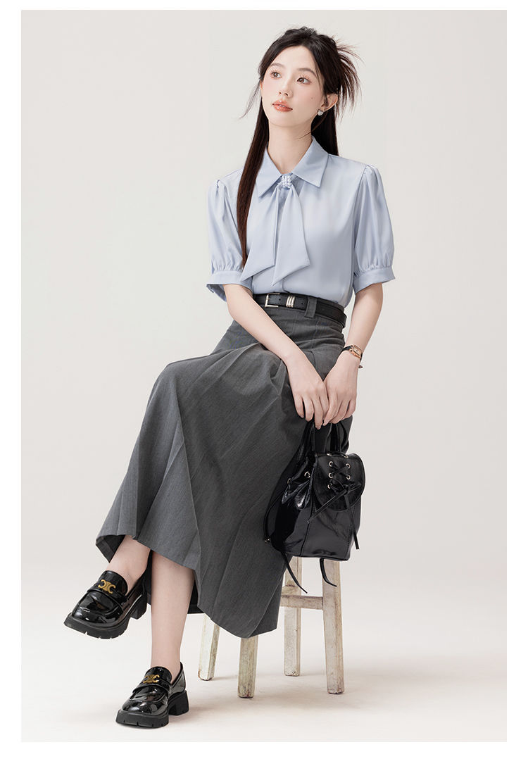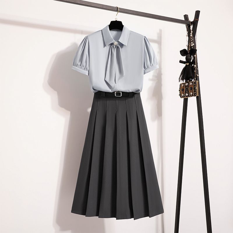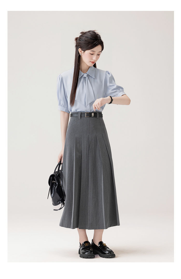 • 파란색 셔츠 + 회색 스커트 [슈트]