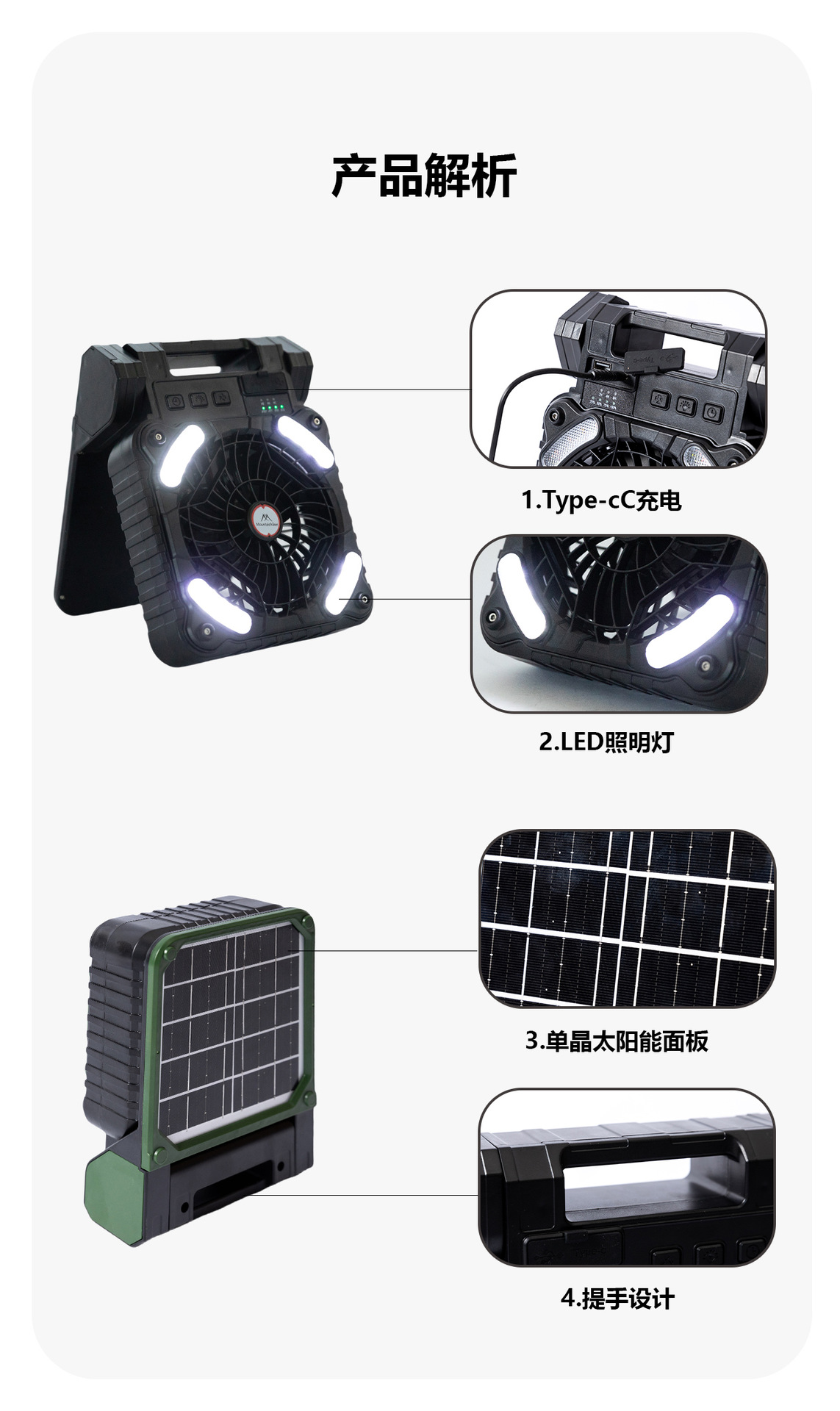 Shanzhiketuyue 야외 팬 태양열 캠핑 휴대용 USB 텐트 조명 휴대용 낚시 콜드스토어 가기
