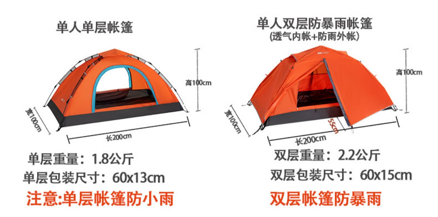 텐트 야외 접이식 휴대용 1인용 완전 자동 캠핑 방수 장비 캠핑 및 밤새도록 여행하는 완전한 세트스토어 가기