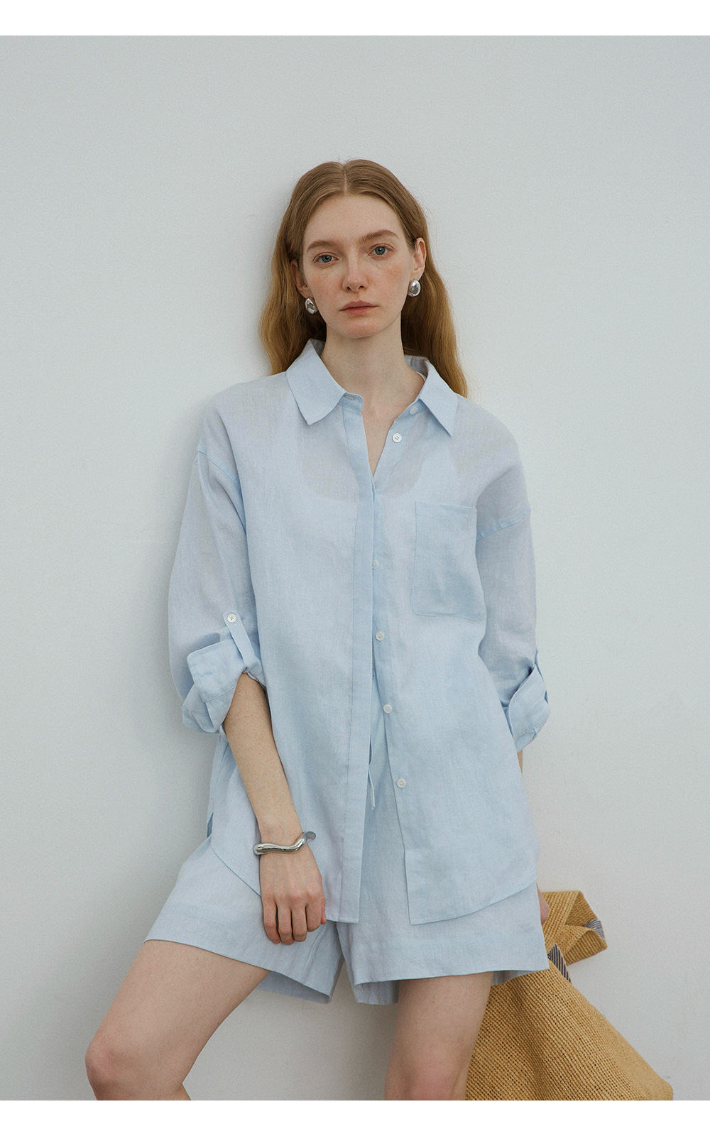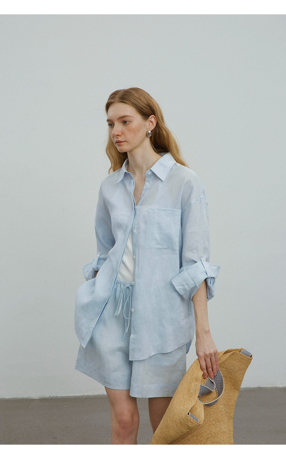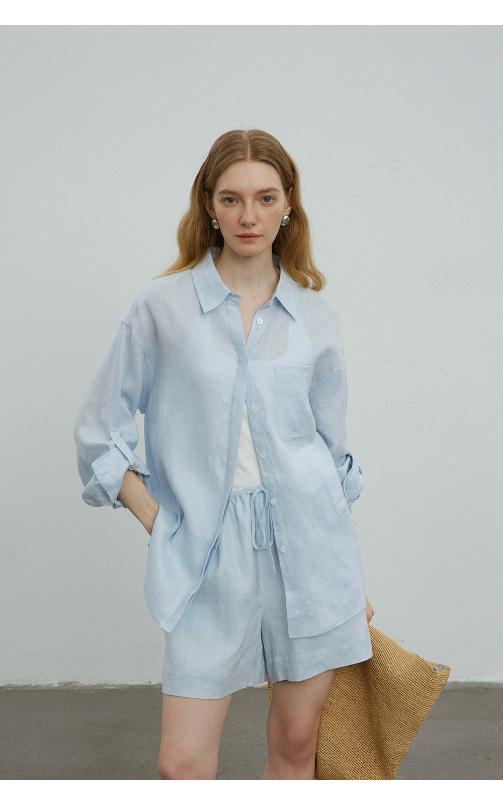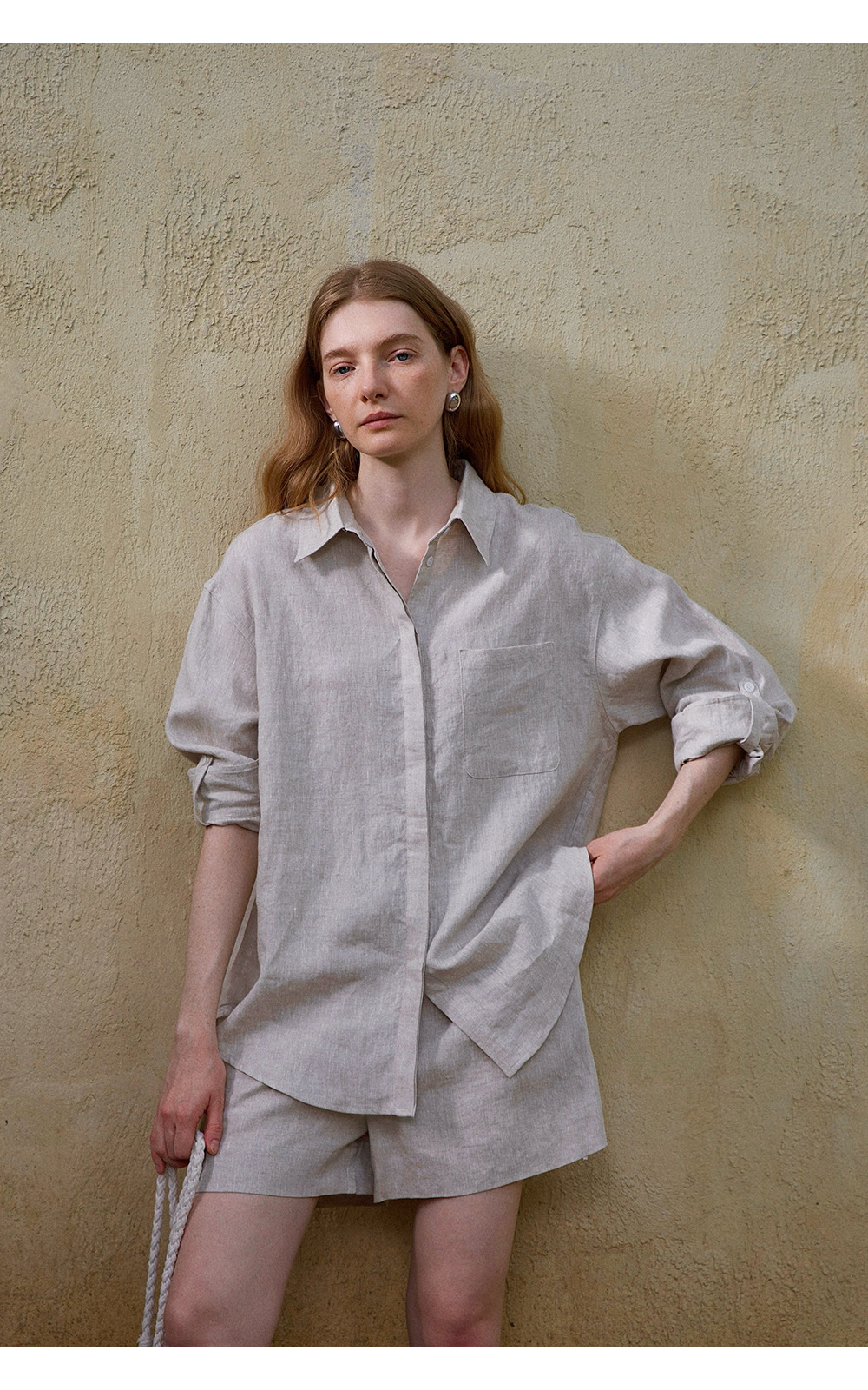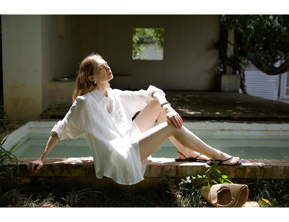 고급 올드 머니 스타일 100% 린넨 실루엣 긴팔 셔츠/반바지 자외선 차단 슈트스토어 가기