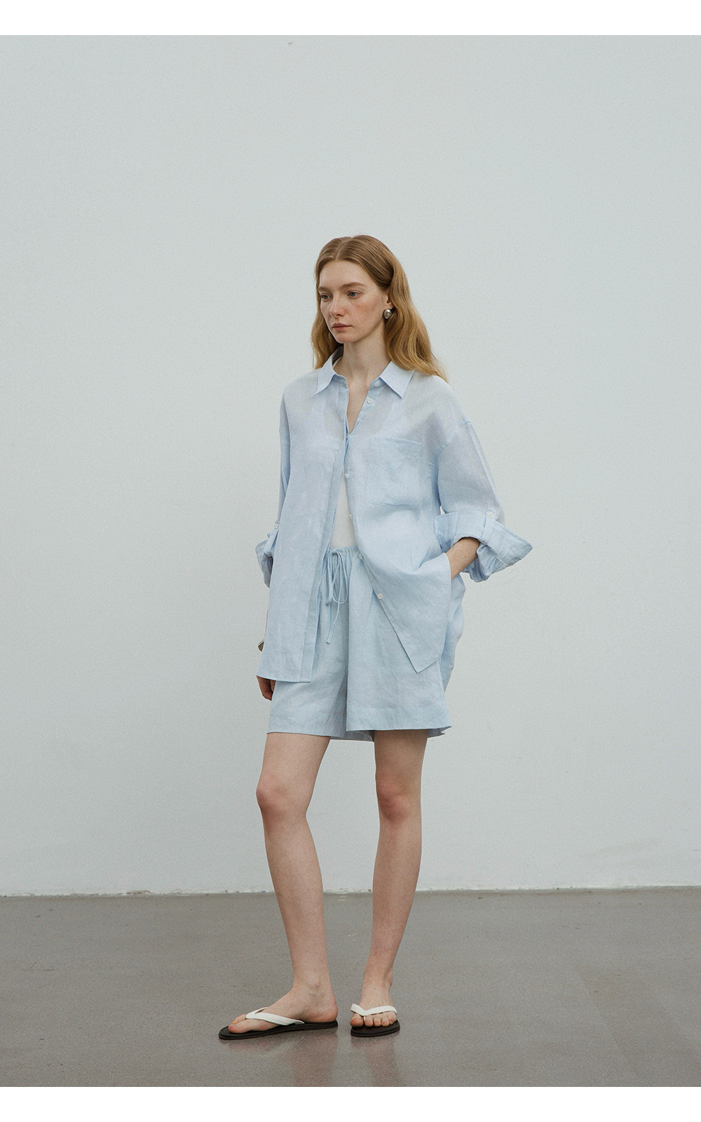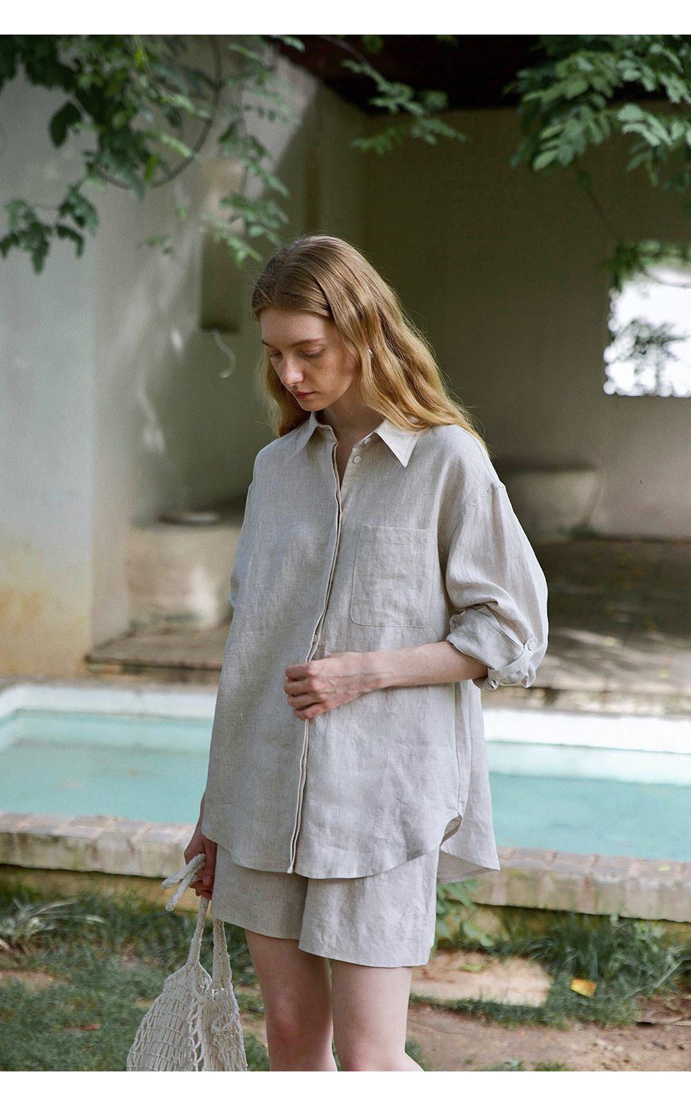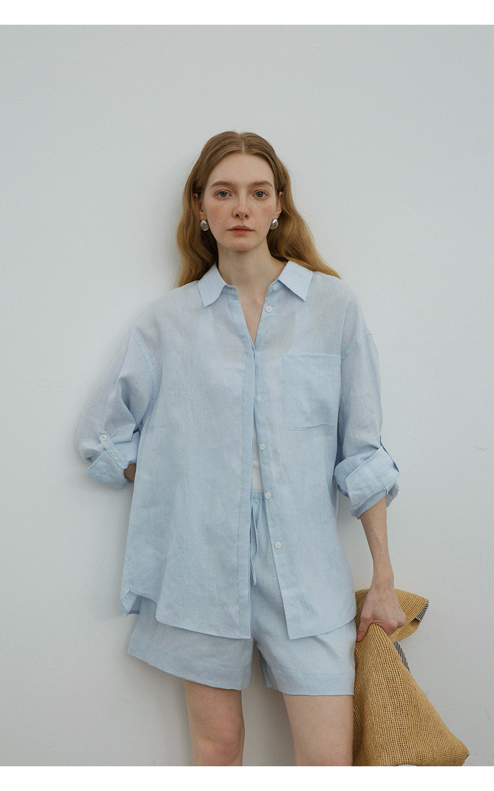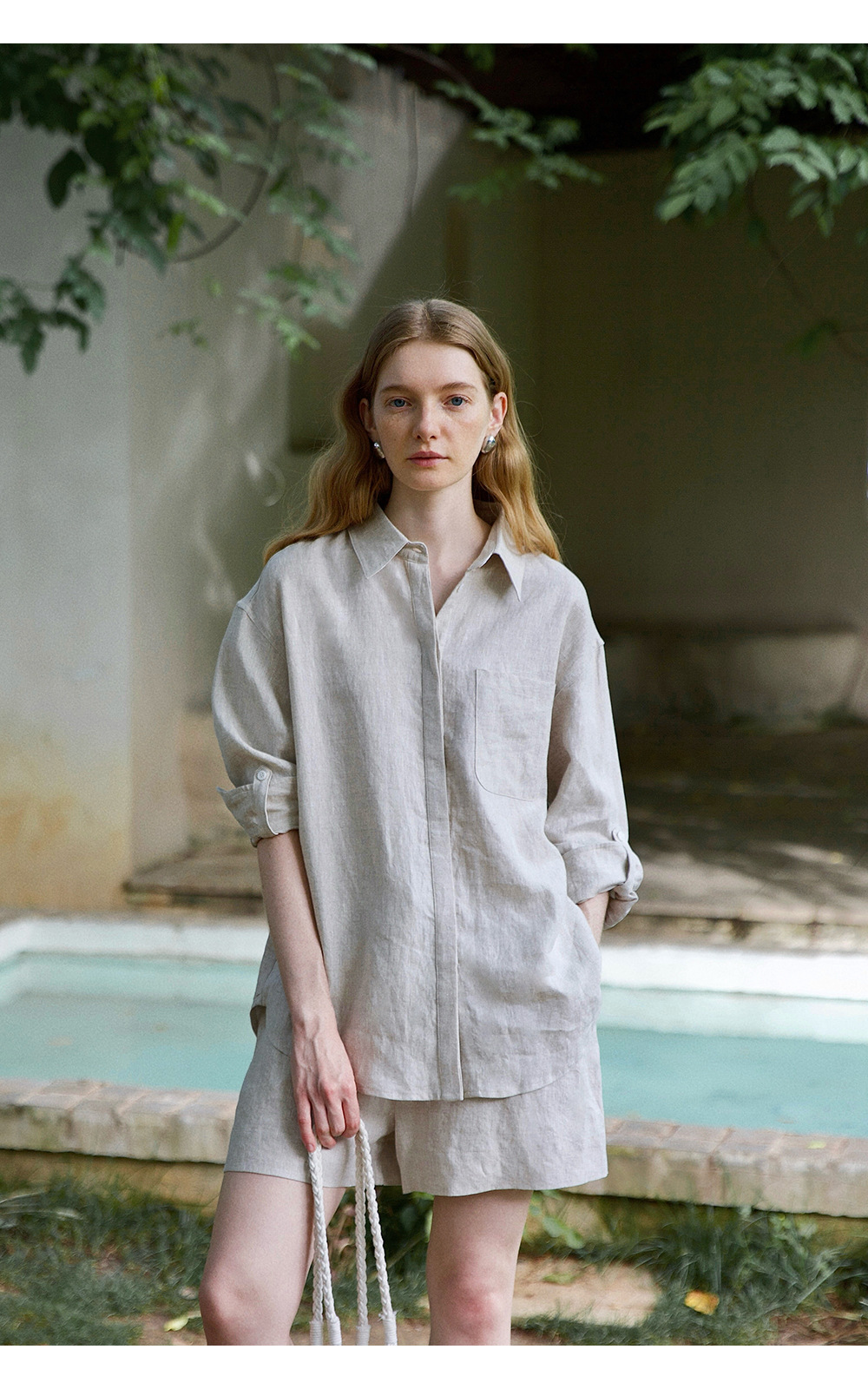 고급 올드 머니 스타일 100% 린넨 실루엣 긴팔 셔츠/반바지 자외선 차단 슈트스토어 가기