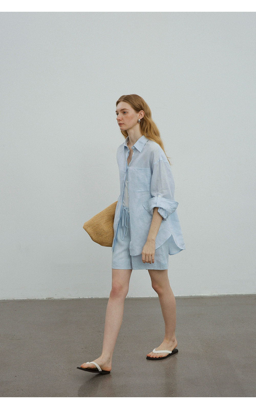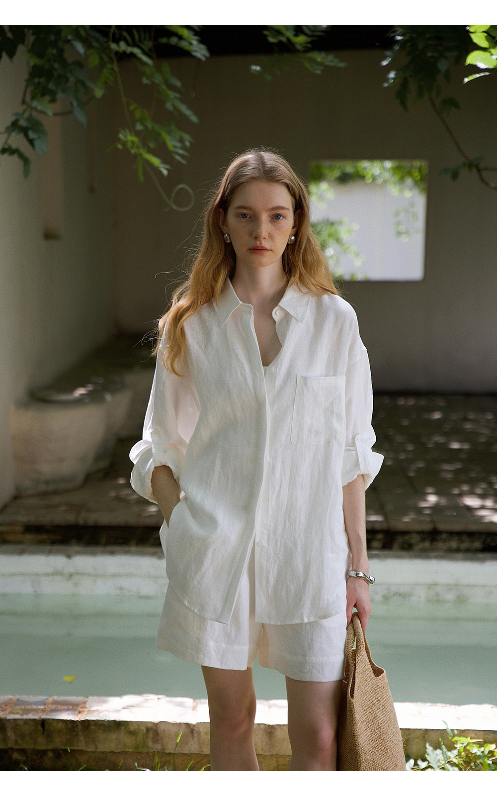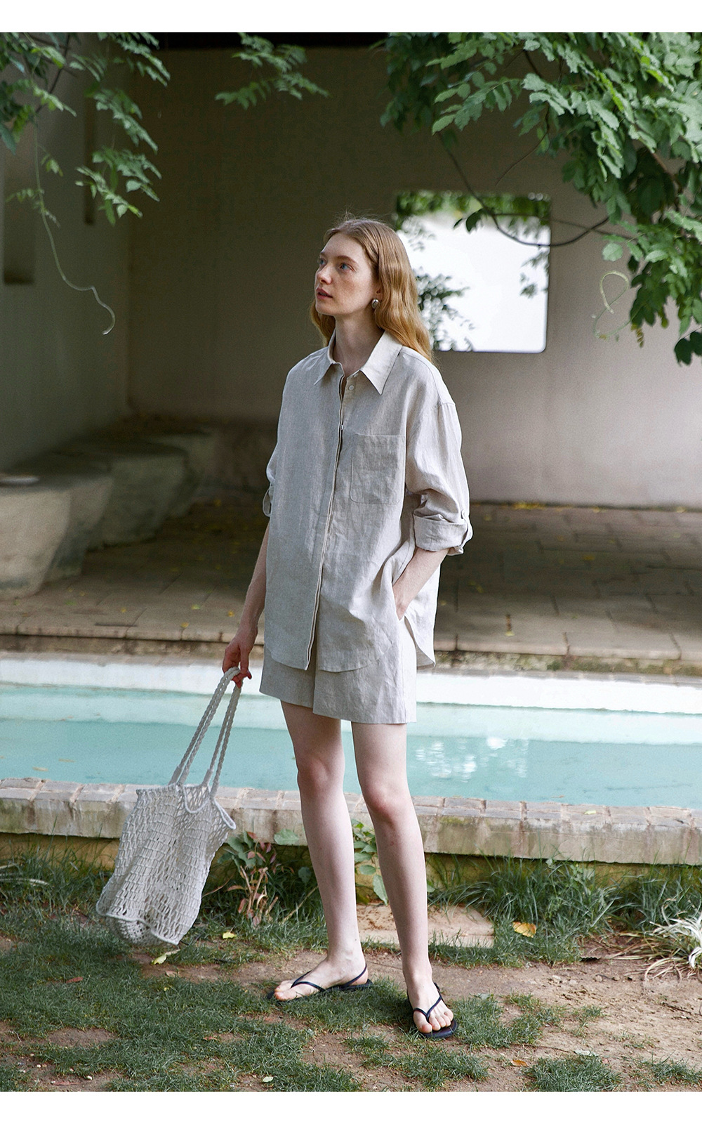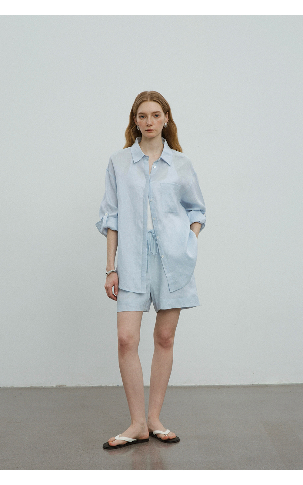 고급 올드 머니 스타일 100% 린넨 실루엣 긴팔 셔츠/반바지 자외선 차단 슈트스토어 가기