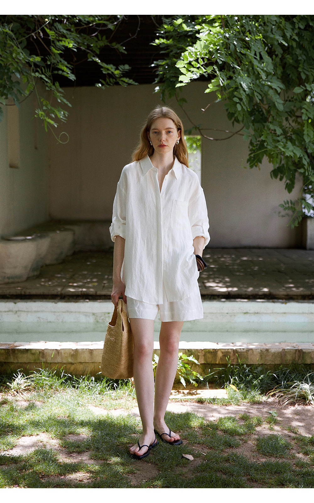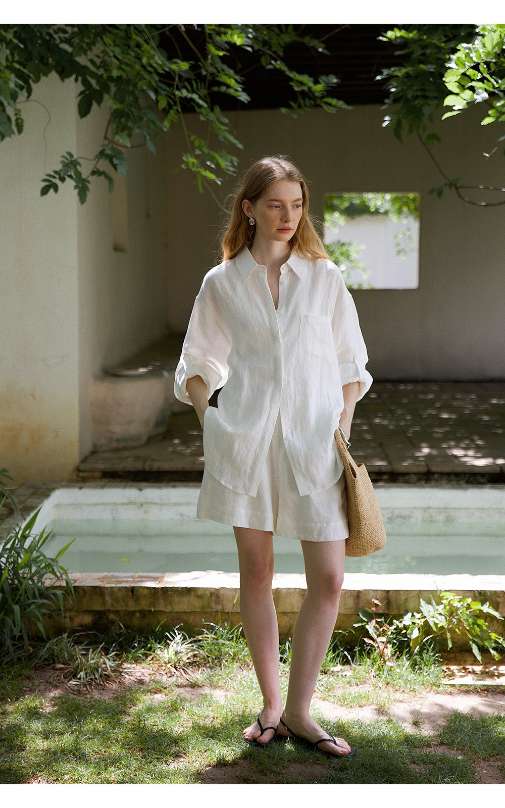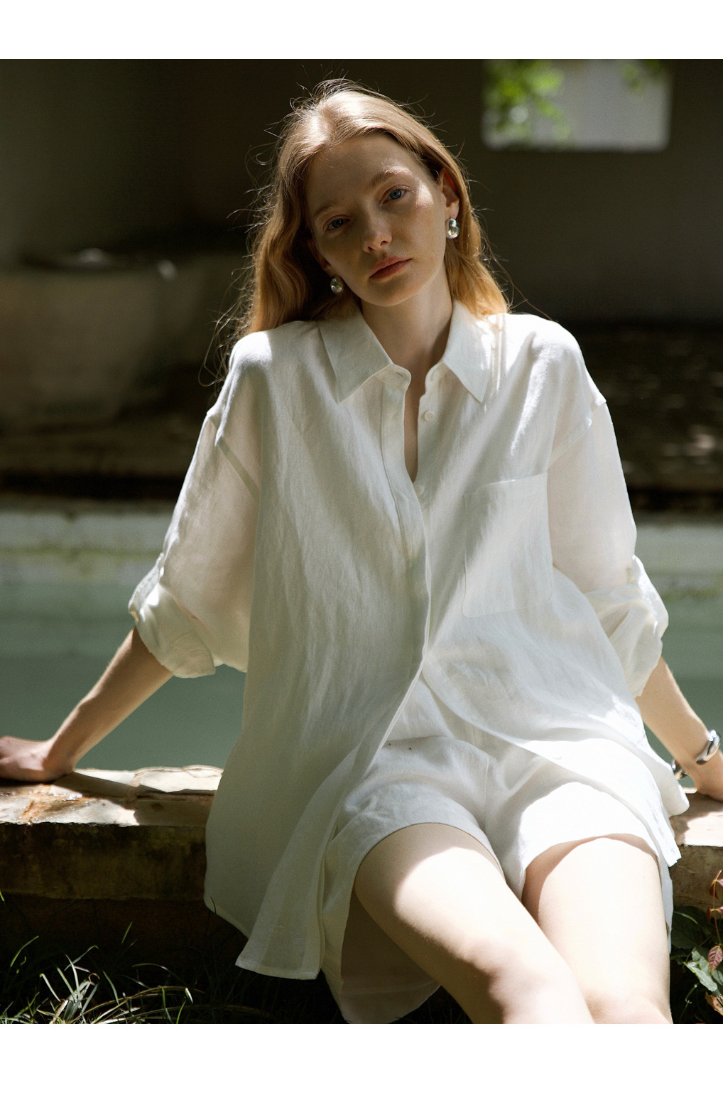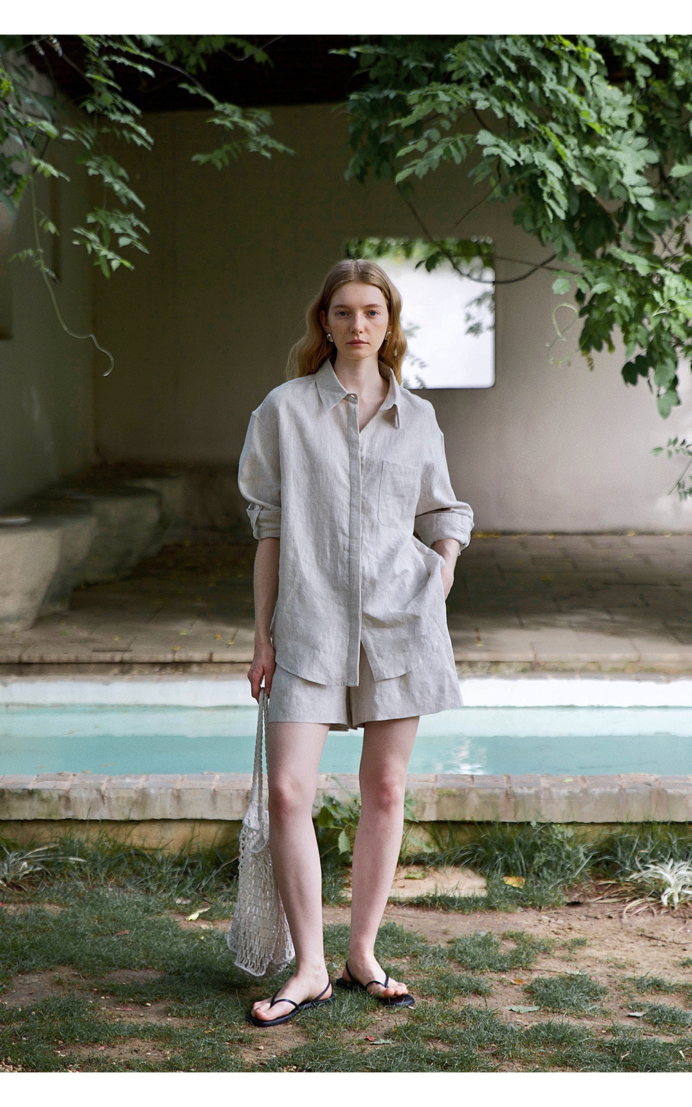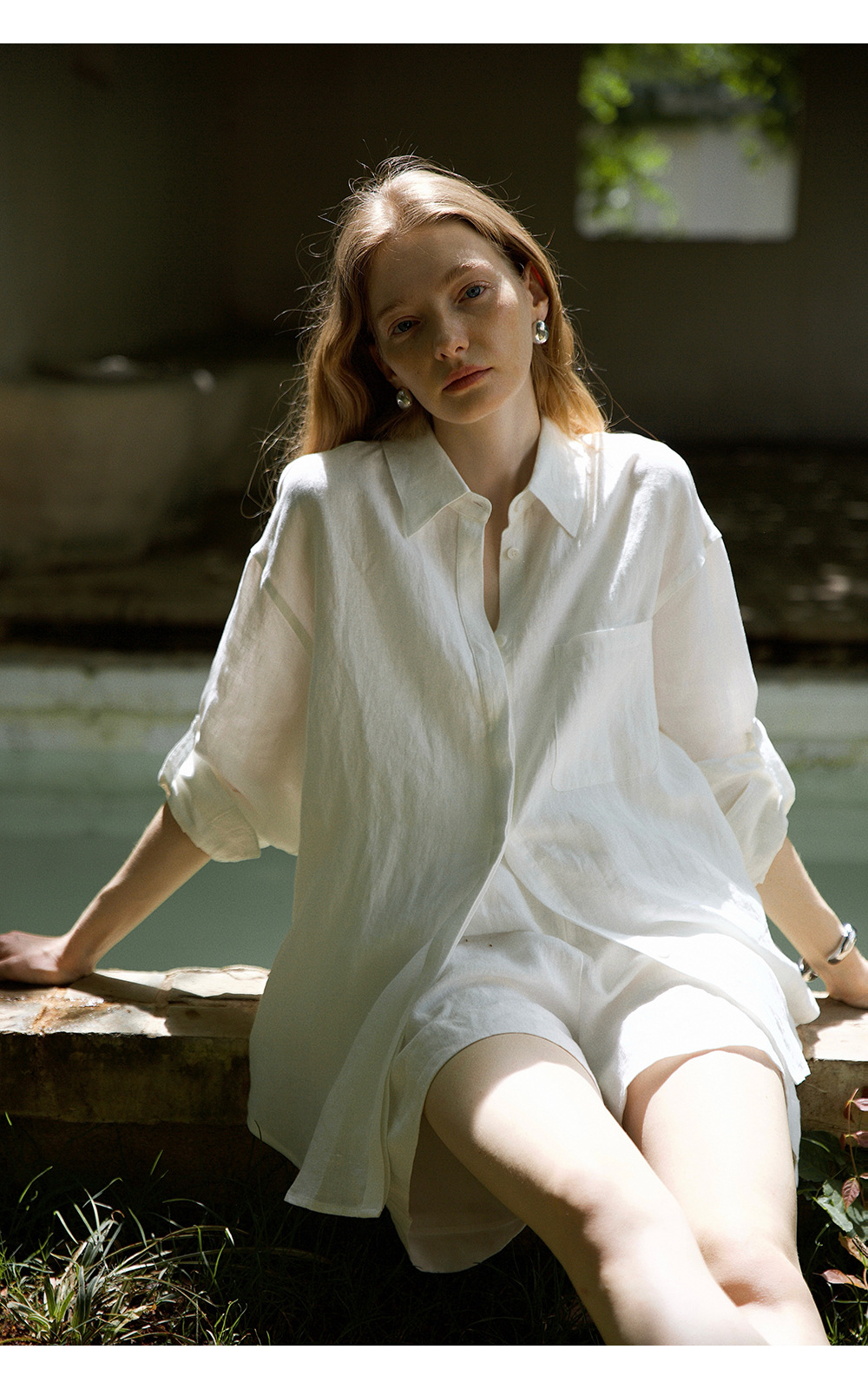 고급 올드 머니 스타일 100% 린넨 실루엣 긴팔 셔츠/반바지 자외선 차단 슈트스토어 가기