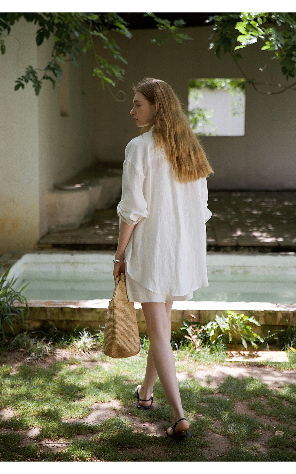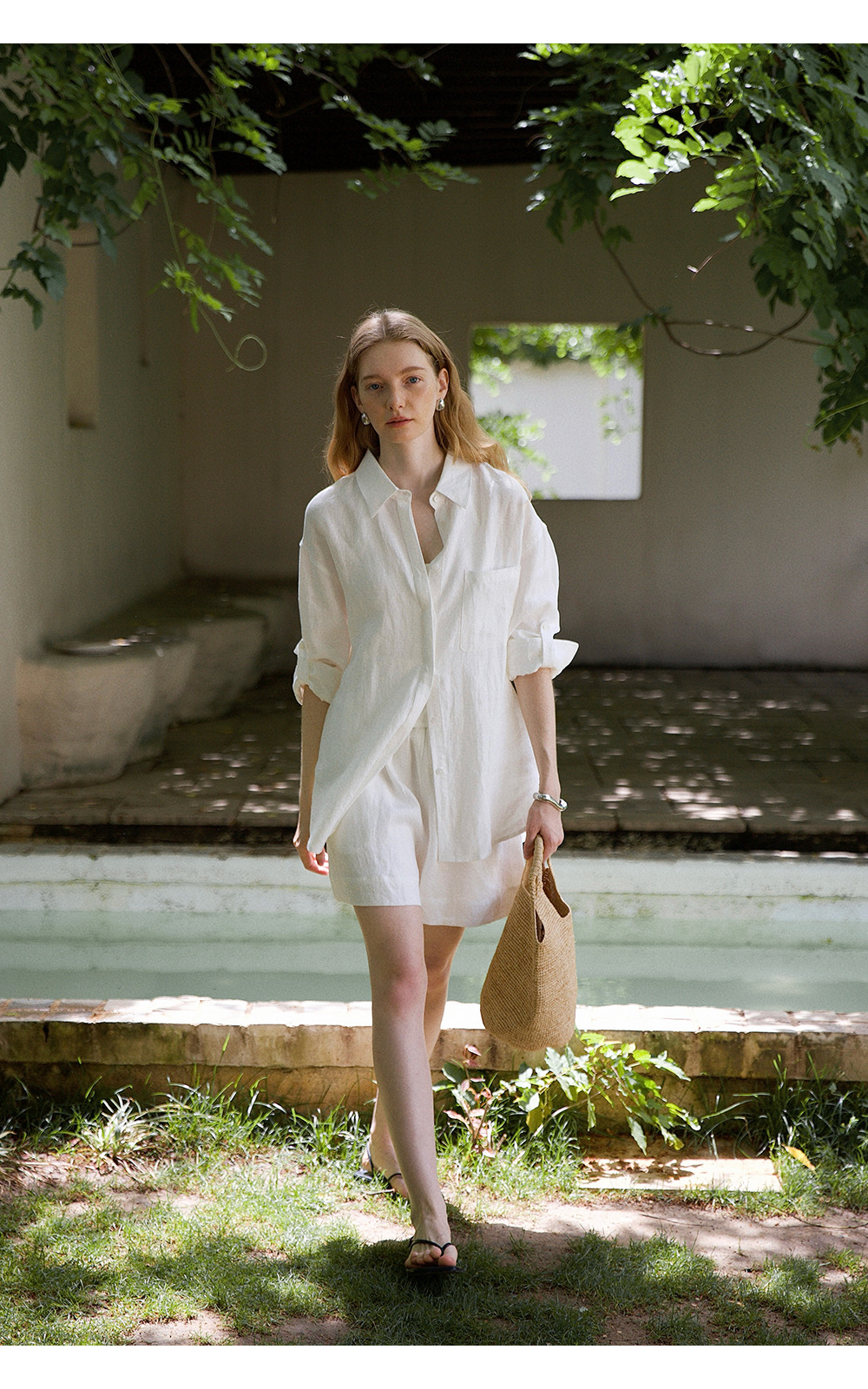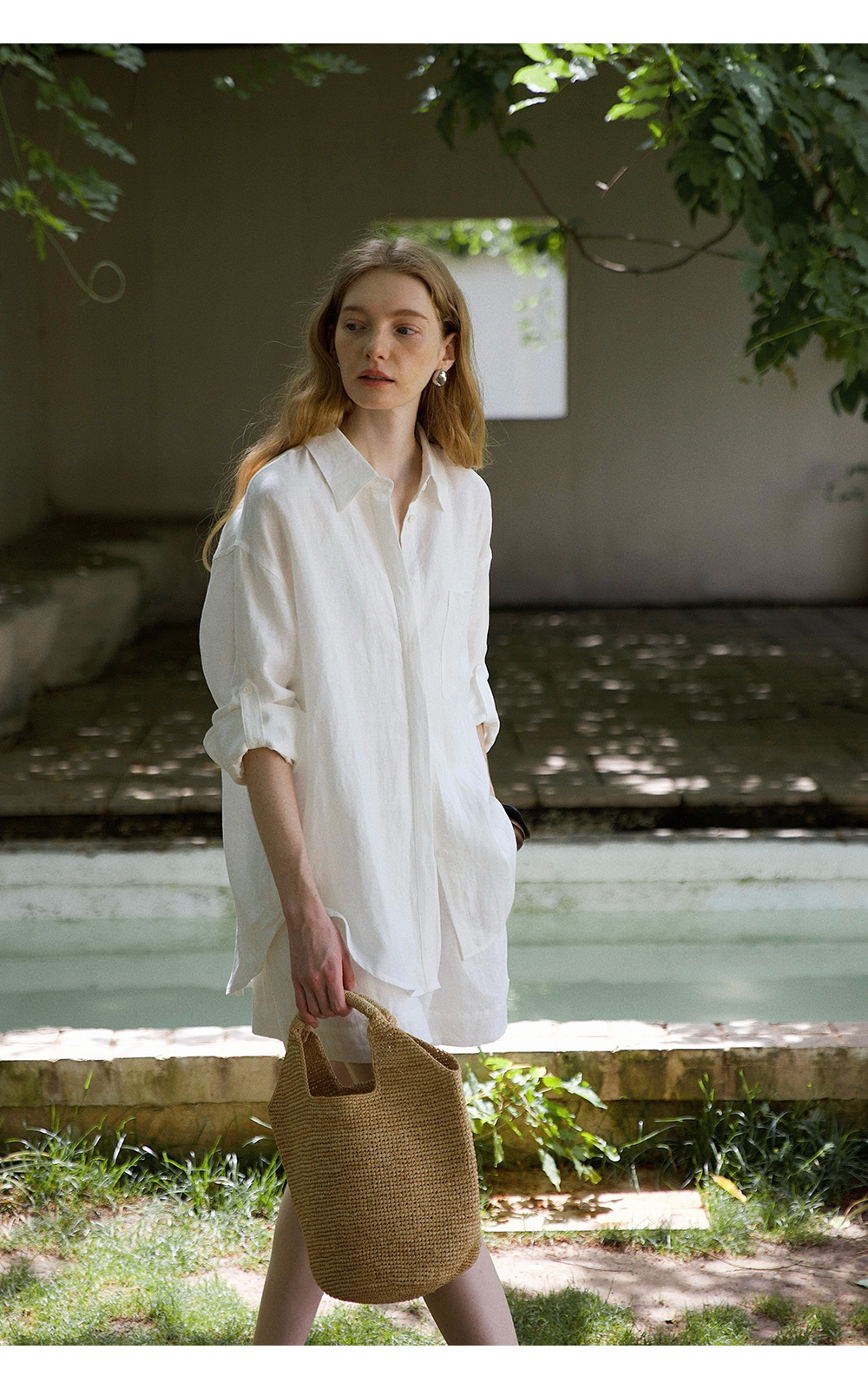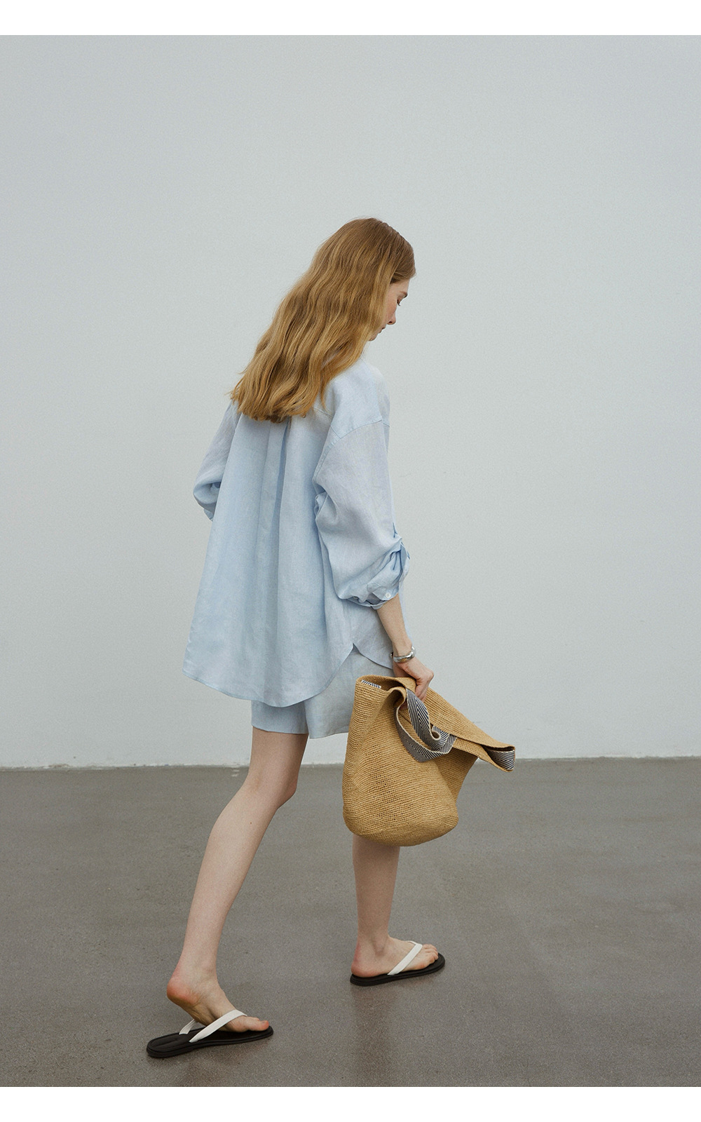 고급 올드 머니 스타일 100% 린넨 실루엣 긴팔 셔츠/반바지 자외선 차단 슈트스토어 가기