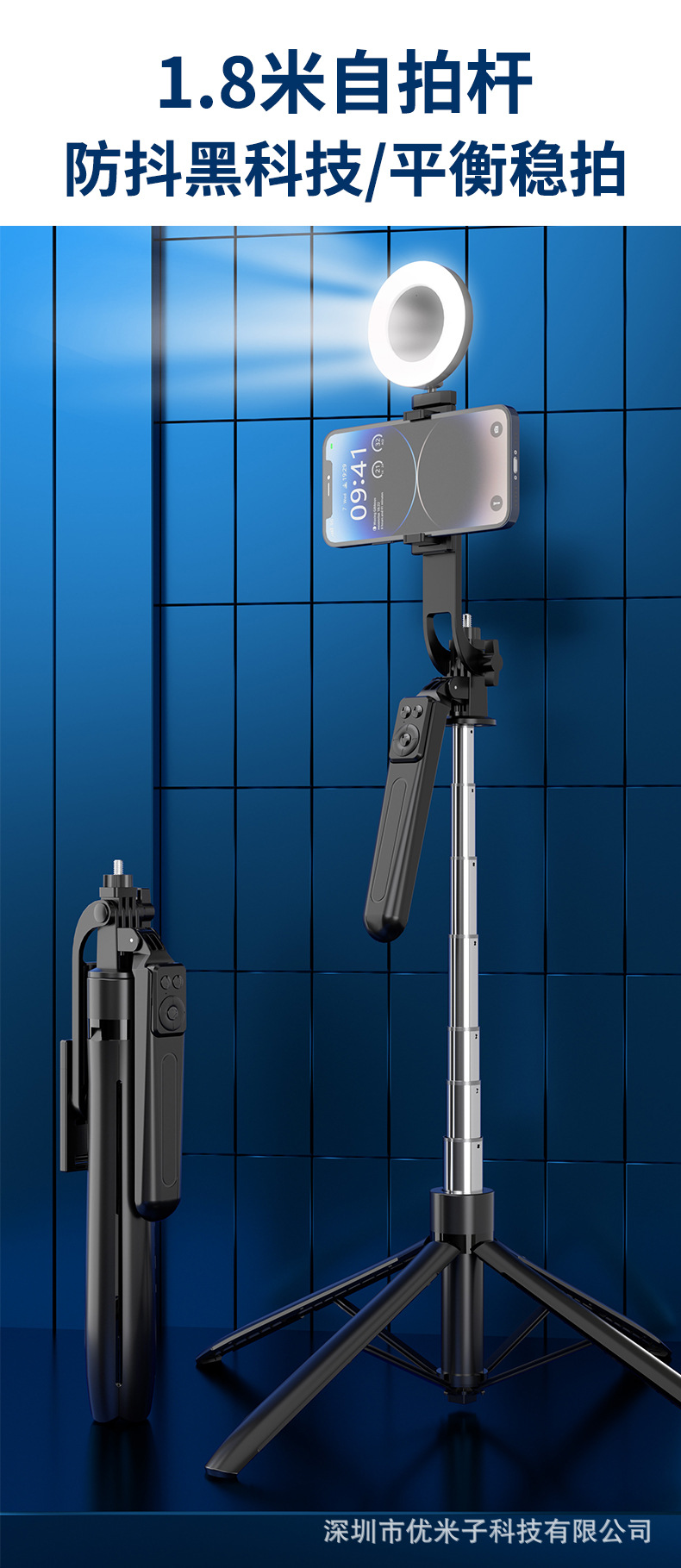 B17 휴대 전화 범용 스탠드 알루미늄 합금 4 다리 블루투스 셀카 스틱 바닥 1.8m 라이브 셀카 스틱 스탠드스토어 가기