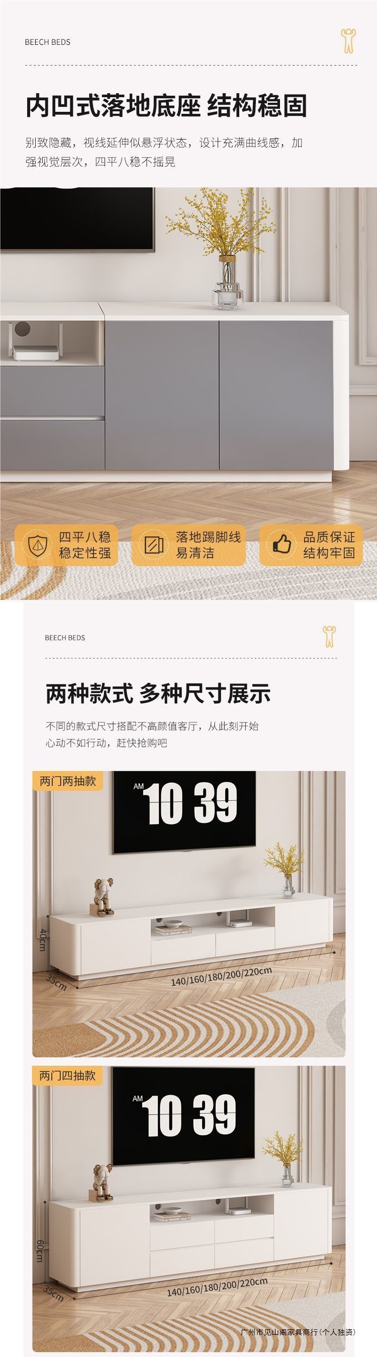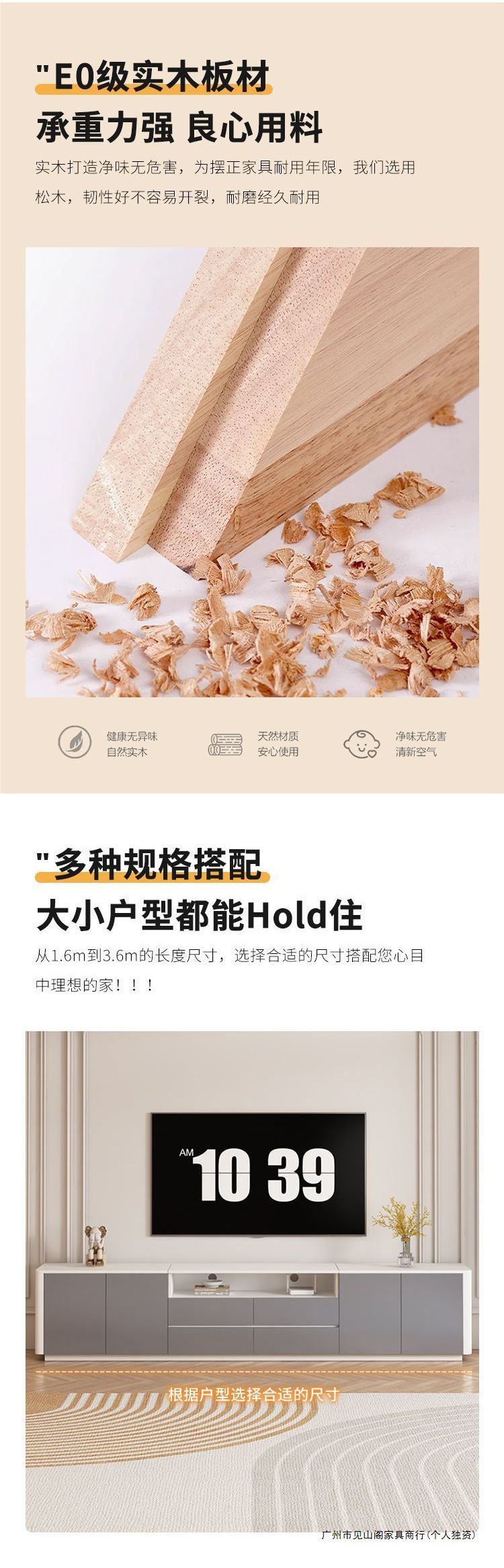 크림 스타일 바닥에서 천장까지 TV 캐비닛과 커피 테이블 조합 작은 거실 흰색 미니멀리스트 바닥 캐비닛 단순하고 현대적인 단단한 나무스토어 가기
