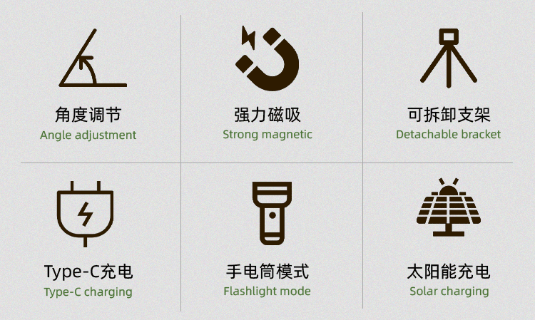 2.太阳能充电工作红色指示灯亮,数据线充电红色指示灯亮,充满绿色指示灯亮。