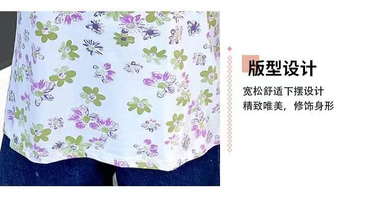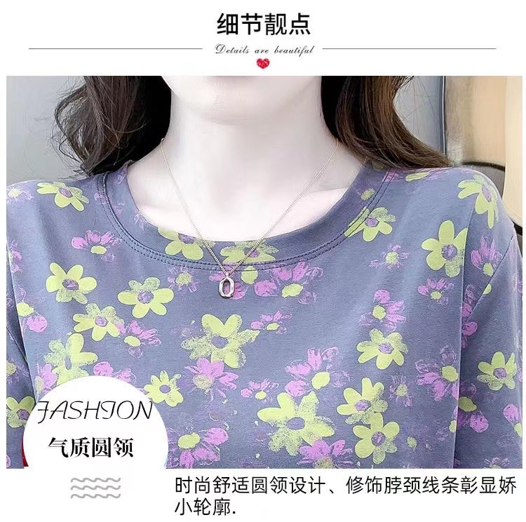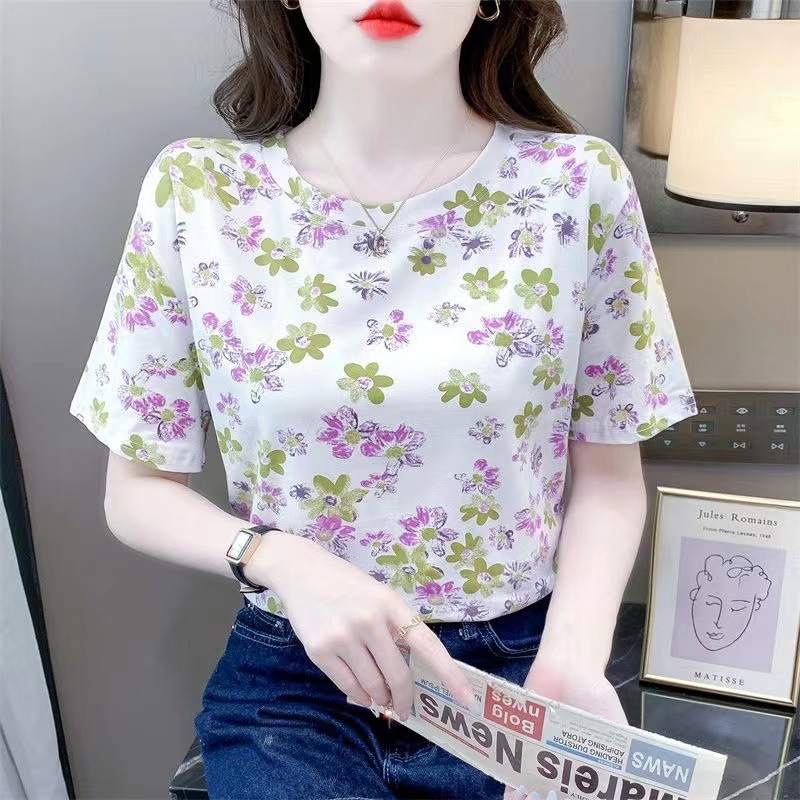 여성을위한 세련된 꽃 프린트 반팔 티셔츠 여름 새로운 느슨한 캐주얼 슬림 라운드 넥 티셔츠 탑