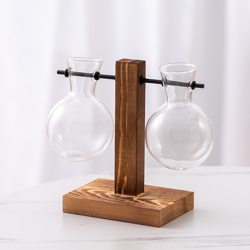 혁신적인 교수형 나무 선반 유리 수경 꽃병, 청록색 유리 꽃병, 꽃꽂이 용기, 데스크탑 장식 장식품스토어 가기