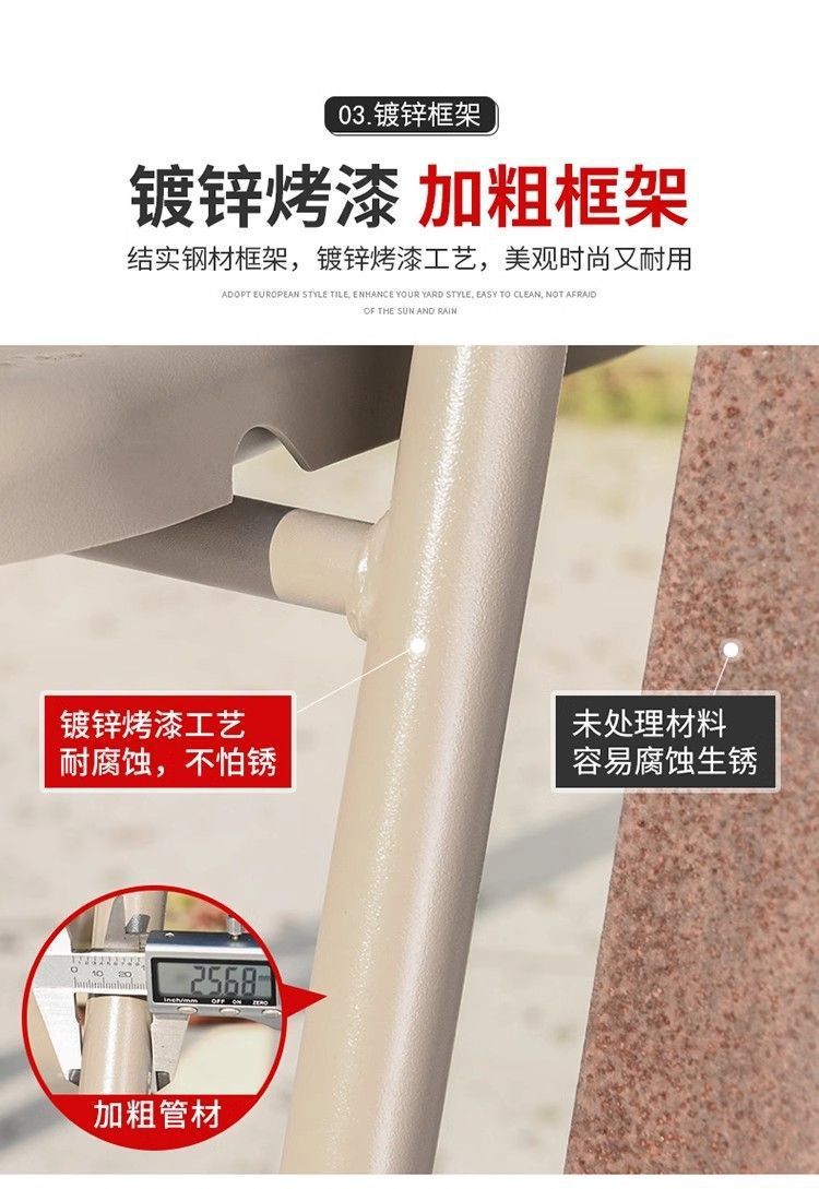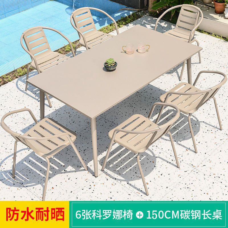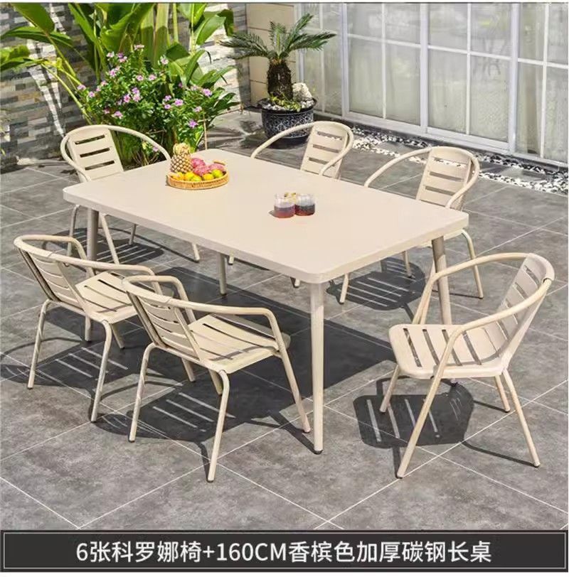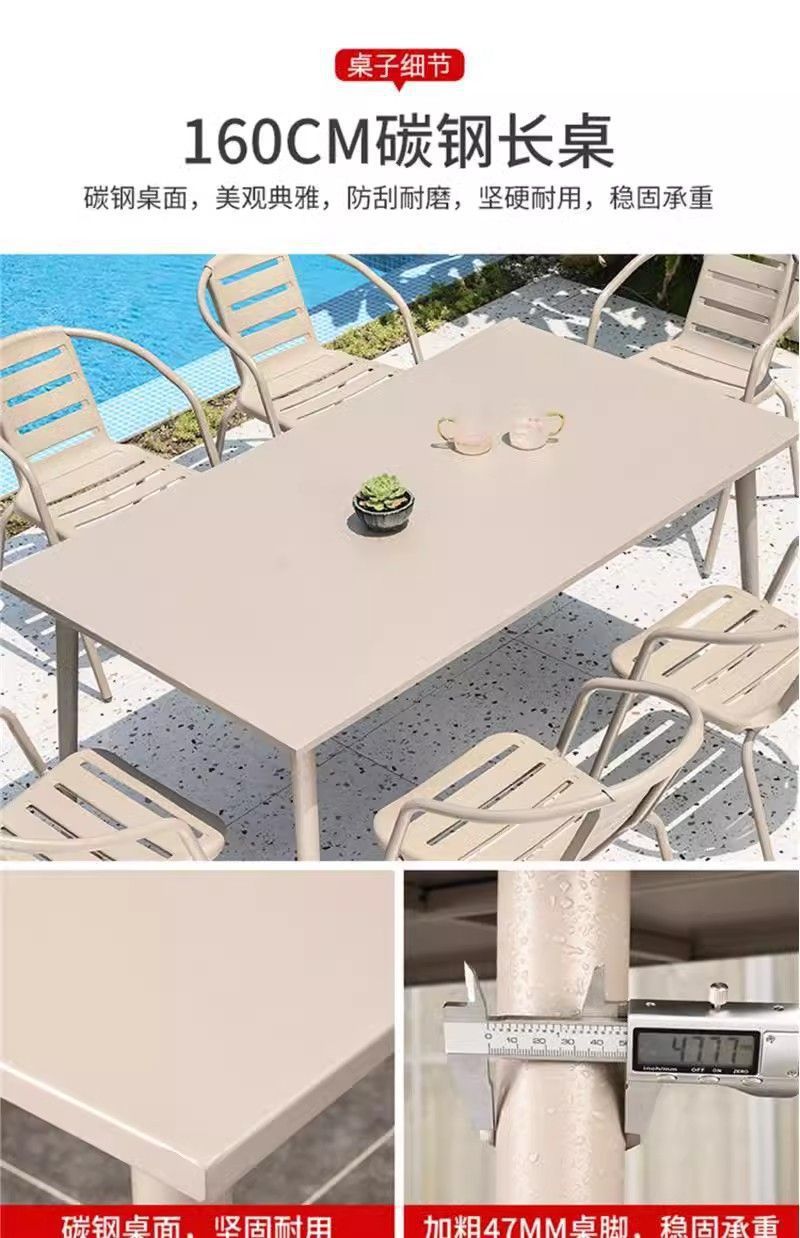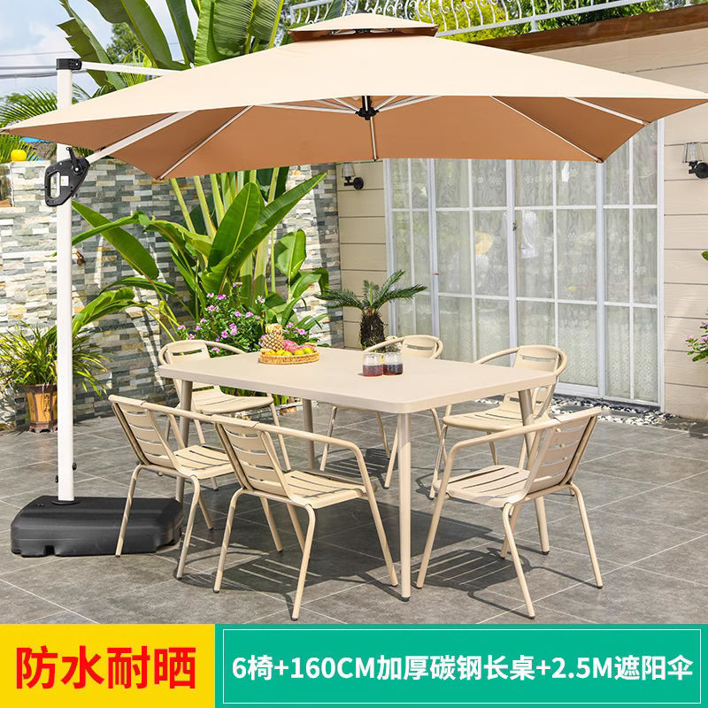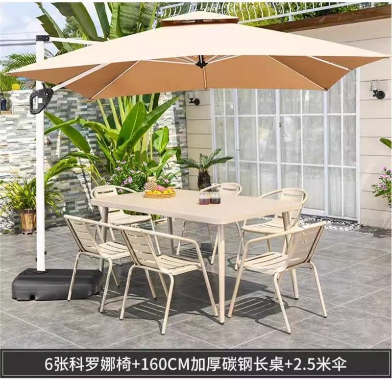 • 업그레이드된 의자 6개 + 160CM 두께의 탄소강 긴 테이블 + 2.5m 로마 우산 +