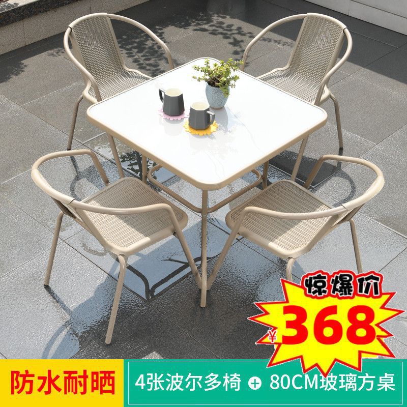 • 업그레이드된 의자 4개 + 80CM 정사각형 유리 테이블 +