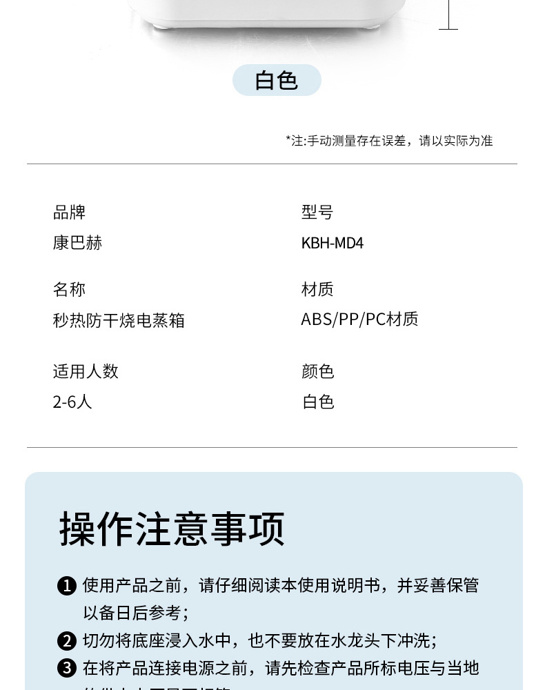 Konbach 즉시 가열 건조 방지 전기 스팀 박스(오프화이트) KBH-MD4W