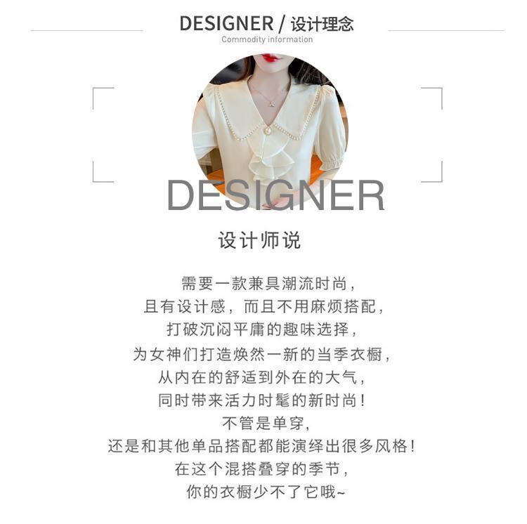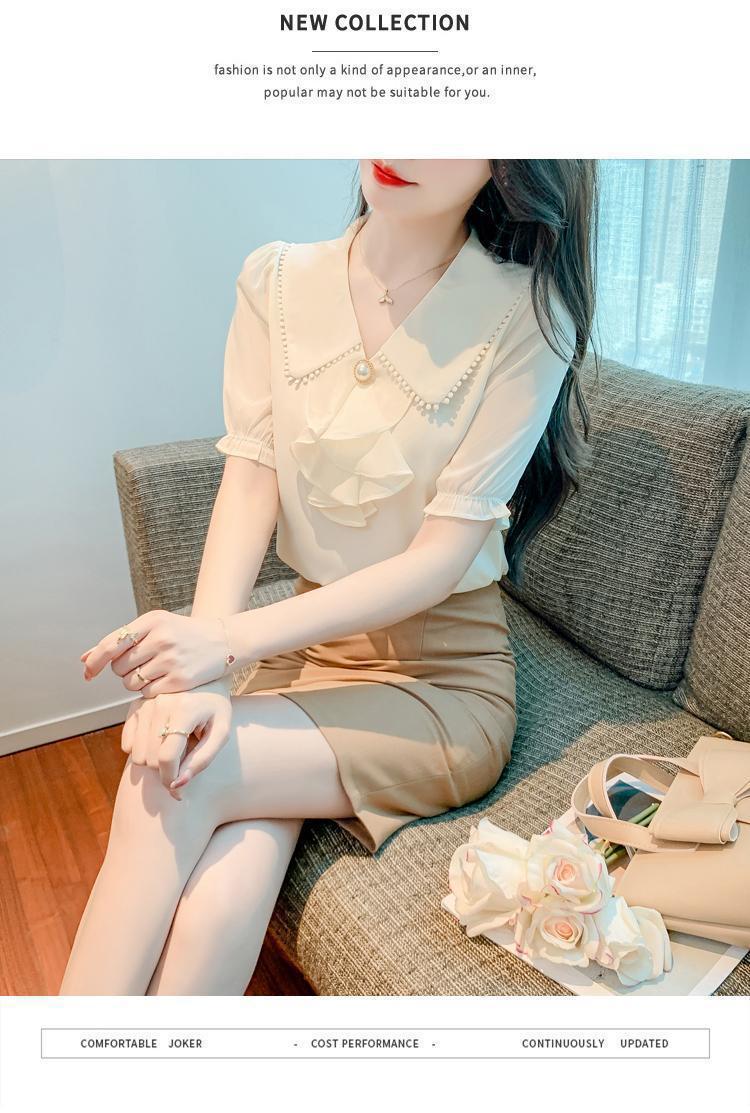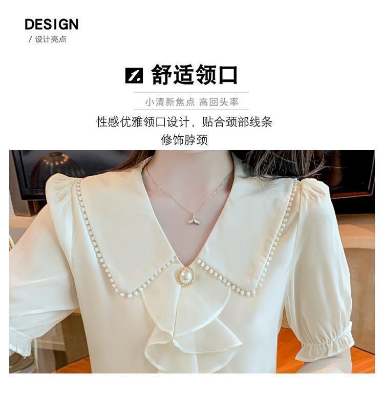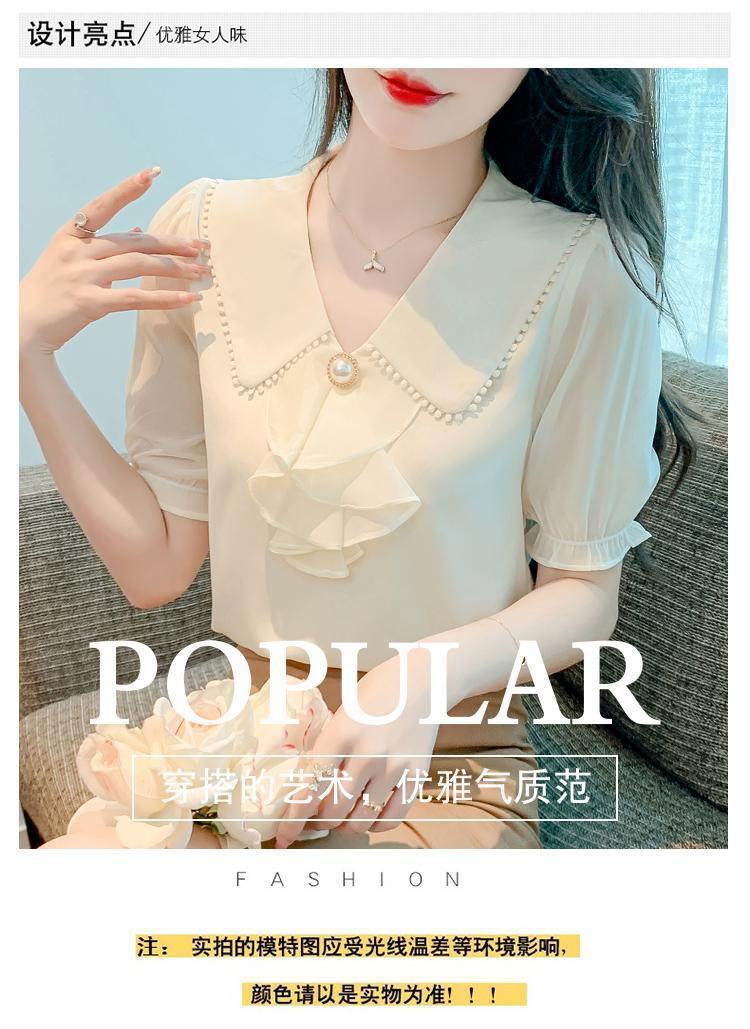 여성을위한 쉬폰 셔츠 반팔 2024 새로운 여름 세련되고 아름다운 셔츠 세련되고 세련된 기질 탑