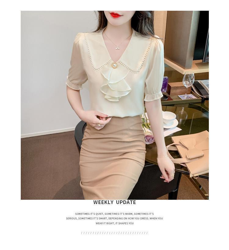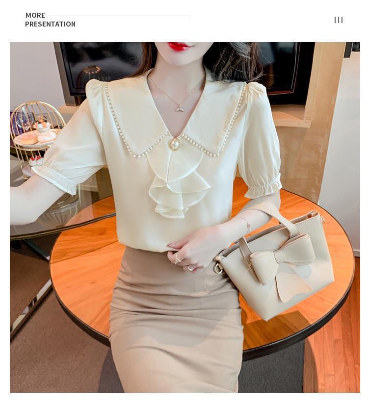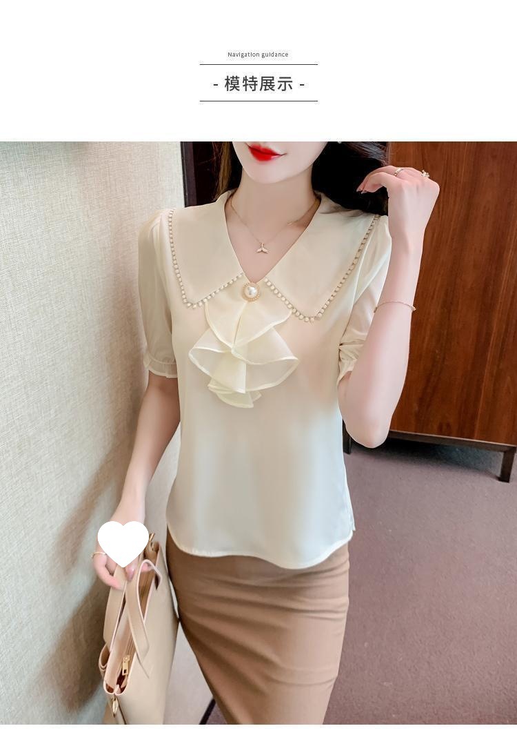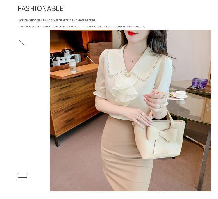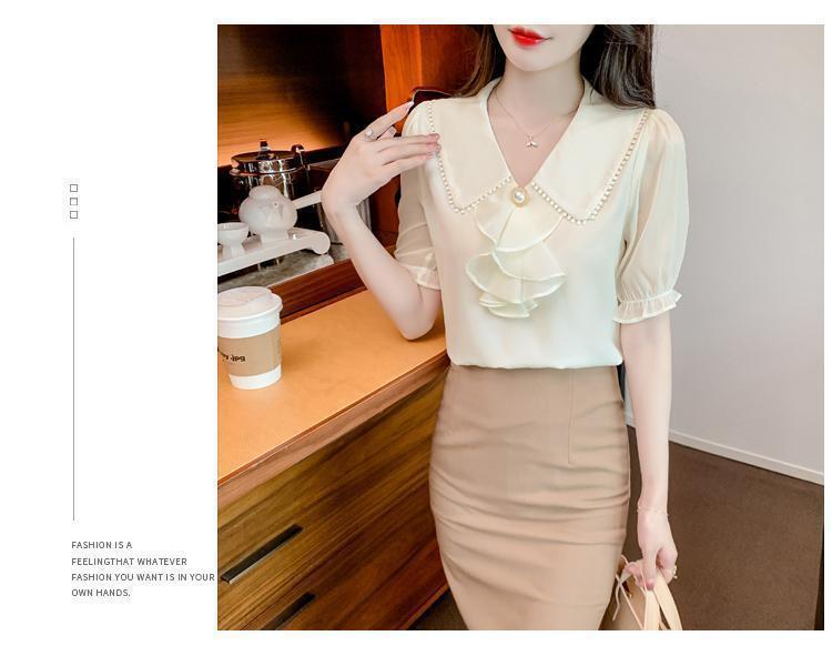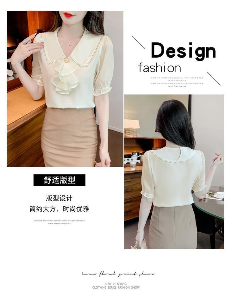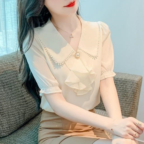 여성을위한 쉬폰 셔츠 반팔 2024 새로운 여름 세련되고 아름다운 셔츠 세련되고 세련된 기질 탑스토어 가기