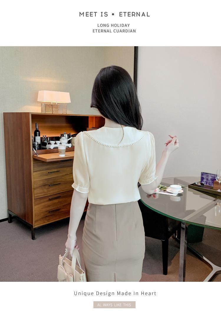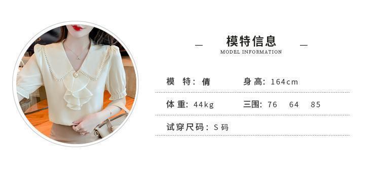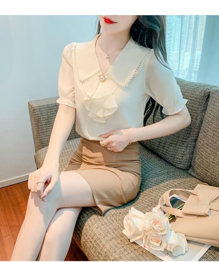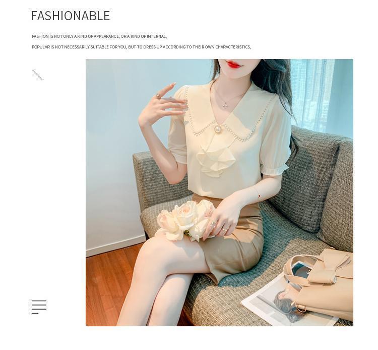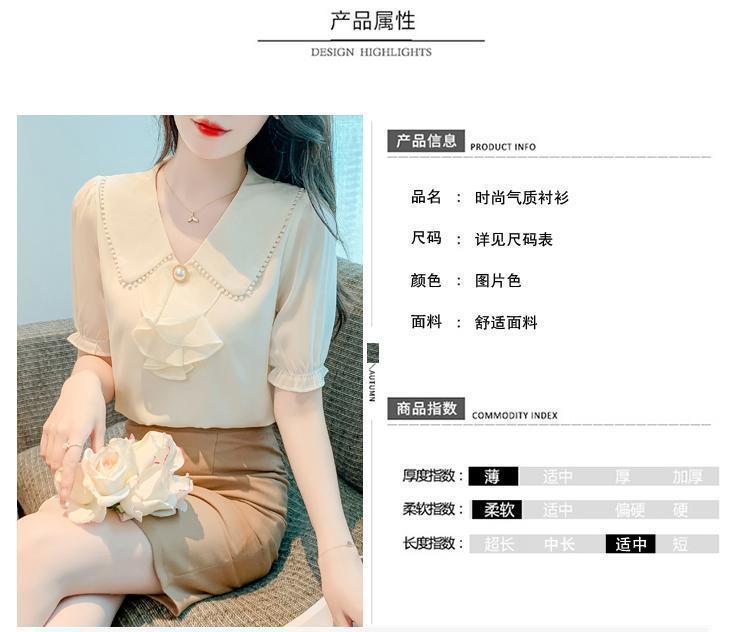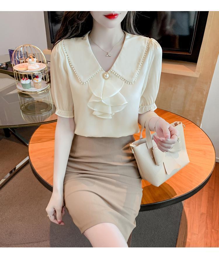 여성을위한 쉬폰 셔츠 반팔 2024 새로운 여름 세련되고 아름다운 셔츠 세련되고 세련된 기질 탑스토어 가기