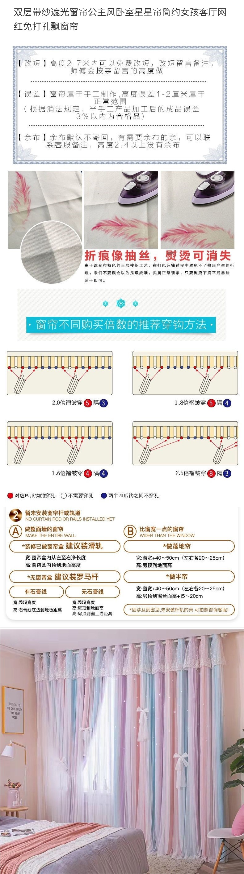 실이 있는 이중 레이어 차광 커튼, 공주풍 침실 별 커튼, 심플한 소녀 거실, 인터넷 연예인, 펀치 프리 플로팅스토어 가기