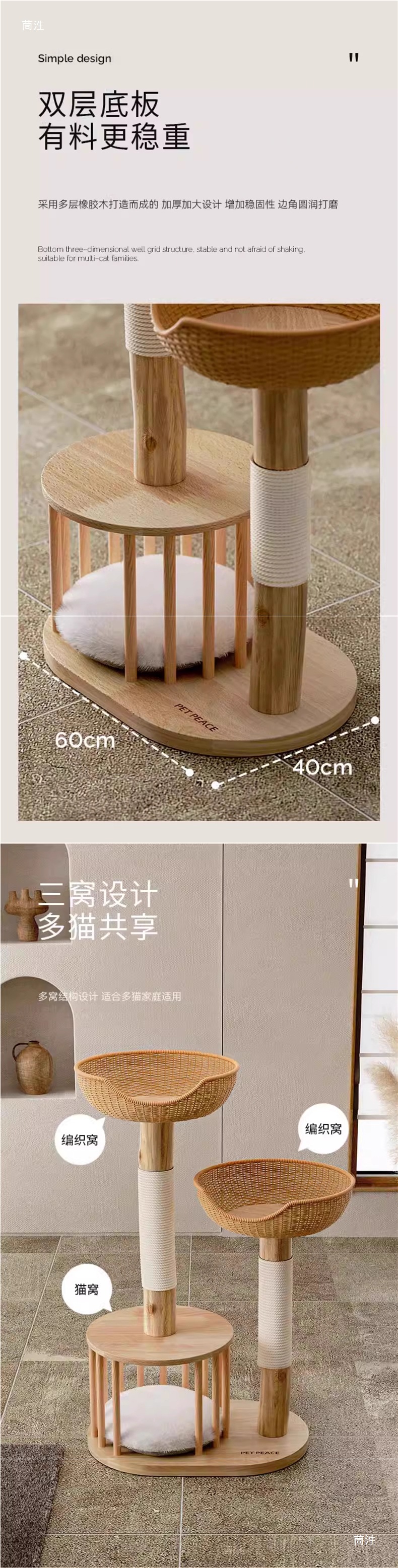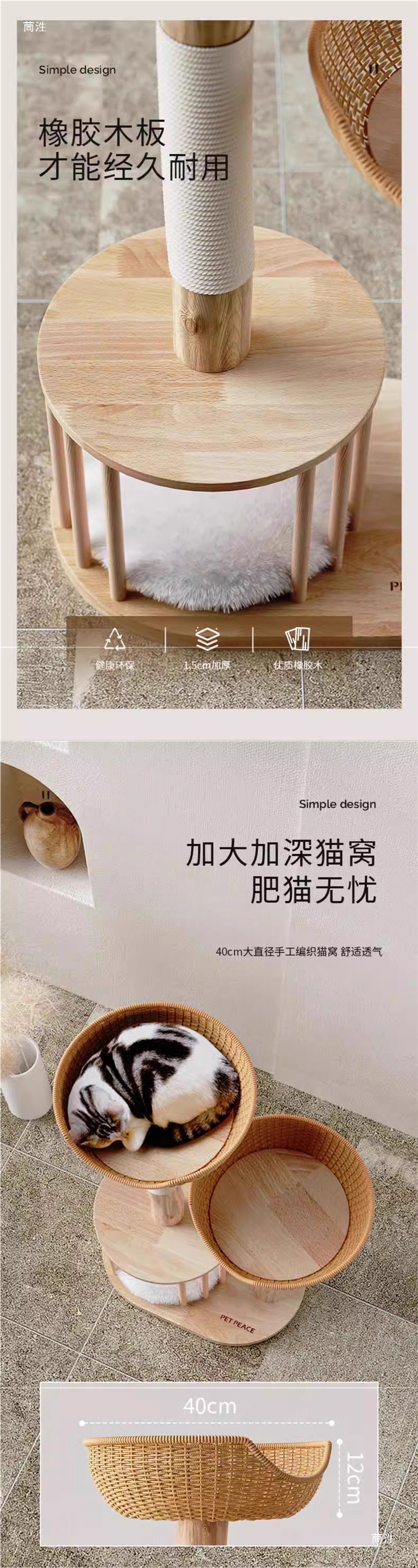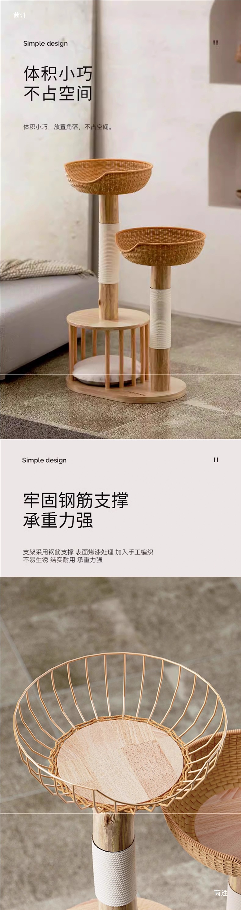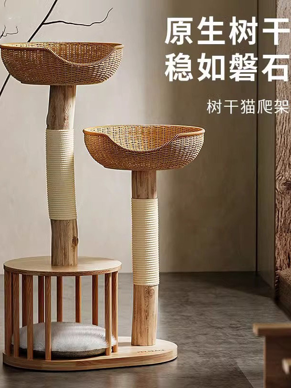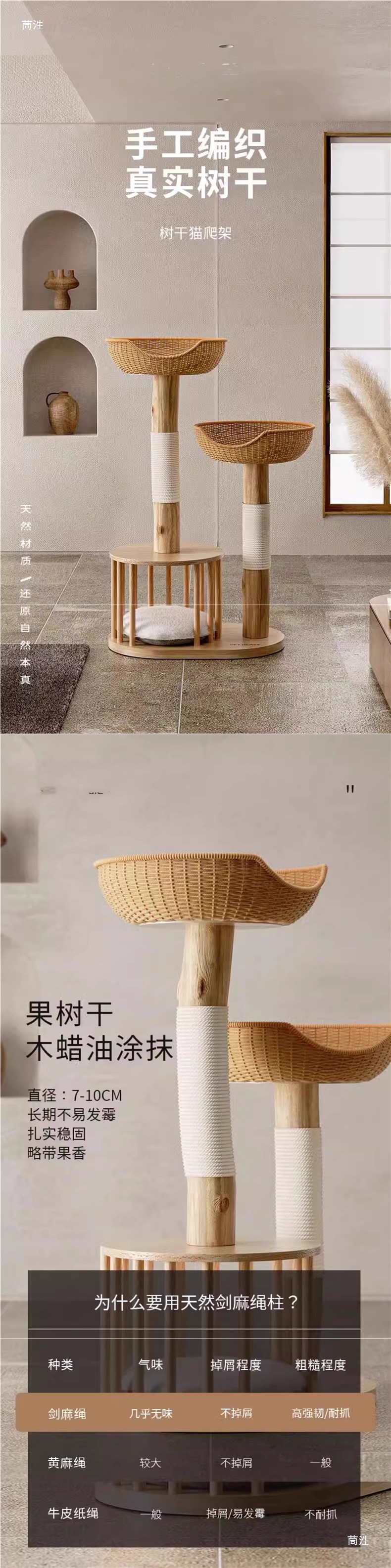 단단한 나무로 만든 작은 등나무 고양이 클라이밍 프레임, 고양이 둥지, 고양이 트리, 작은 아파트, 공간을 차지하지 않는 고양이 스크래치 보드, 나무 줄기 고양이 프레임, 고양이 클라이밍 컬럼스토어 가기