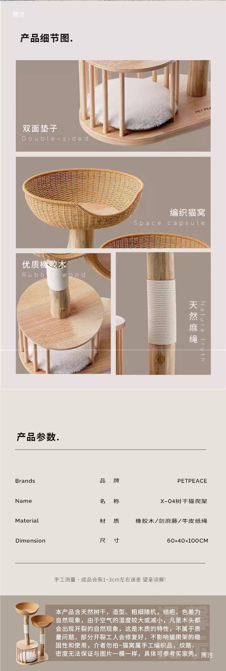 • X-04 고양이등반프레임 - 대마로 만든 원목기둥(페인트 및 곰팡이방지 포함)