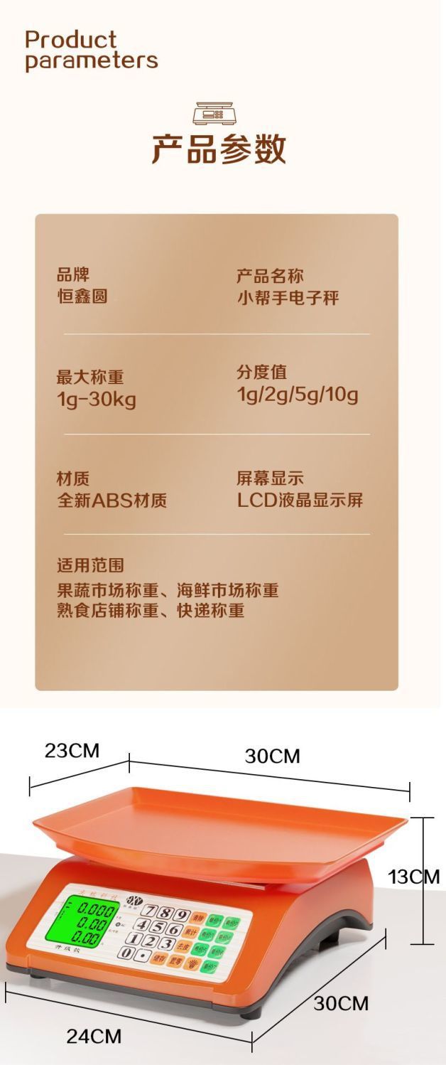 전자 저울 상업용 가격 계량기 30kg 가정용 소형 주방 야채 판매 전자 저울 정확한 테이블 저울 과일 저울