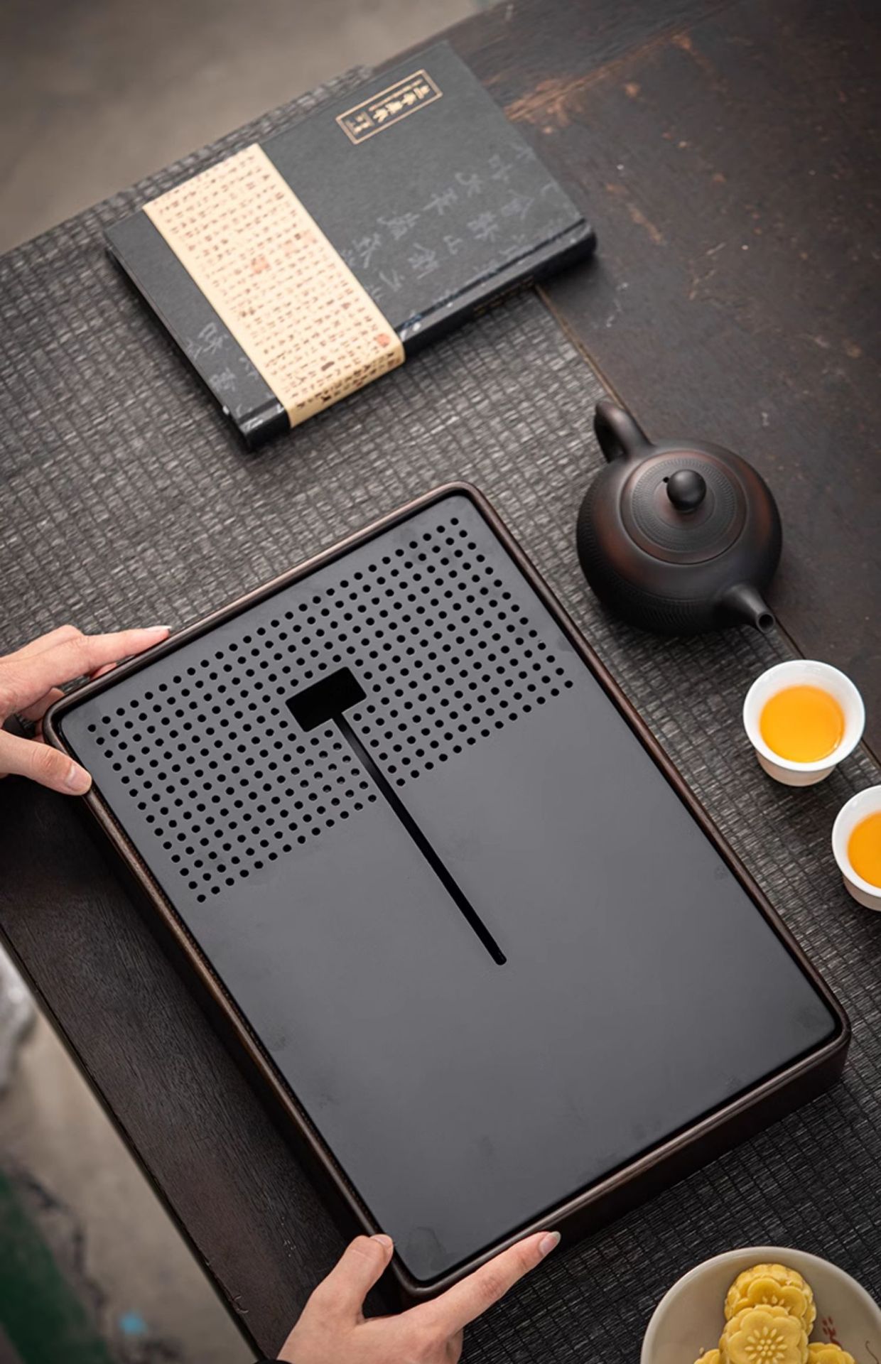 흑단 차 트레이, 사무실 물 저장 및 배수, 크고 작은 차 테이블, 물컵, 가정용 단단한 나무 차 바다, 고급 사무실 트레이