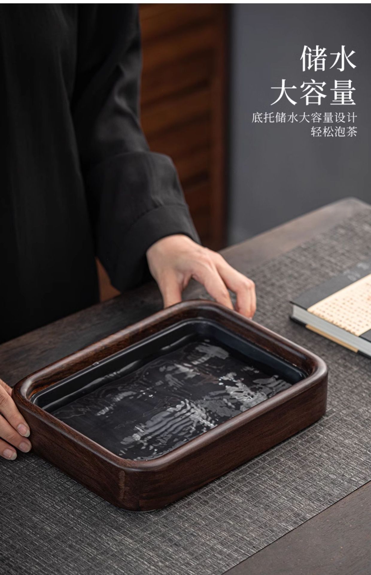 • 흑단 작은 물 차 트레이