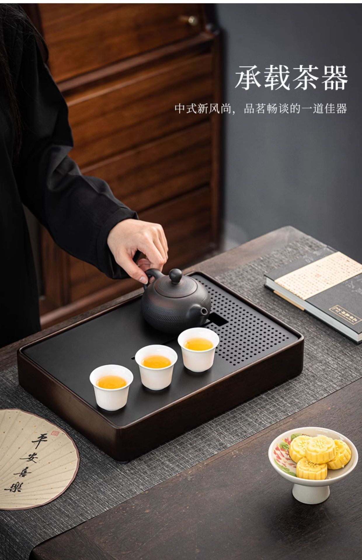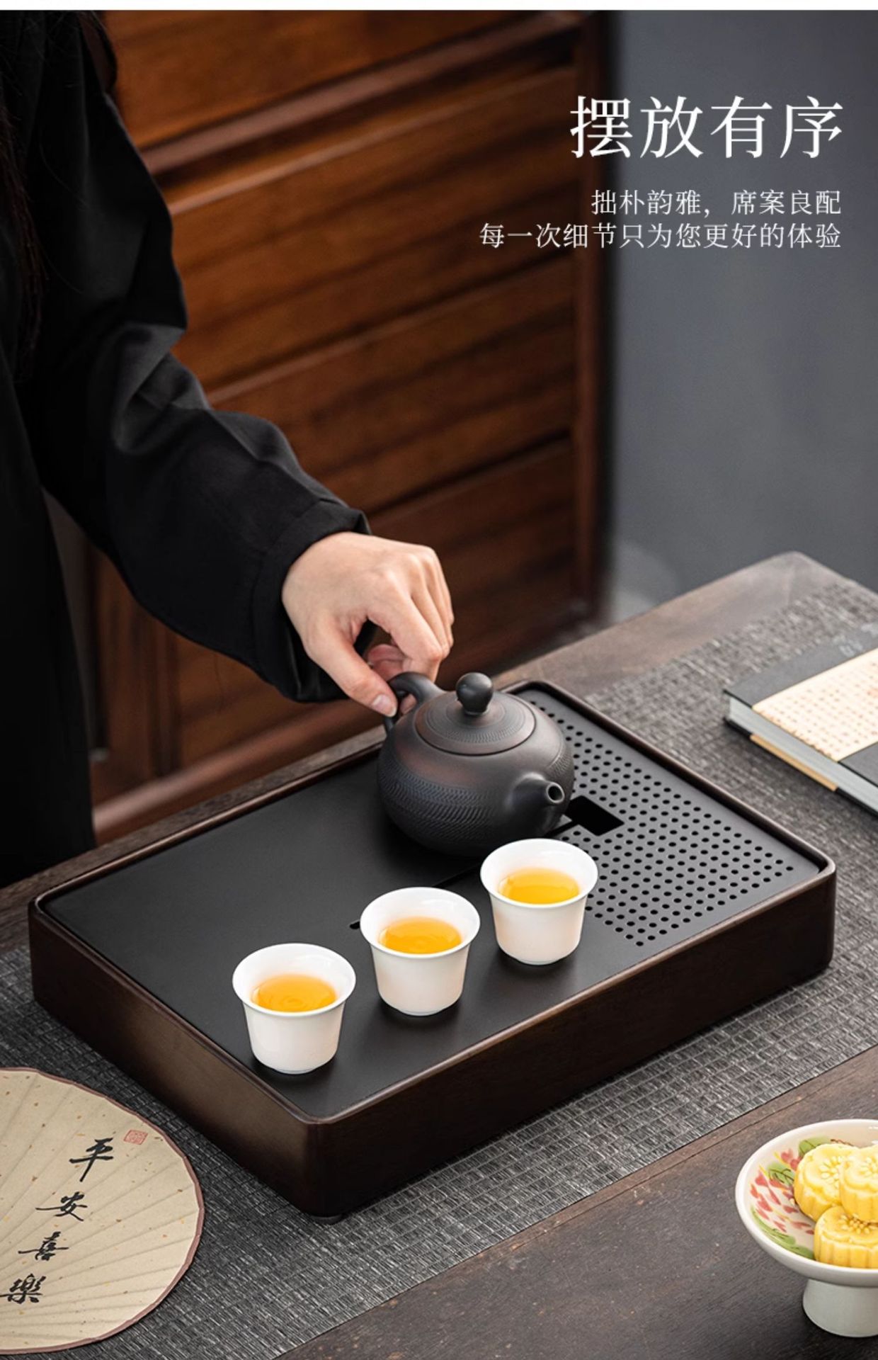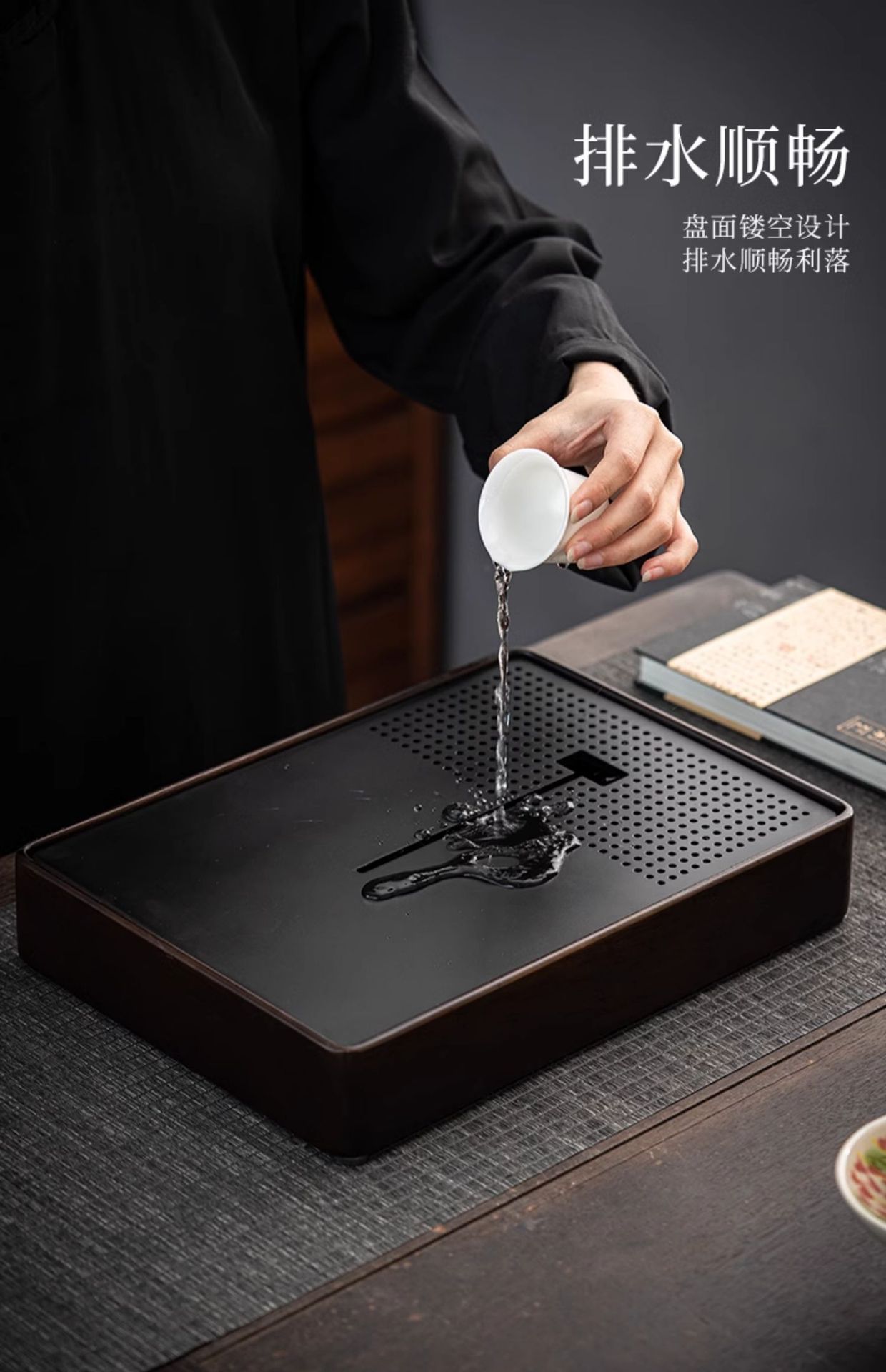 • 흑단 중형 물 차 트레이