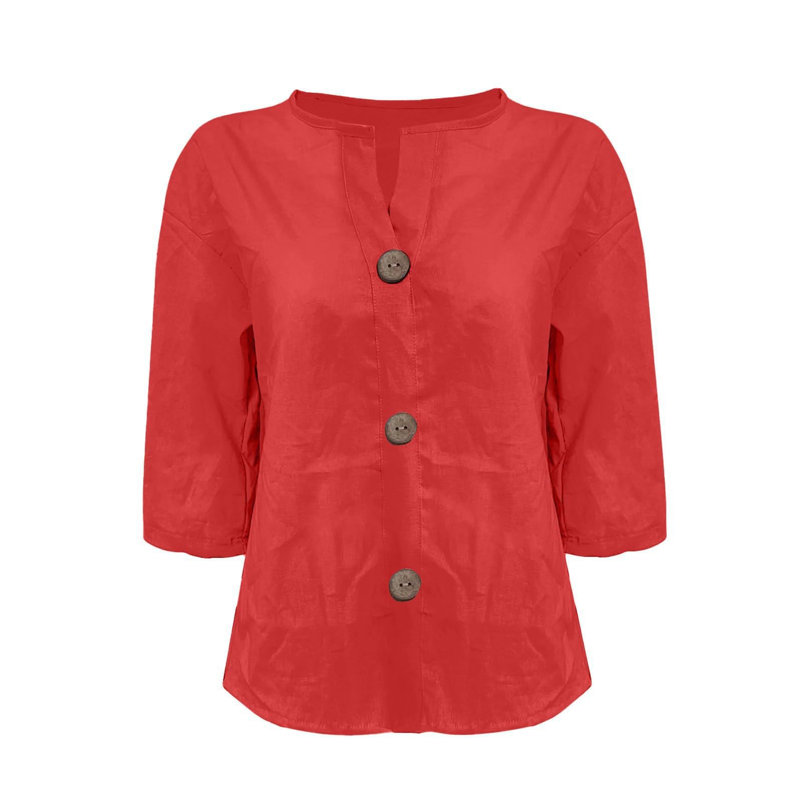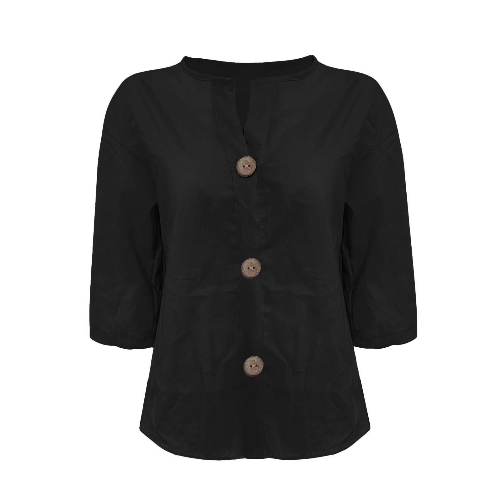 2025 봄 여름 신상품 아마존 해외 직구 유럽 및 미국 신상 루즈핏 티셔츠 여성용 브이넥 순면 버튼 탑스토어 가기