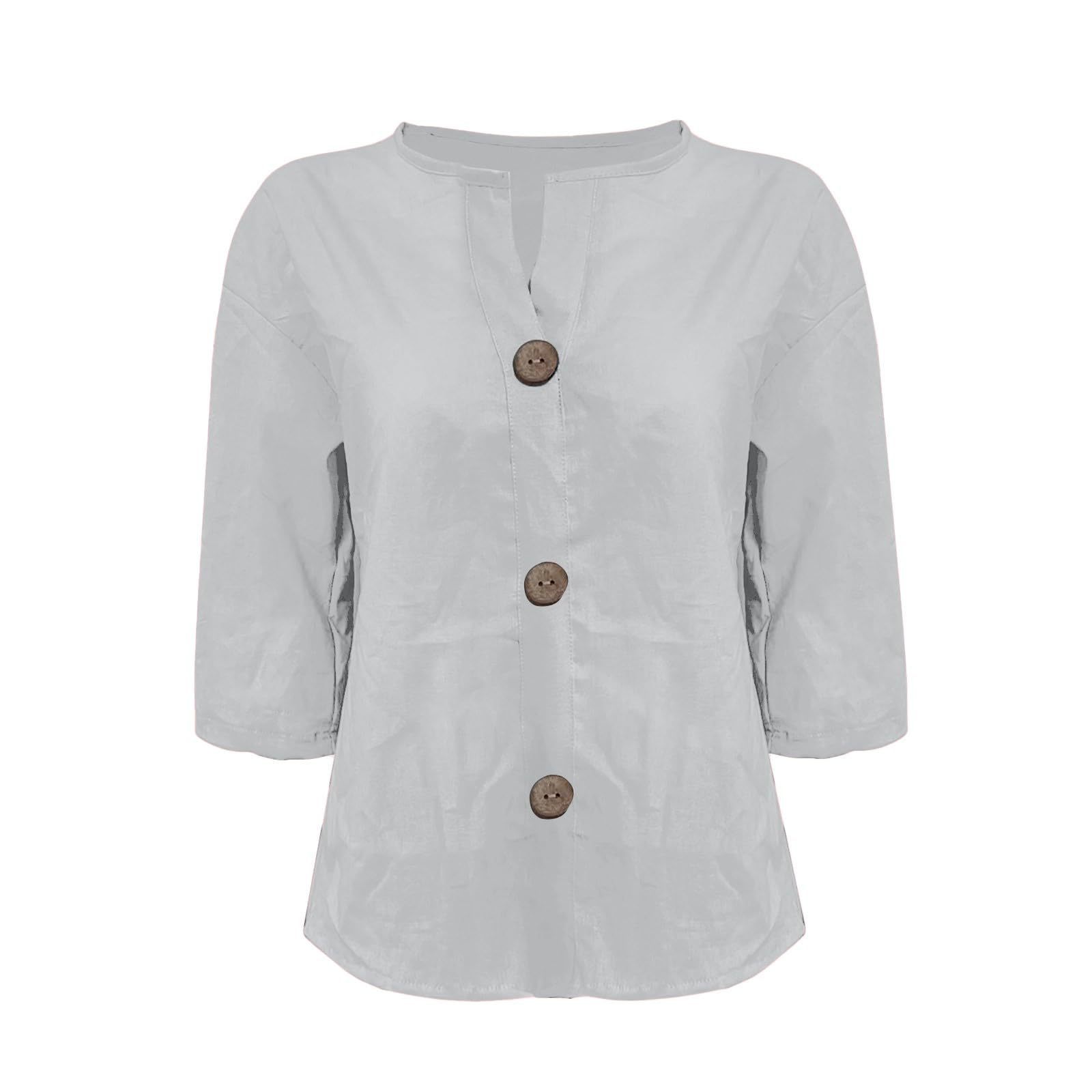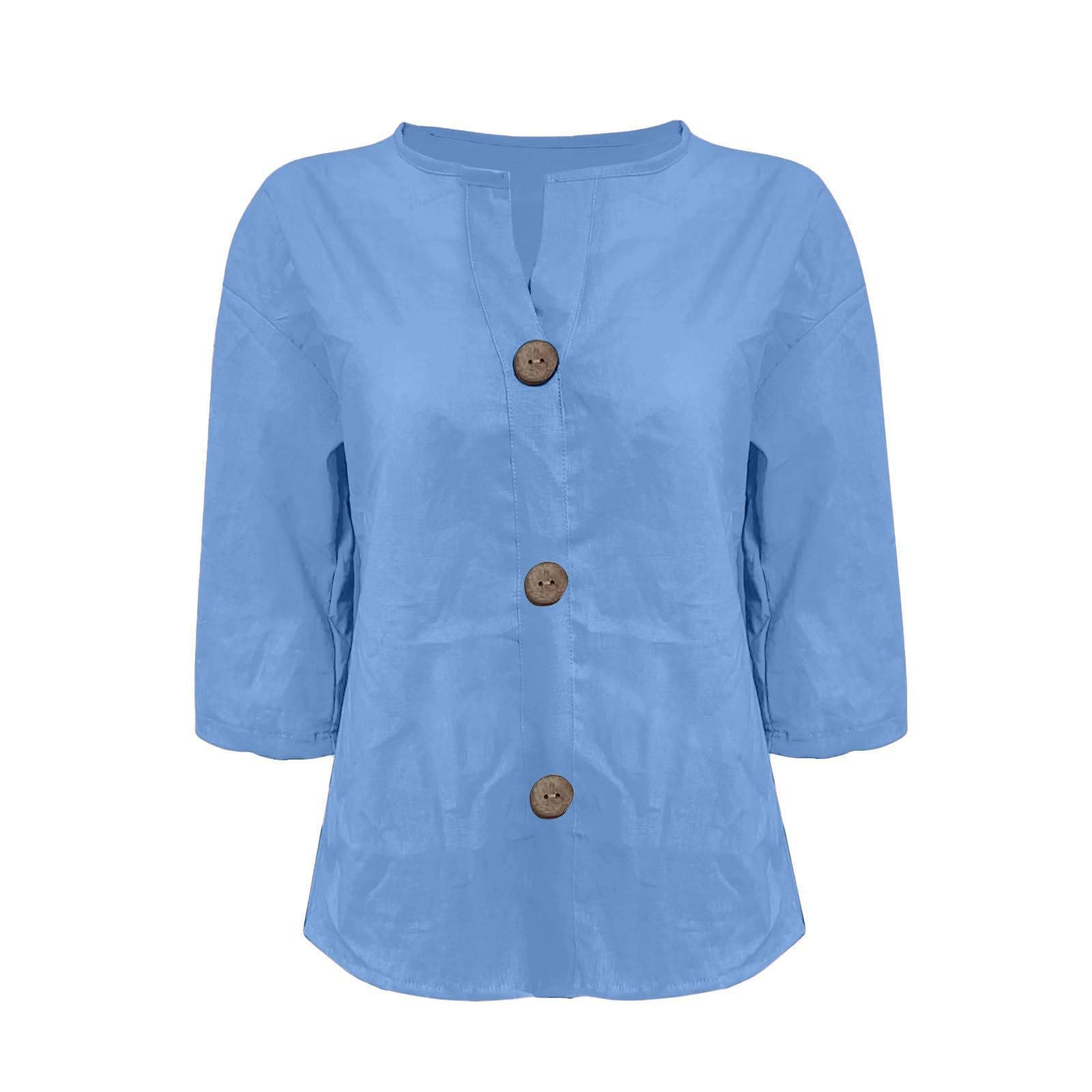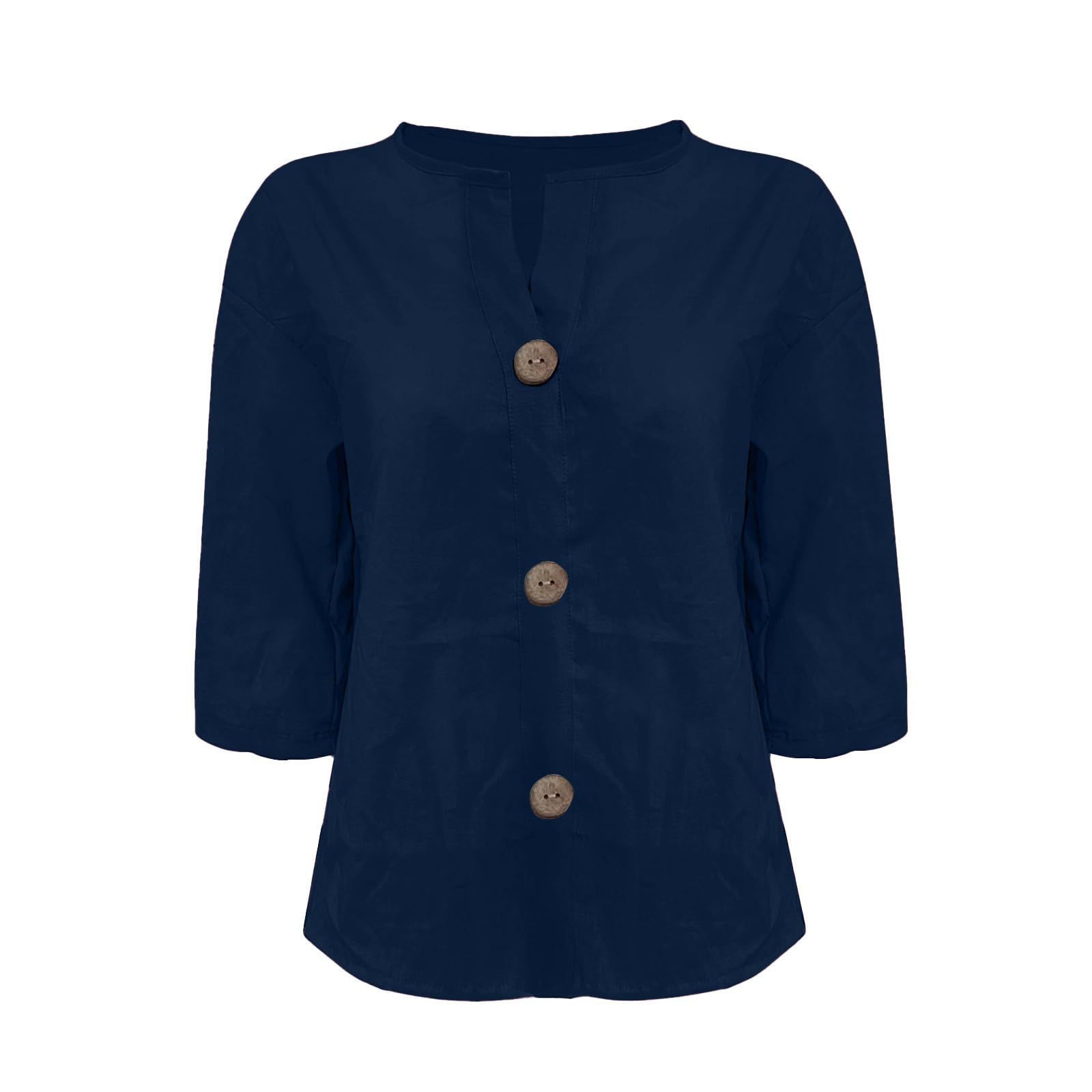2025 봄 여름 신상품 아마존 해외 직구 유럽 및 미국 신상 루즈핏 티셔츠 여성용 브이넥 순면 버튼 탑
